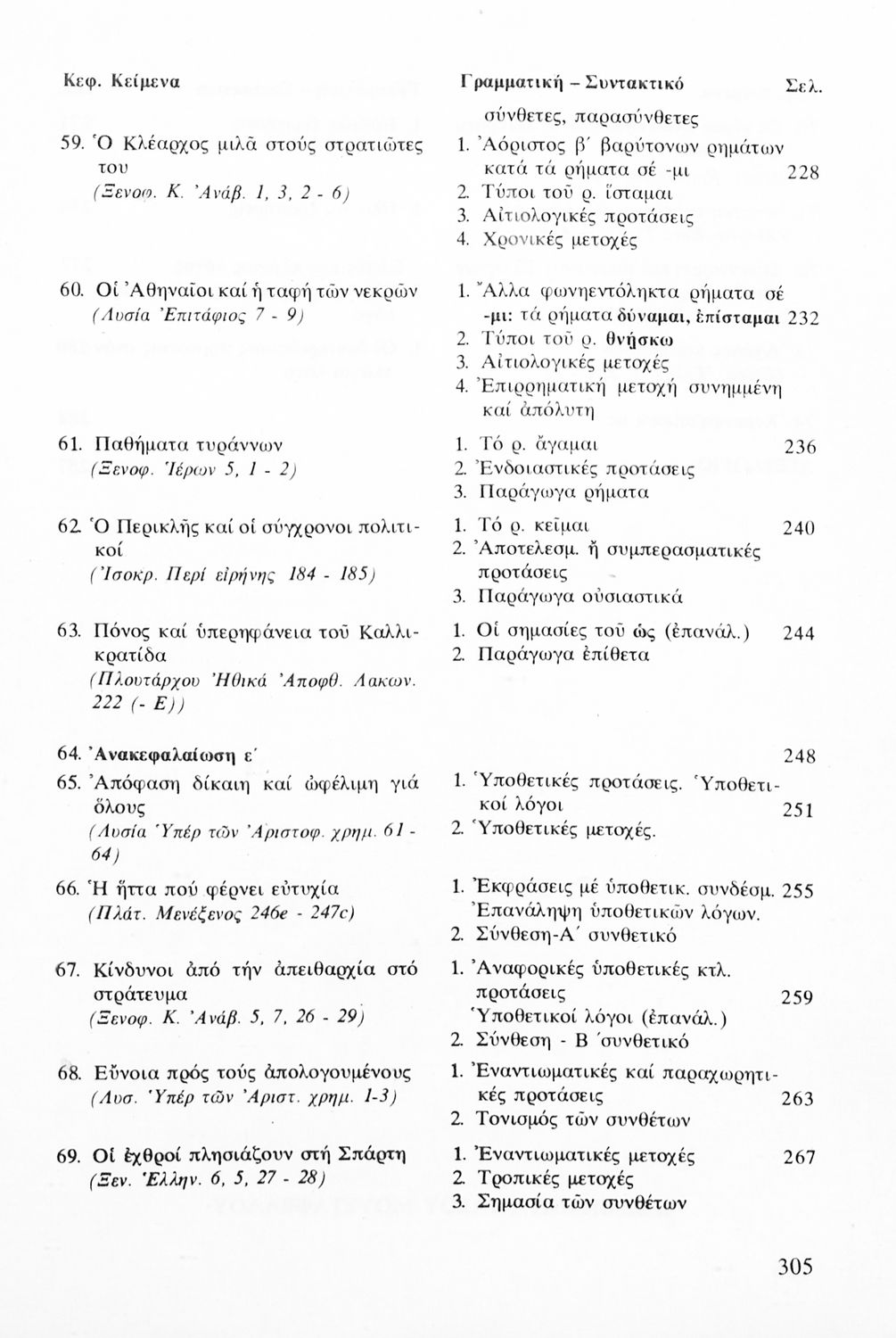 Σχολικό εγχειρίδιο Αρχαίων Ελληνικών για τις Α΄, Β΄ και Γ΄ Λυκείου που εξετάζει τα μέρη του λόγου και την σύνταξή τους.