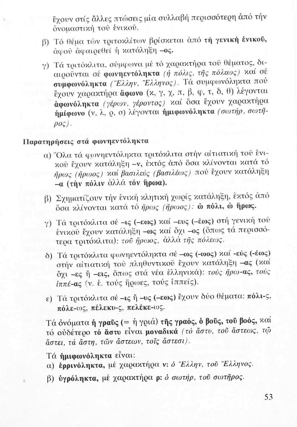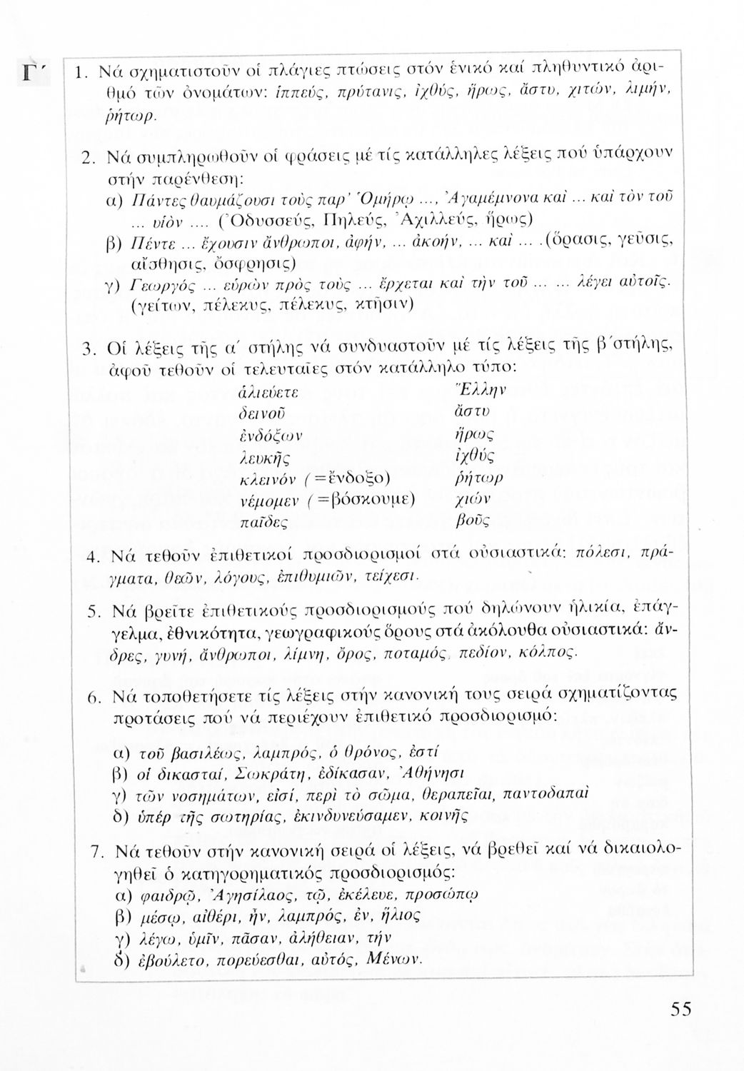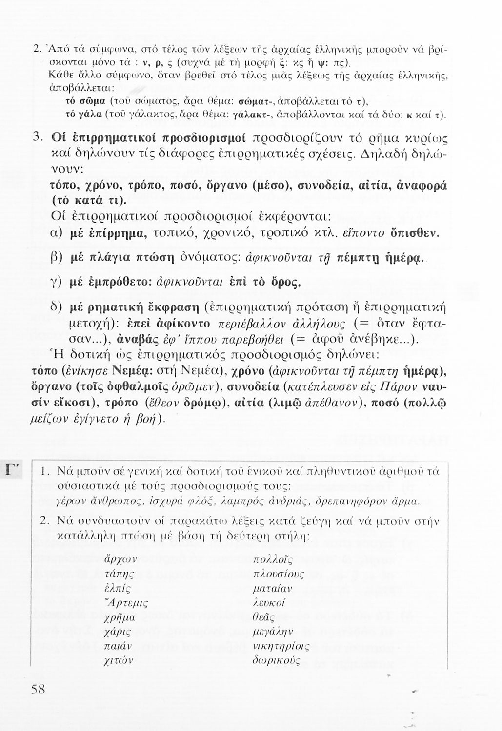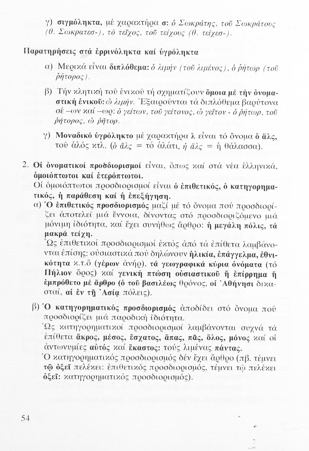Σχολικό εγχειρίδιο Αρχαίων Ελληνικών για τις Α΄, Β΄ και Γ΄ Λυκείου που εξετάζει τα μέρη του λόγου και την σύνταξή τους.