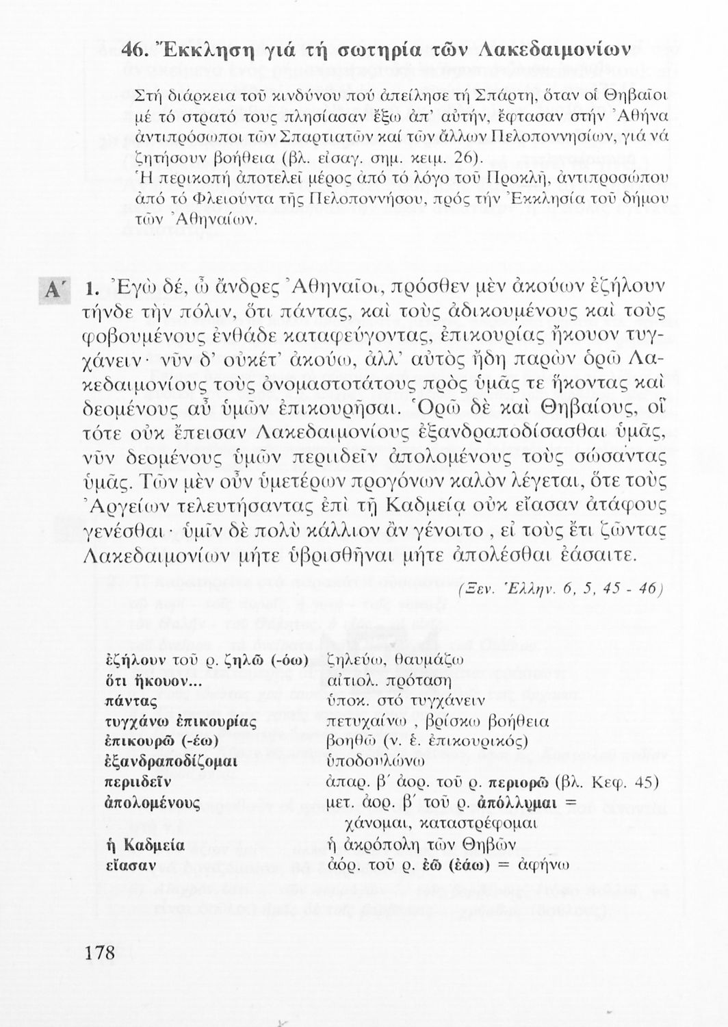 Σχολικό εγχειρίδιο Αρχαίων ελληνικών Α΄ Λυκείου που περιλαμβάνει αποσπάσματα από τα Ελληνικά του Ξενοφώντα, εισαγωγή στη ζωή και το έργο του, ερμηνευτικές σημειώσεις, τοπογραφικούς πίνακες και σχεδιαγράμματα ...