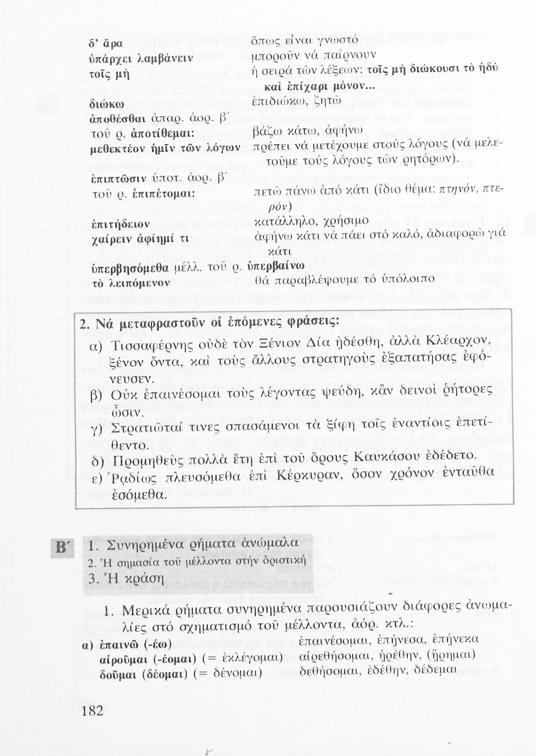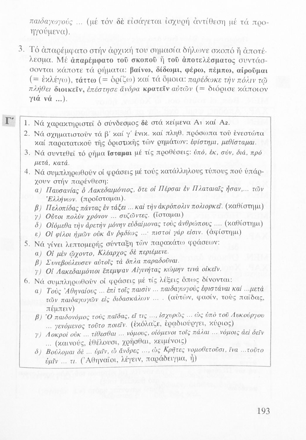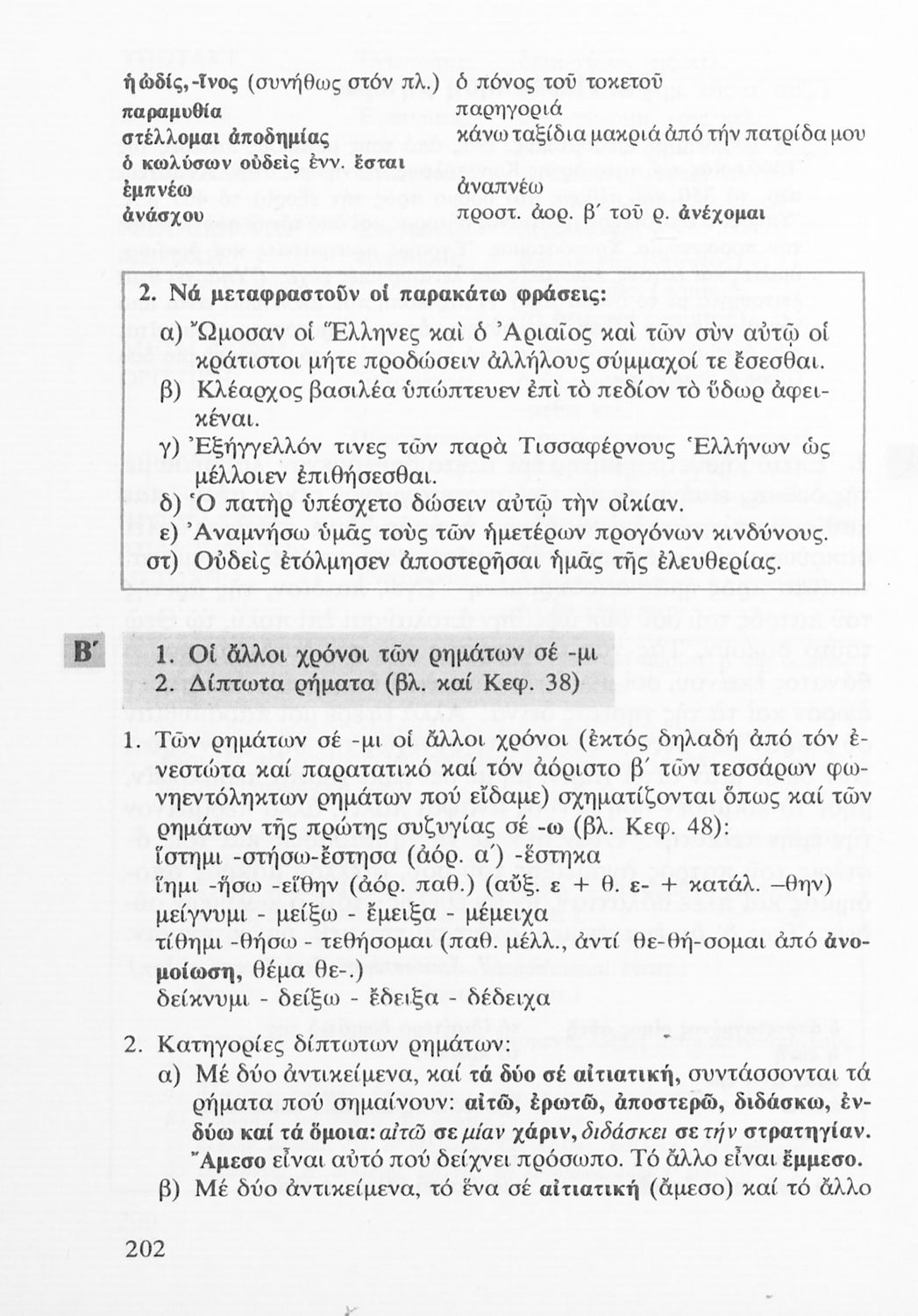 Σχολικό εγχειρίδιο Αρχαίων Ελληνικών για τις Α΄, Β΄ και Γ΄ Λυκείου που εξετάζει τα μέρη του λόγου και την σύνταξή τους.