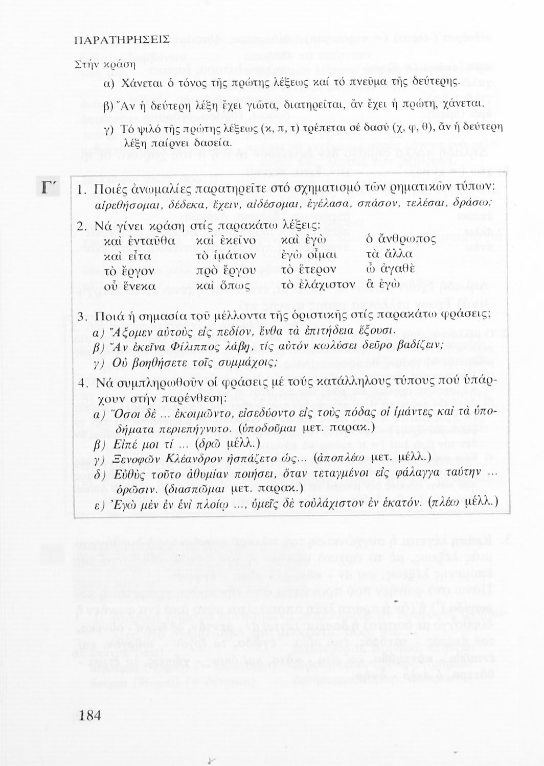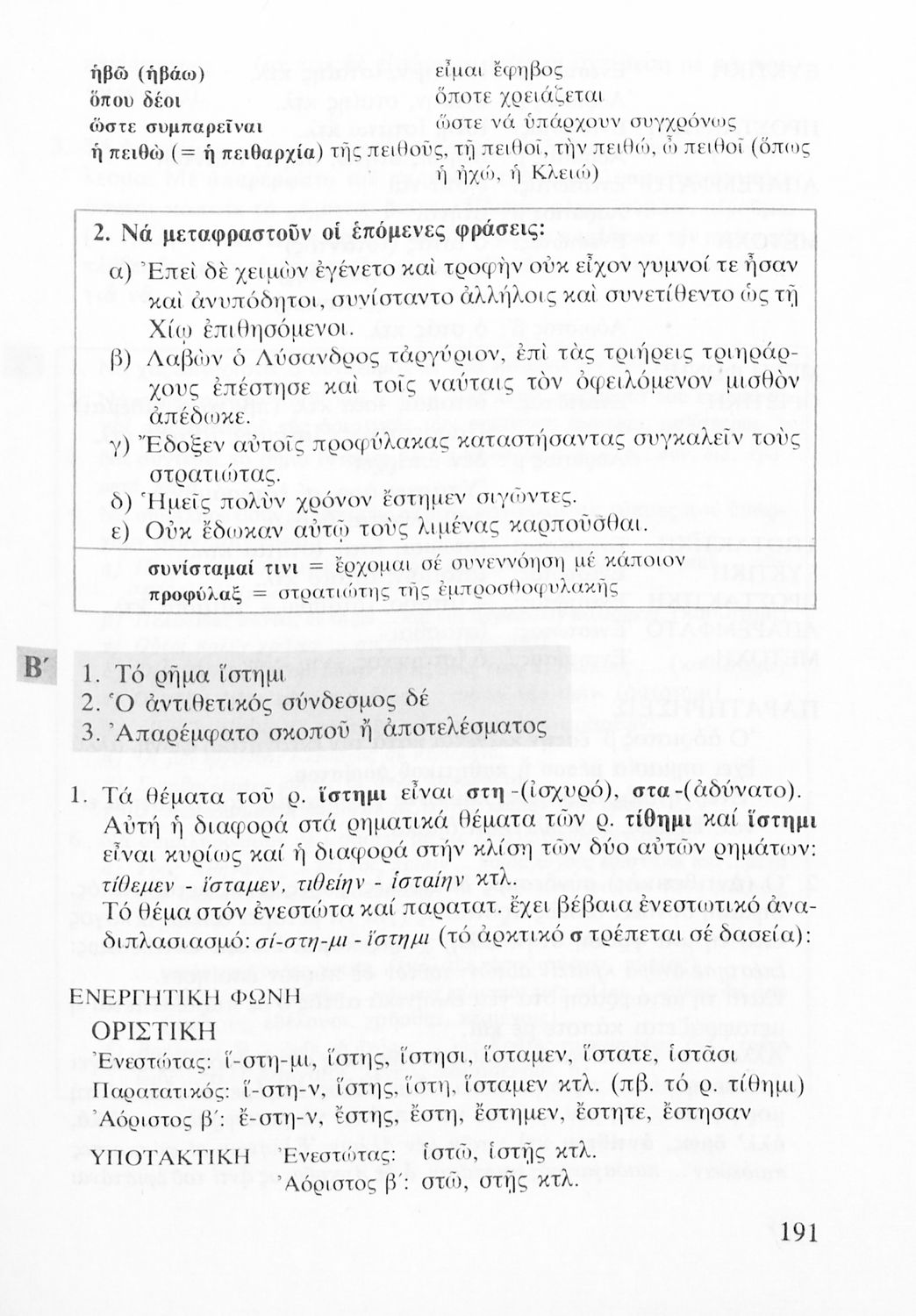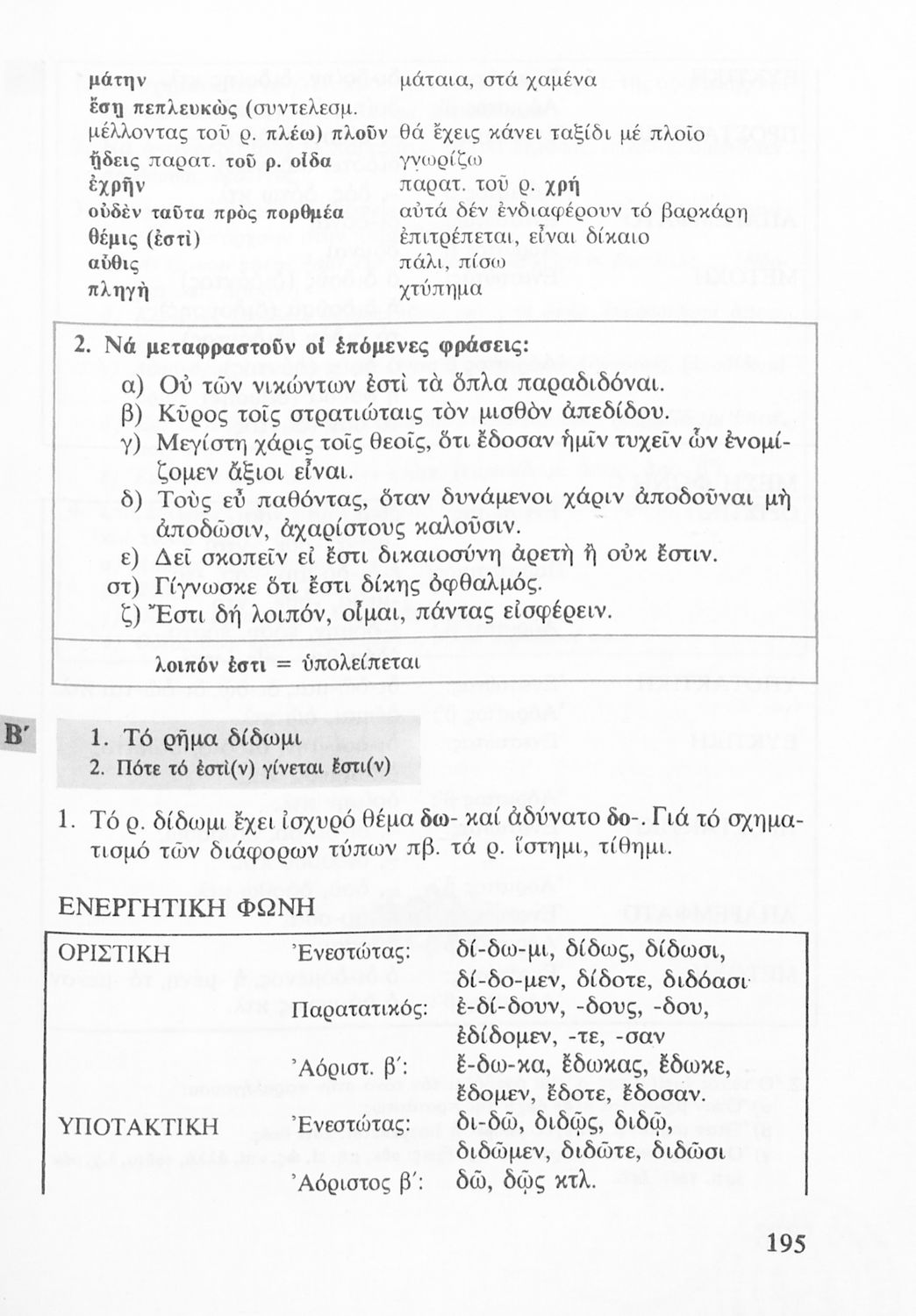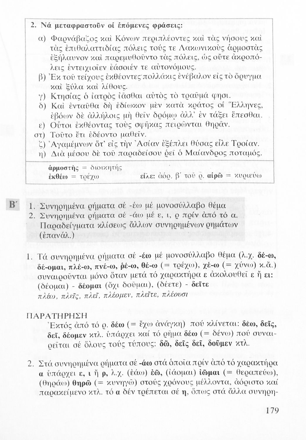 Σχολικό εγχειρίδιο Αρχαίων Ελληνικών για τις Α΄, Β΄ και Γ΄ Λυκείου που εξετάζει τα μέρη του λόγου και την σύνταξή τους.