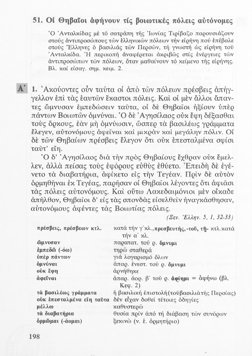 Σχολικό εγχειρίδιο Αρχαίων ελληνικών Α΄ Λυκείου που περιλαμβάνει αποσπάσματα από τα Ελληνικά του Ξενοφώντα, εισαγωγή στη ζωή και το έργο του, ερμηνευτικές σημειώσεις, τοπογραφικούς πίνακες και σχεδιαγράμματα ...