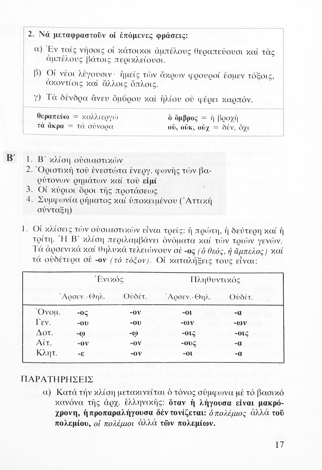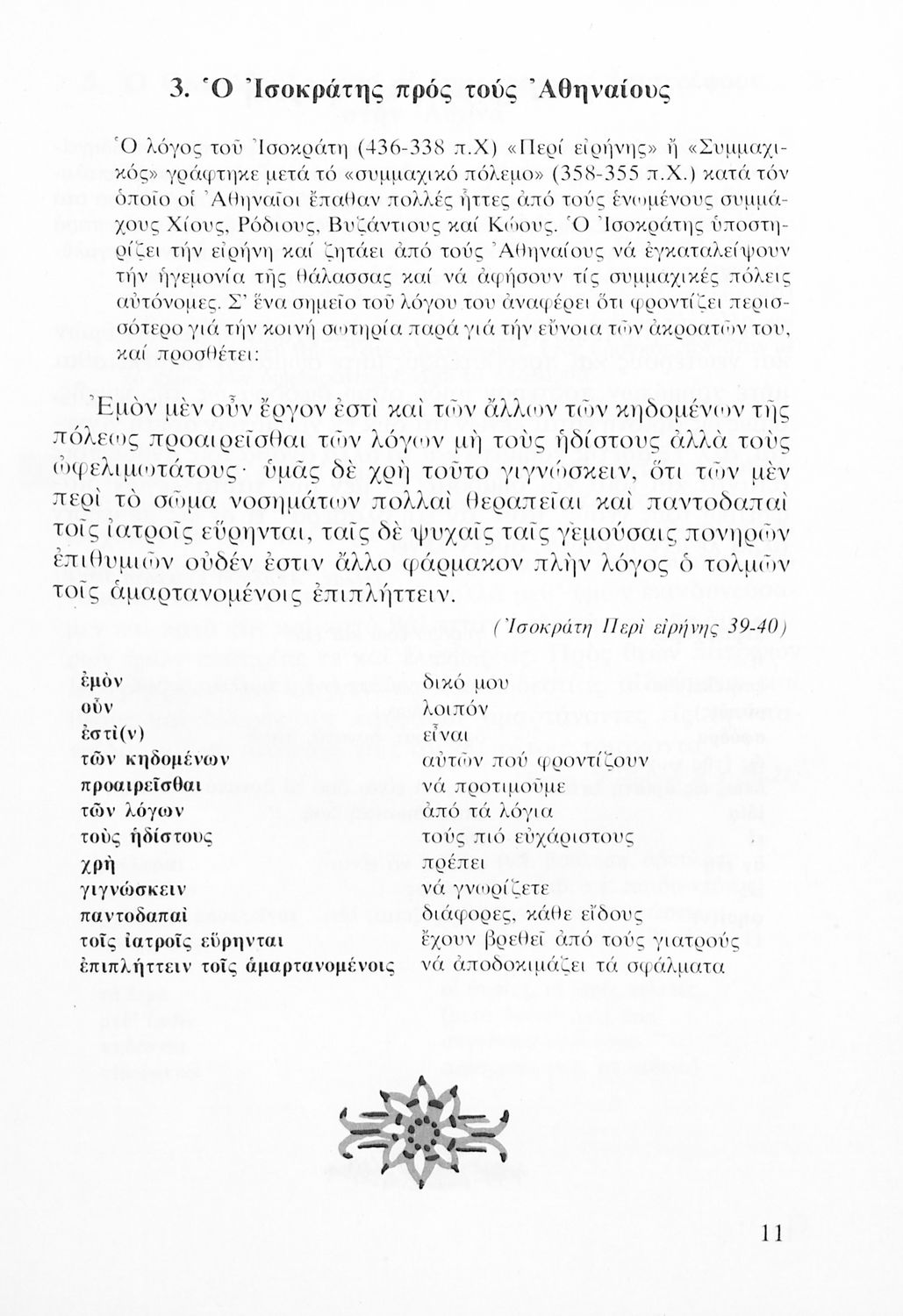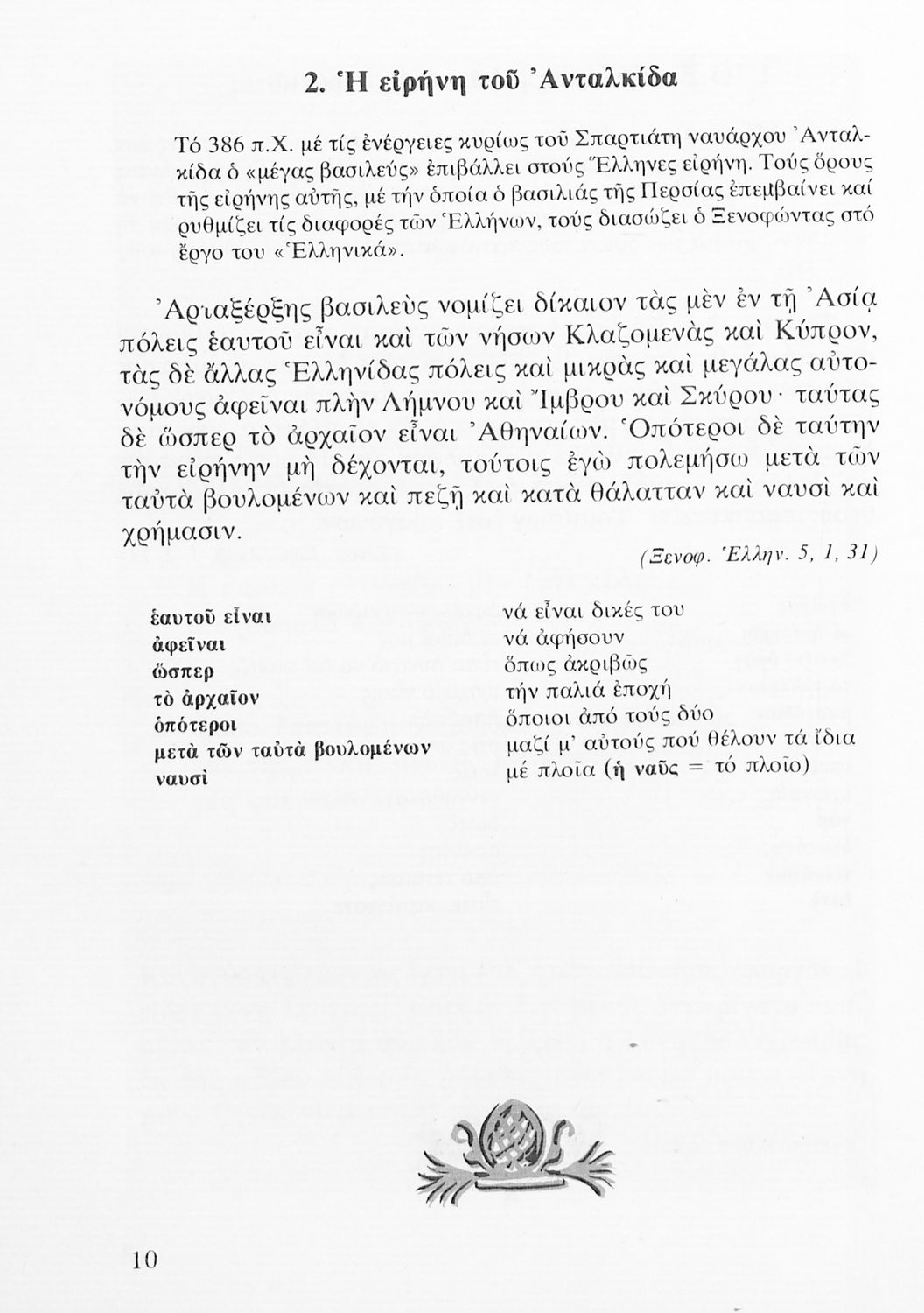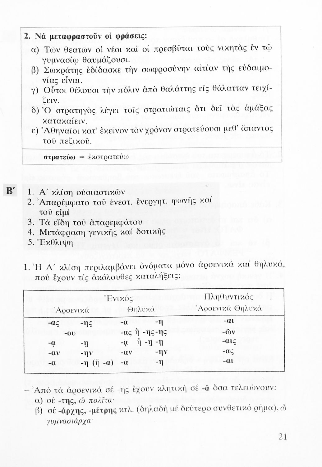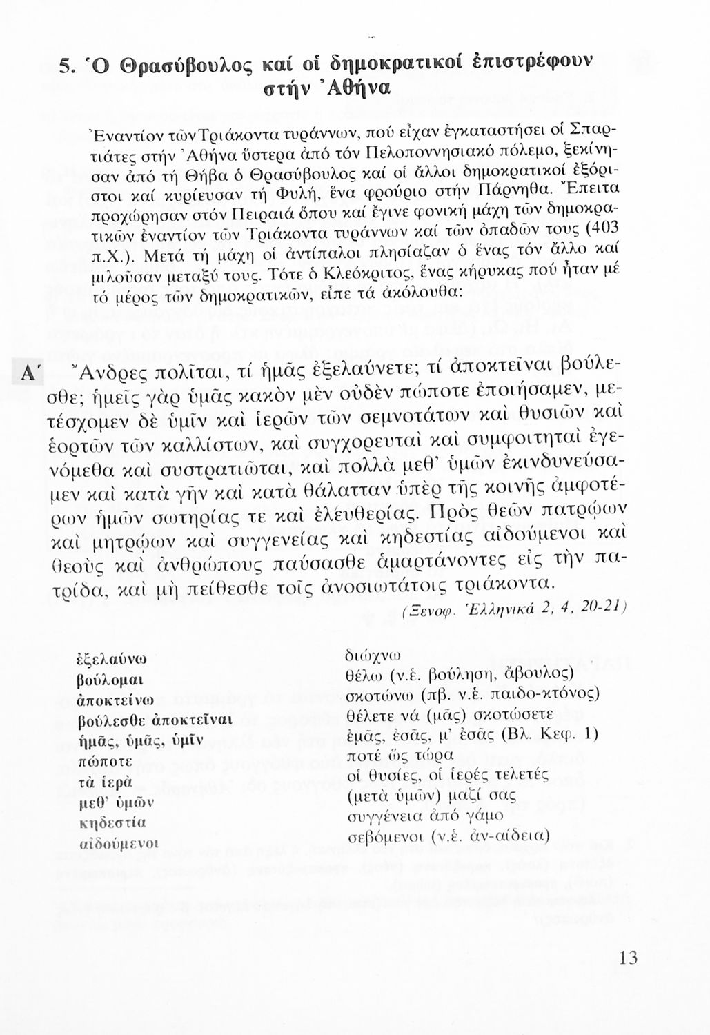 Σχολικό εγχειρίδιο Αρχαίων Ελληνικών Α' Λυκείου που περιλαμβάνει αποσπάσματα από κείμενα αρχαίων Ελλήνων συγγραφέων και γραμματικές, συντακτικές και ερμηνευτικές σημειώσεις. Περιέχει και ασκήσεις γραμματικής.