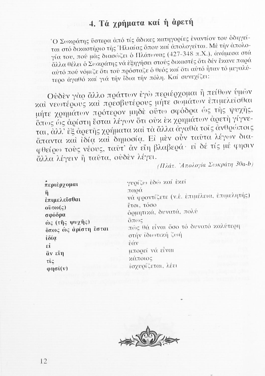 LDR 01159 2200217 4500 035 ## _a03-20556839 040 ## _aΒιβλιοθήκη της Βουλής των Ελλήνων 041 ## _ael 100 ## _aΝ. Χ. Κεφαλίδης _aΑ. Β. Μουμτζάκης 110 ## _a20556839 245 0# _aΑρχαία Ελληνικά Α' Λυκείου 250 ## _a4η Έκδοση 260 ## _aΑθήνα _bΟργανισμός Εκδόσεως Διδακτικών Βιβλίων _c1982 300 ## _a308 520 ## _aΣχολικό εγχειρίδιο Αρχαίων Ελληνικών Α' Λυκείου που περιλαμβάνει αποσπάσματα από κείμενα αρχαίων Ελλήνων συγγραφέων και γραμματικές, συντακτικές και ερμηνευτικές σημειώσεις. Περιέχει και ασκήσεις γραμματικής. 521 ## _aΑ' Λυκείου 522 ## _aΕλλάδα 546 ## _aΔημοτική 563 ## _aΜαλακό Εξώφυλλο 583 ## _a3700/16-12-1981 _c1981 650 #4 _aΙσοκράτης _aΛυσίας _aΞενοφώντας _aΠλάτωνας