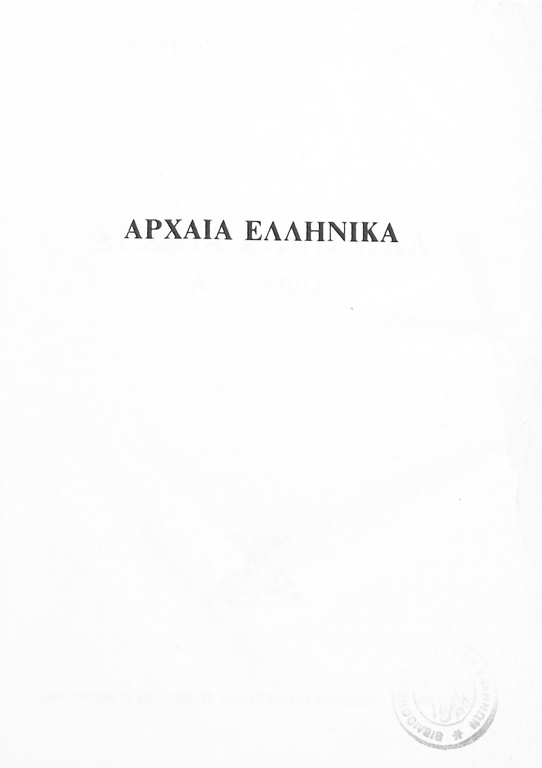 Κωδικός αναγνώρισης: 03-20556839 Τίτλος: Αρχαία Ελληνικά Α' Λυκείου Συγγραφέας: Ν. Χ. Κεφαλίδης, Α. Β. Μουμτζάκης Μέγεθος και υπόστρωμα: Σχολικό εγχειρίδιο, μαλακό εξώφυλλο, 308 σελίδες. |