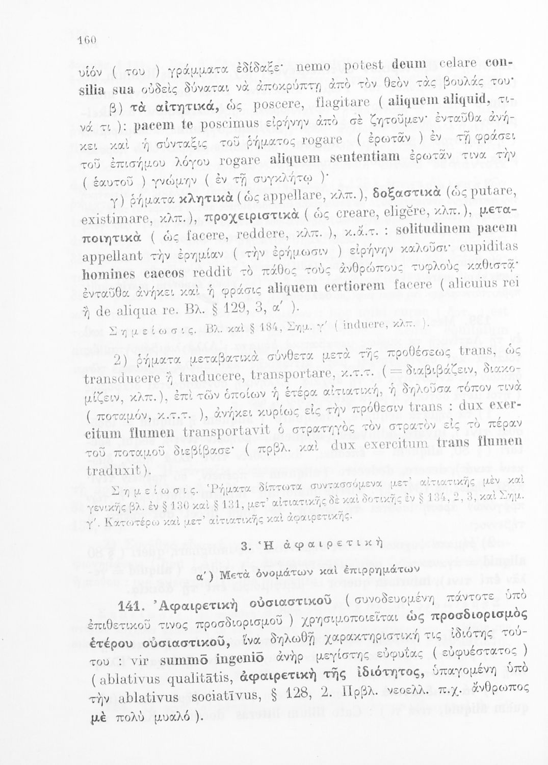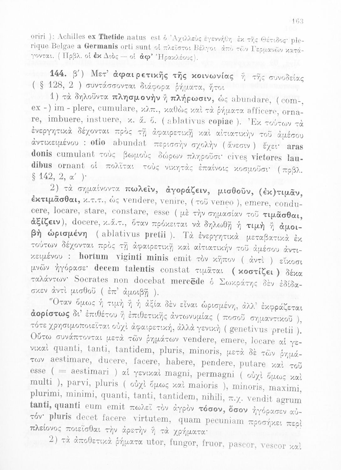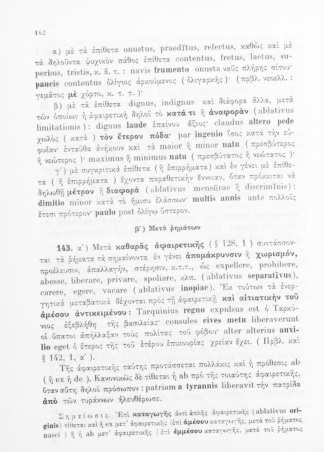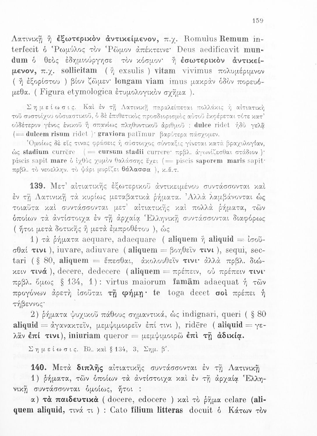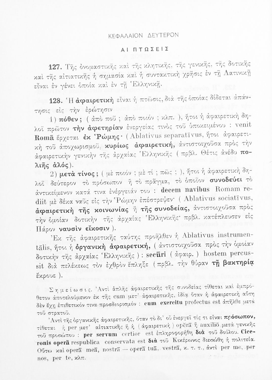 Σχολικό εγχειρίδιο Λατινικών Γυμνασίου που περιλαμβάνει γραμματική και συντακτικό και είναι χωρισμένο σε φθογγολογικό, τυπολογικό και ετυμολογικό μέρος.