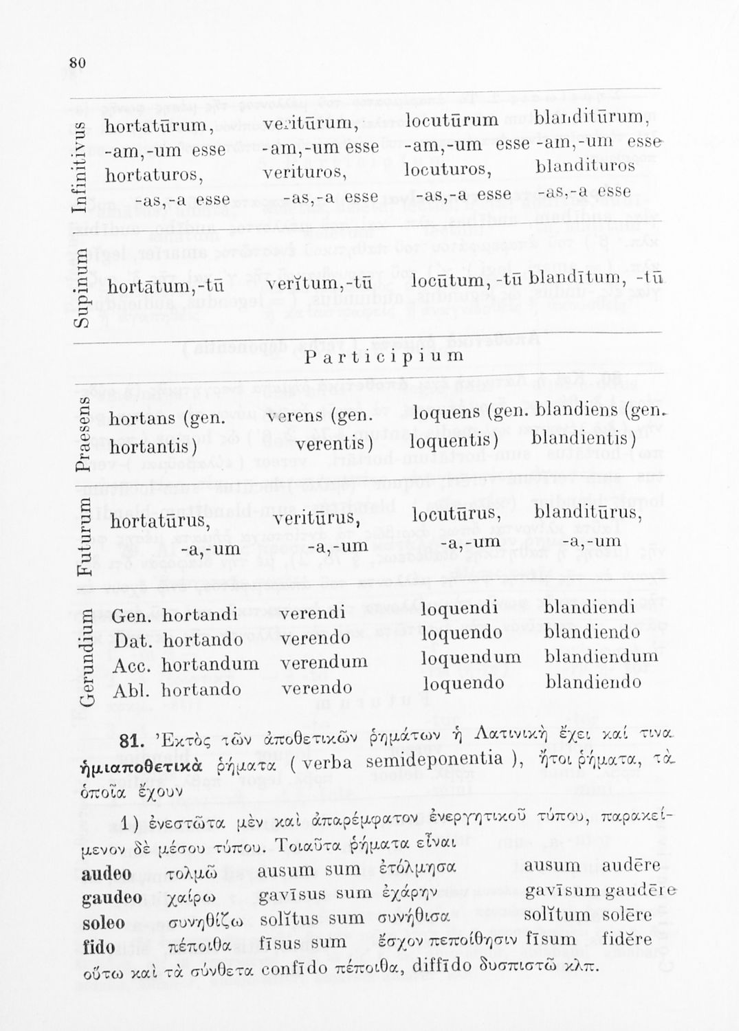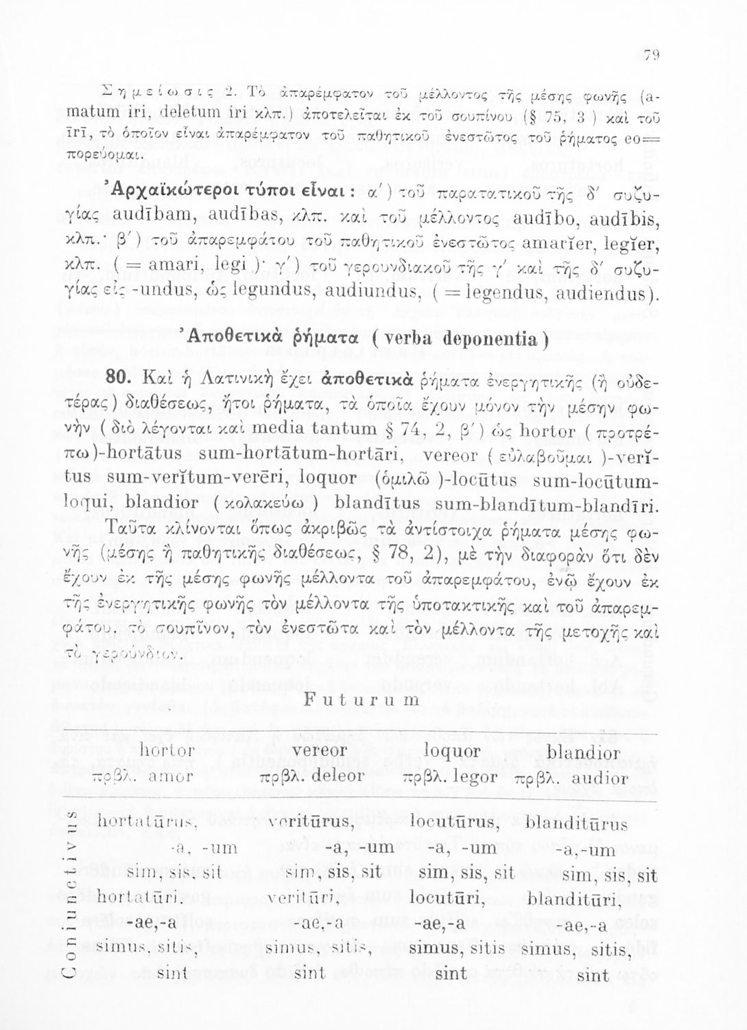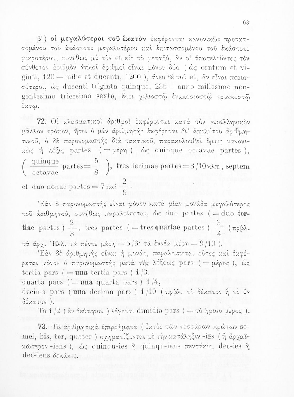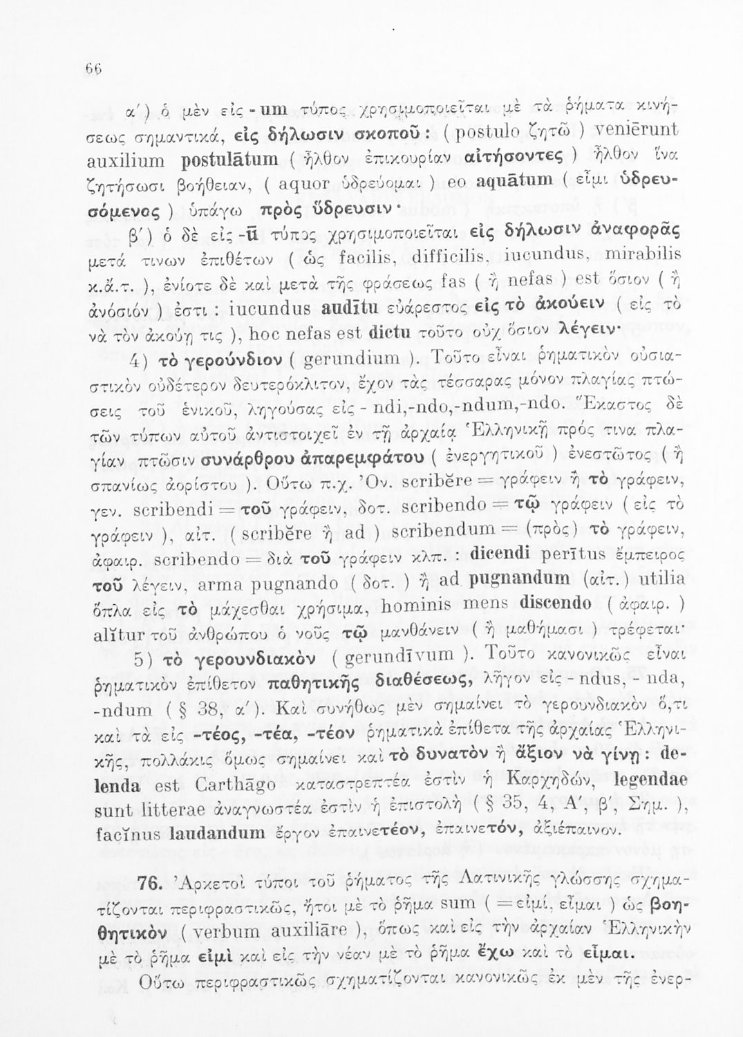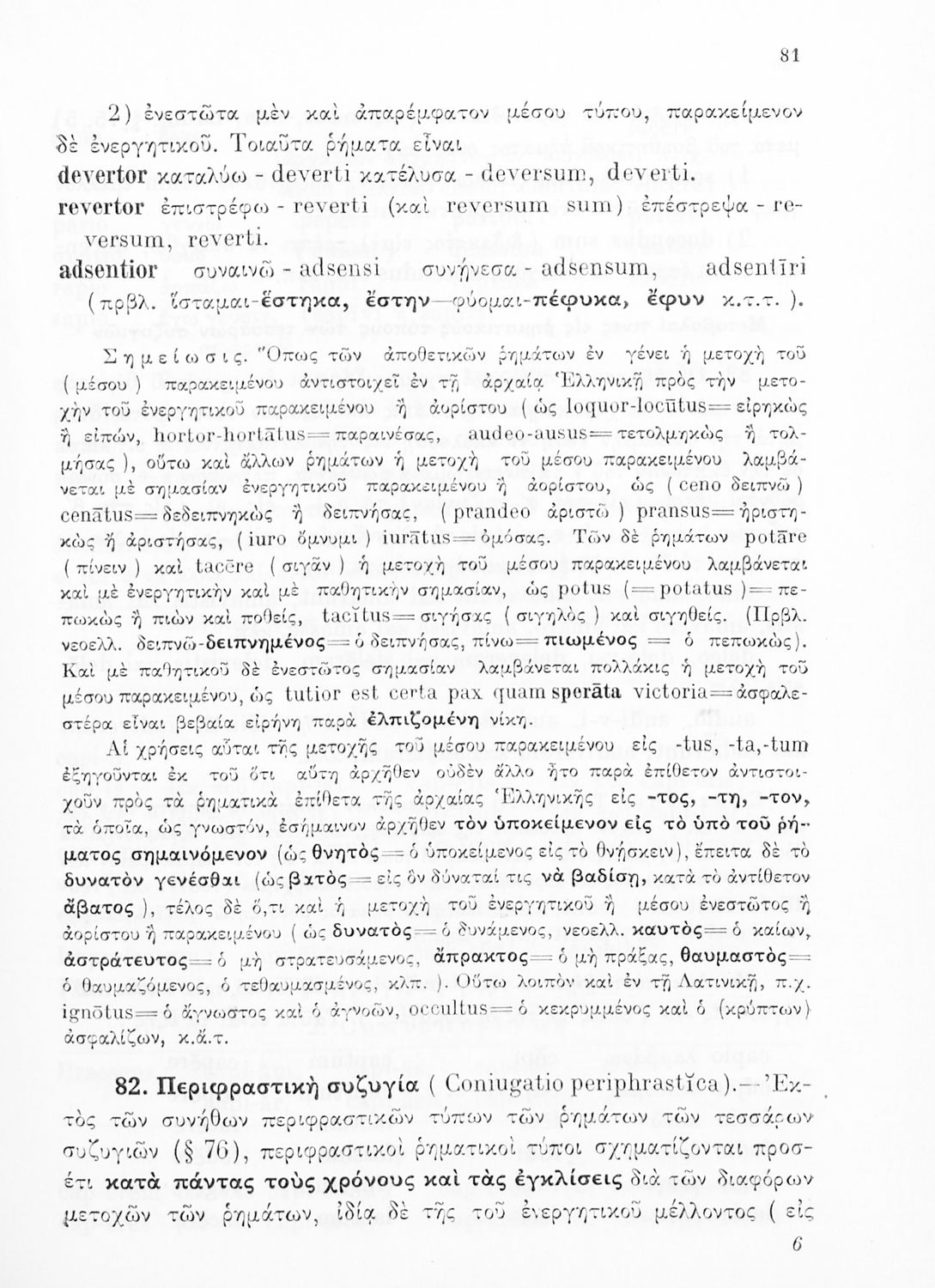 Σχολικό εγχειρίδιο Λατινικών Γυμνασίου που περιλαμβάνει γραμματική και συντακτικό και είναι χωρισμένο σε φθογγολογικό, τυπολογικό και ετυμολογικό μέρος.