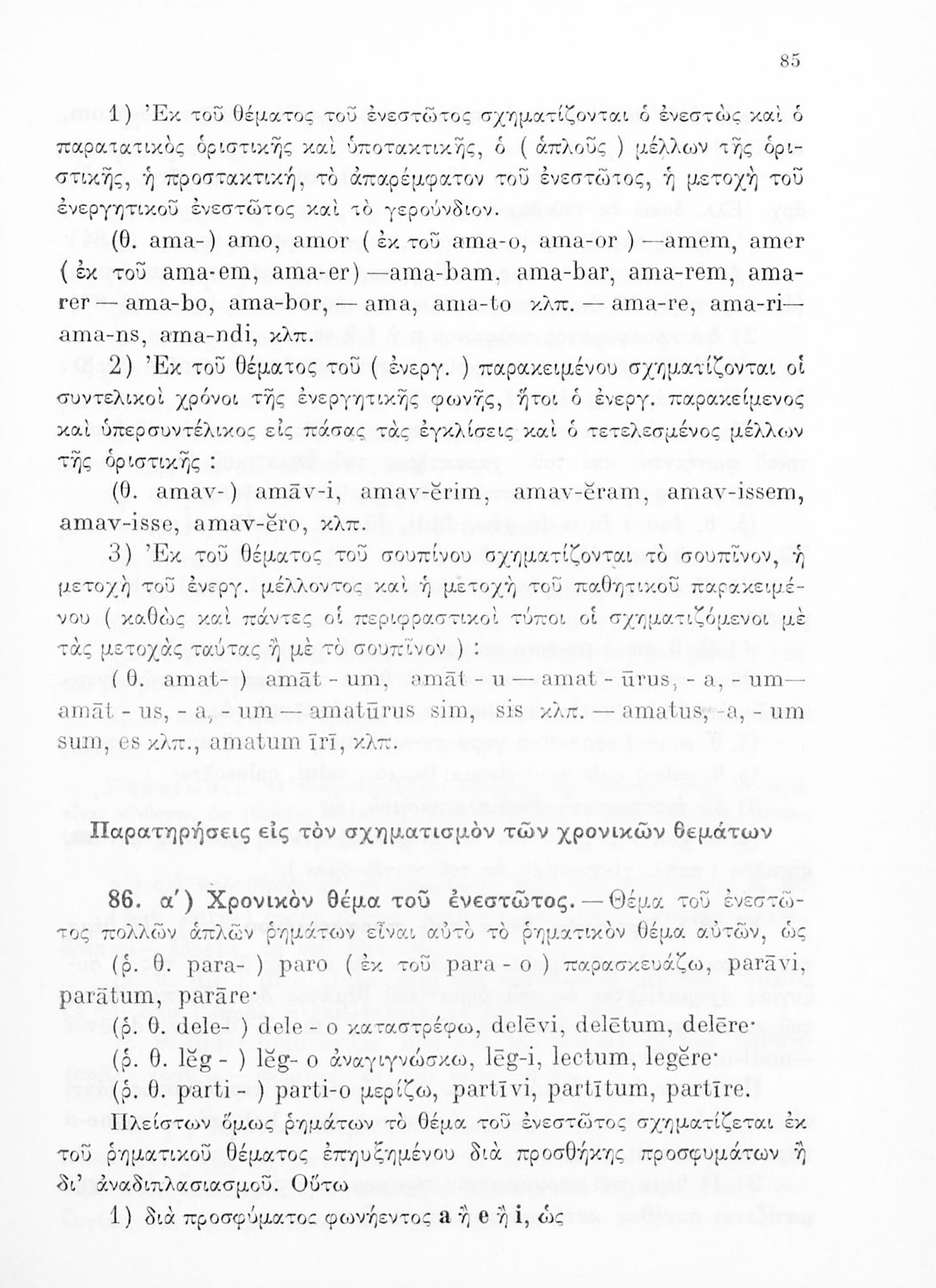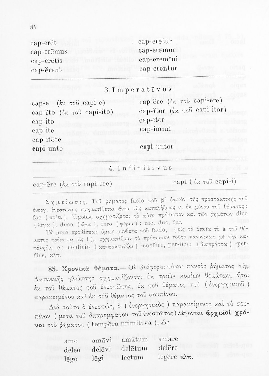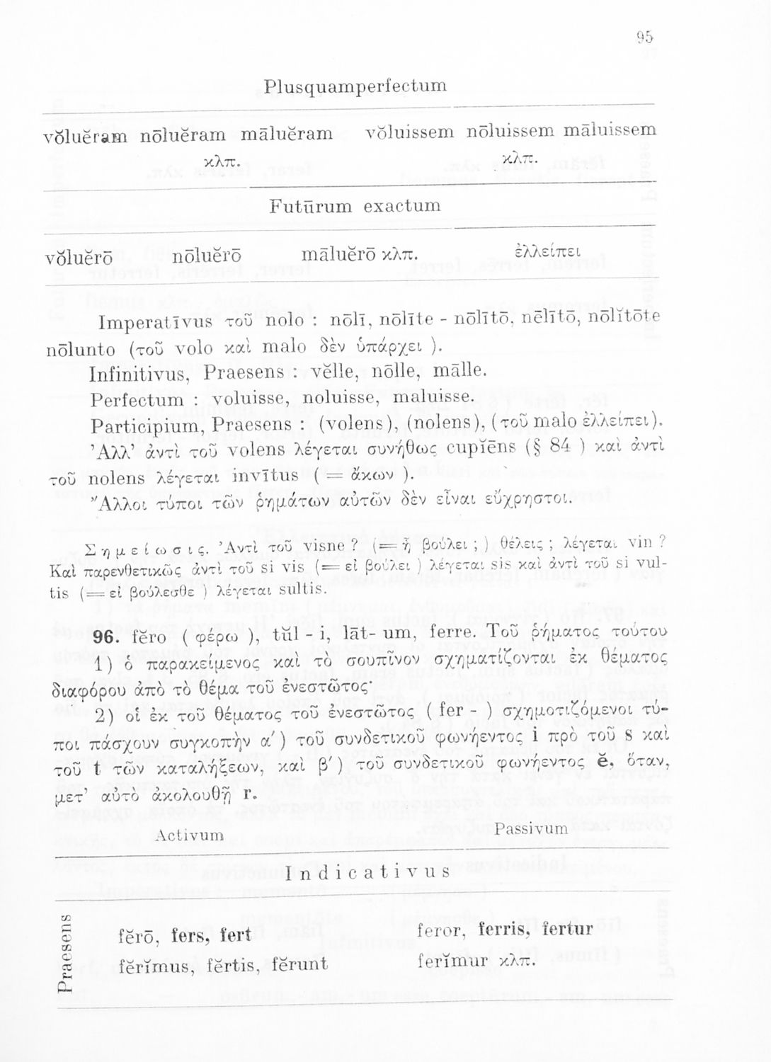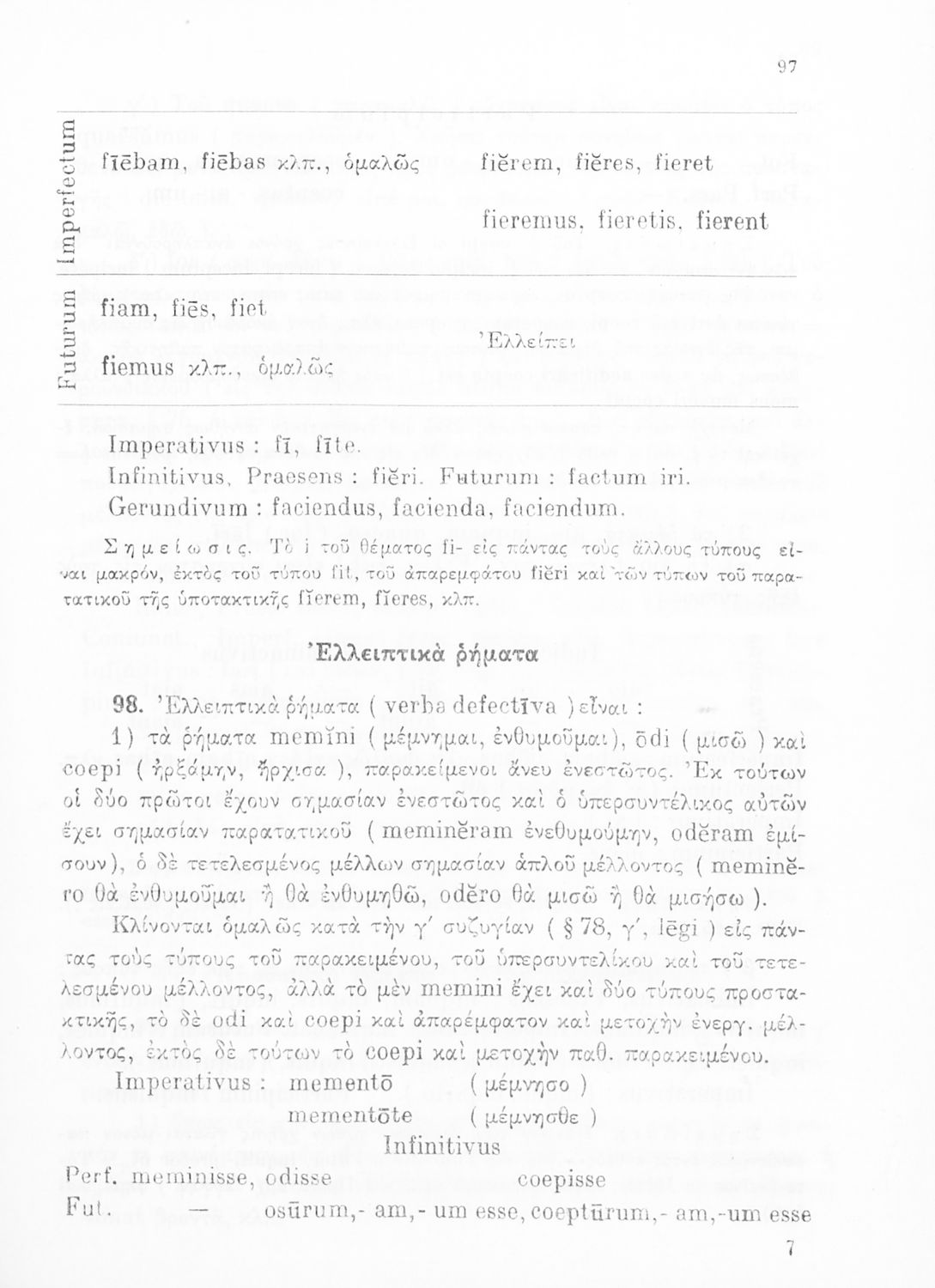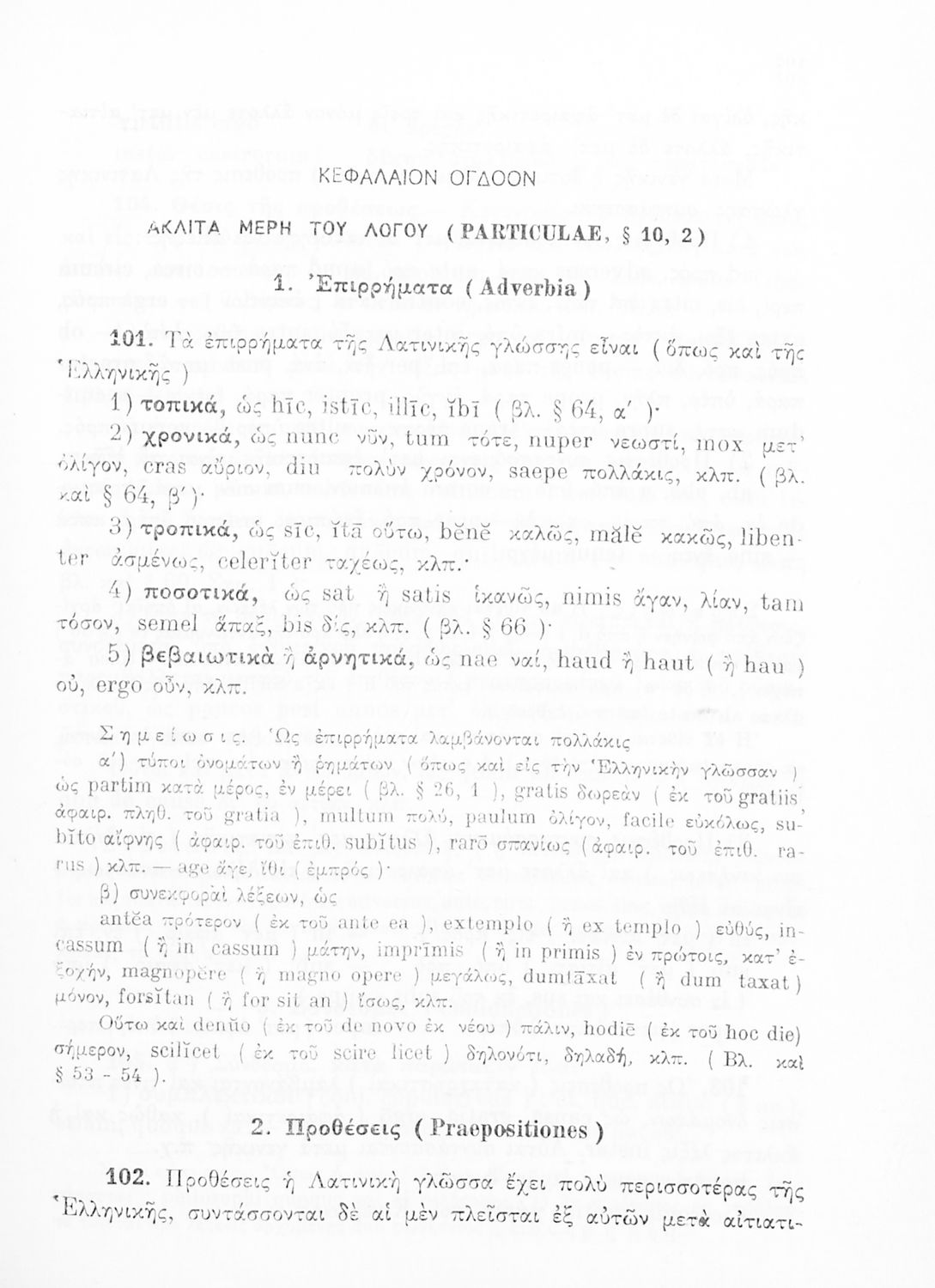 Σχολικό εγχειρίδιο Λατινικών Γυμνασίου που περιλαμβάνει γραμματική και συντακτικό και είναι χωρισμένο σε φθογγολογικό, τυπολογικό και ετυμολογικό μέρος.