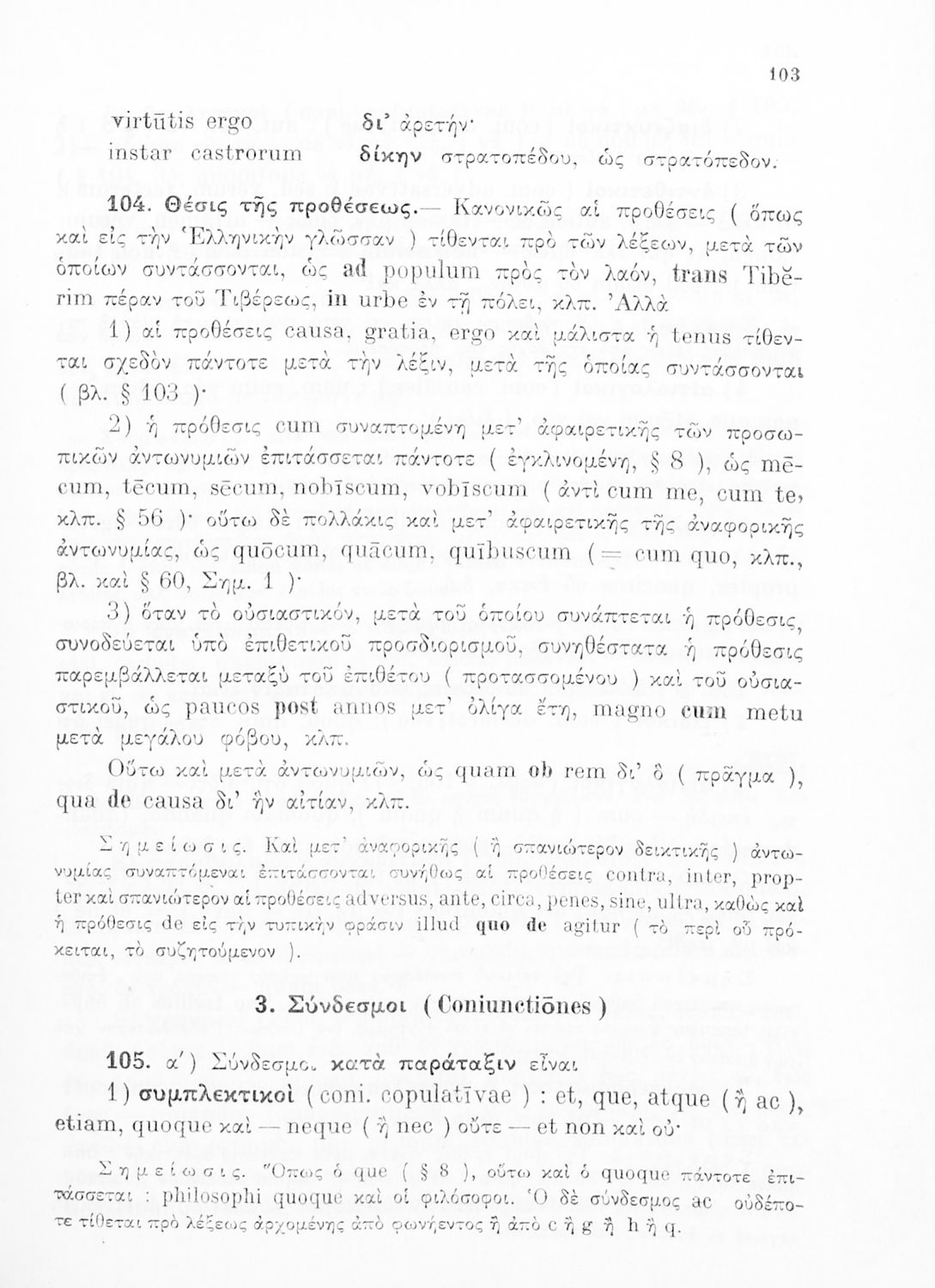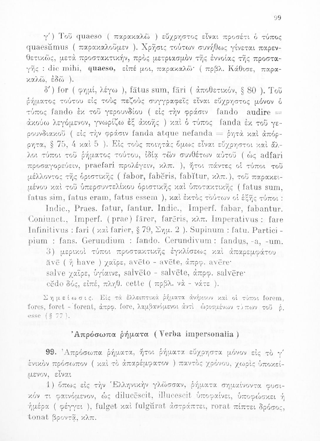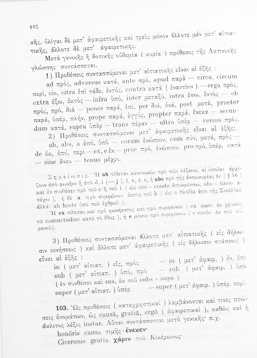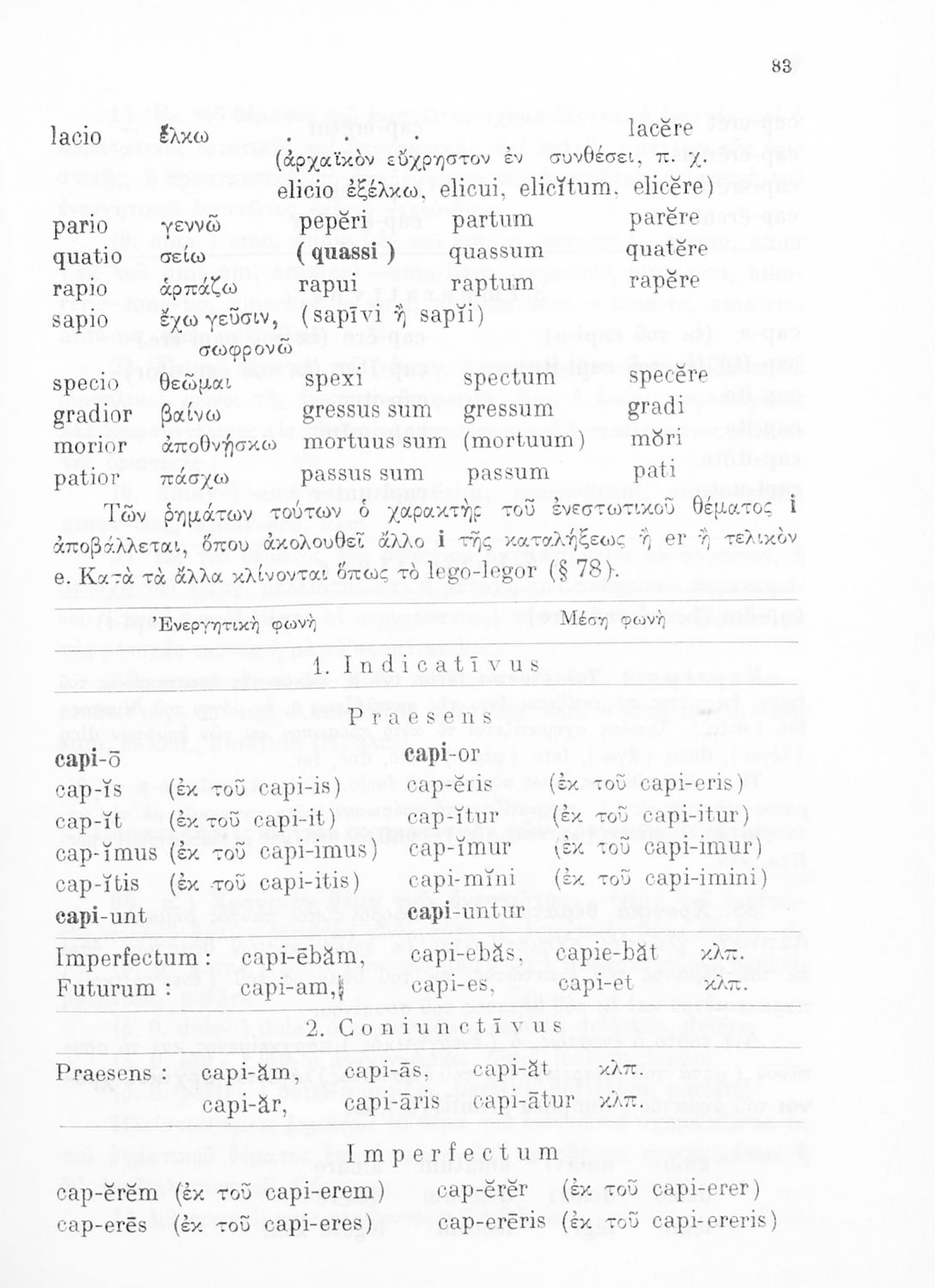 Σχολικό εγχειρίδιο Λατινικών Γυμνασίου που περιλαμβάνει γραμματική και συντακτικό και είναι χωρισμένο σε φθογγολογικό, τυπολογικό και ετυμολογικό μέρος.