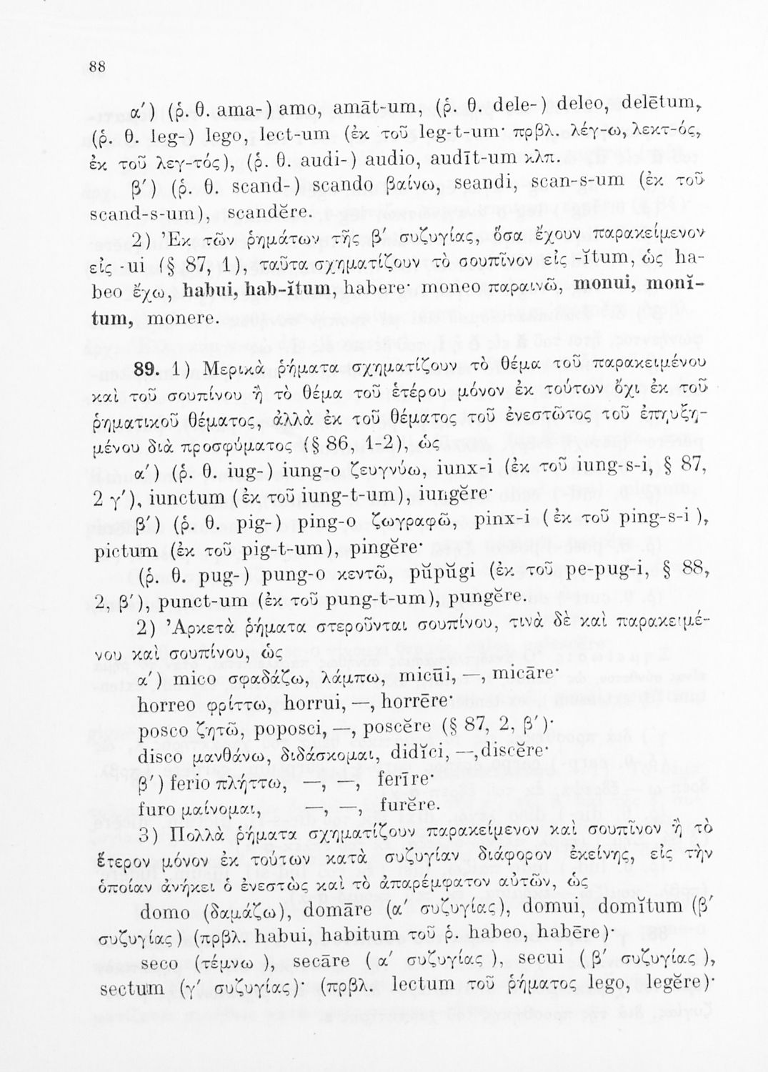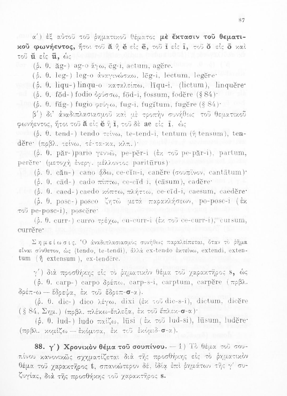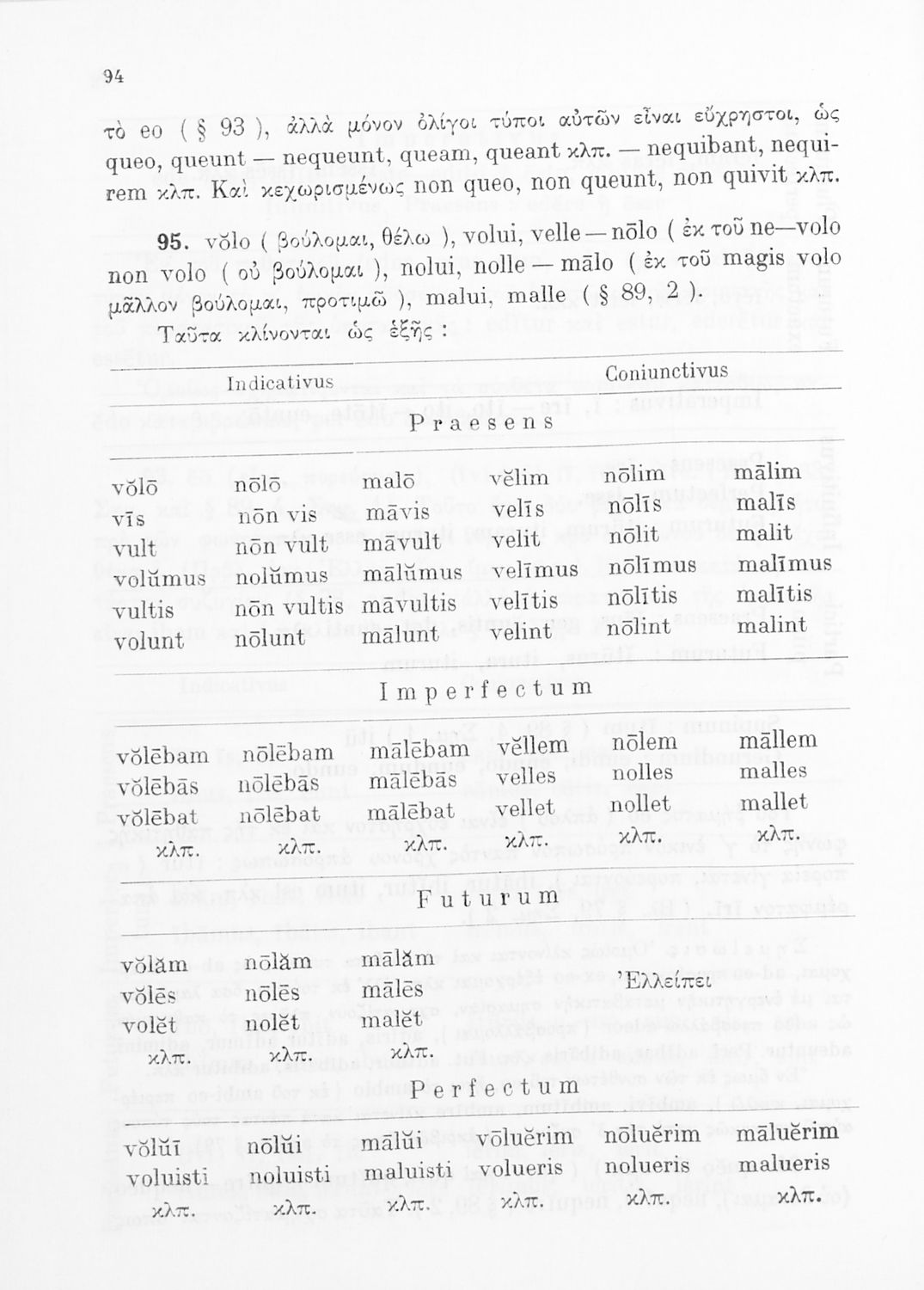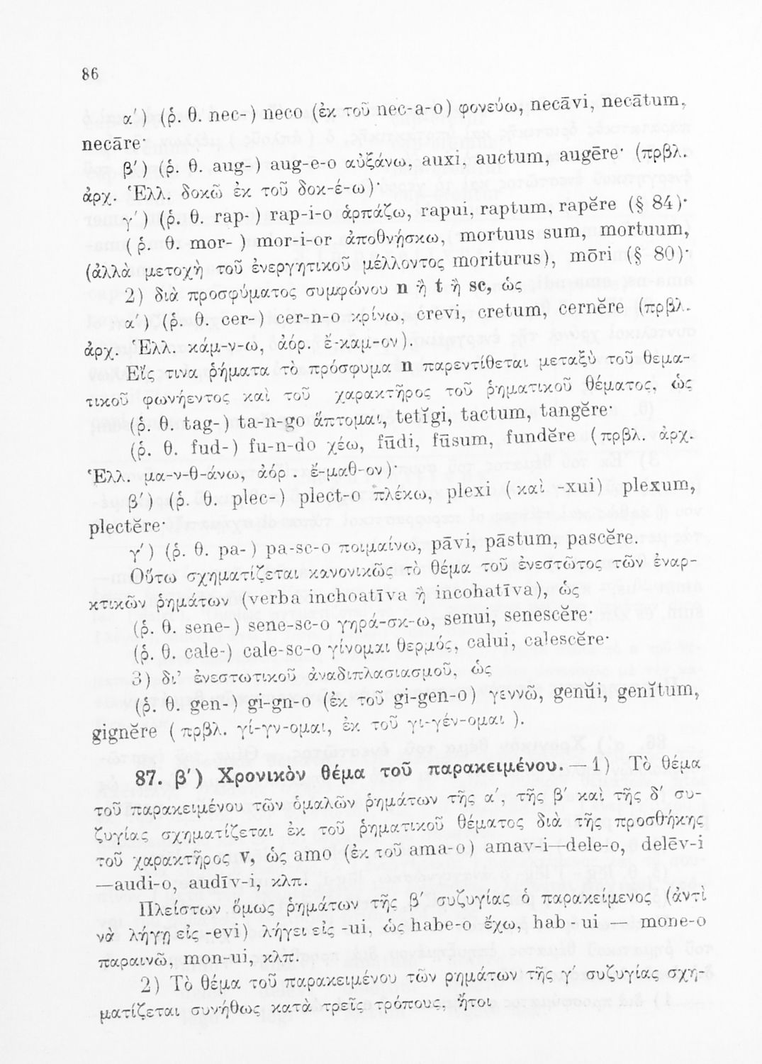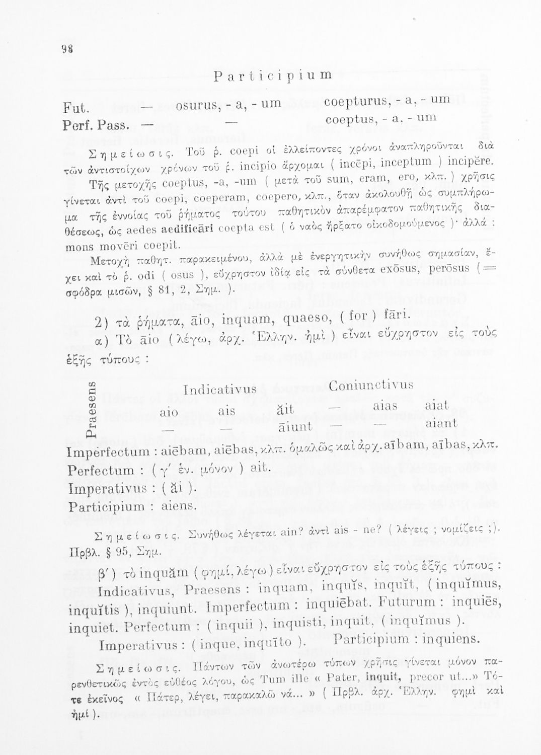 Σχολικό εγχειρίδιο Λατινικών Γυμνασίου που περιλαμβάνει γραμματική και συντακτικό και είναι χωρισμένο σε φθογγολογικό, τυπολογικό και ετυμολογικό μέρος.