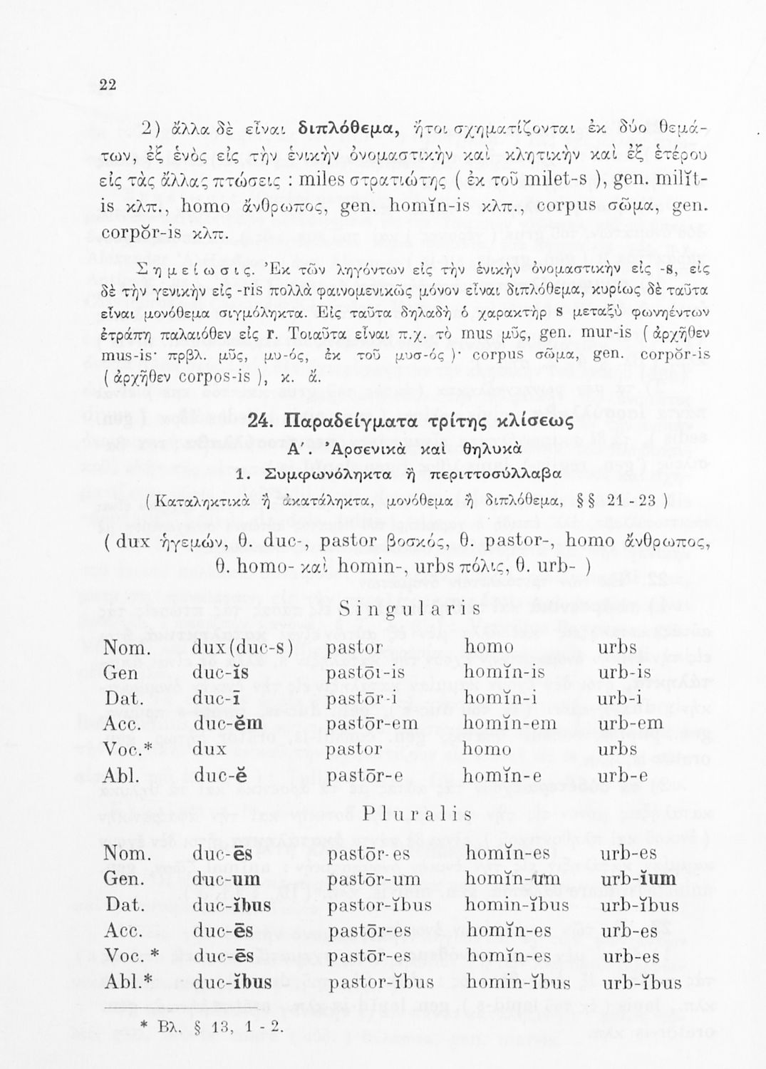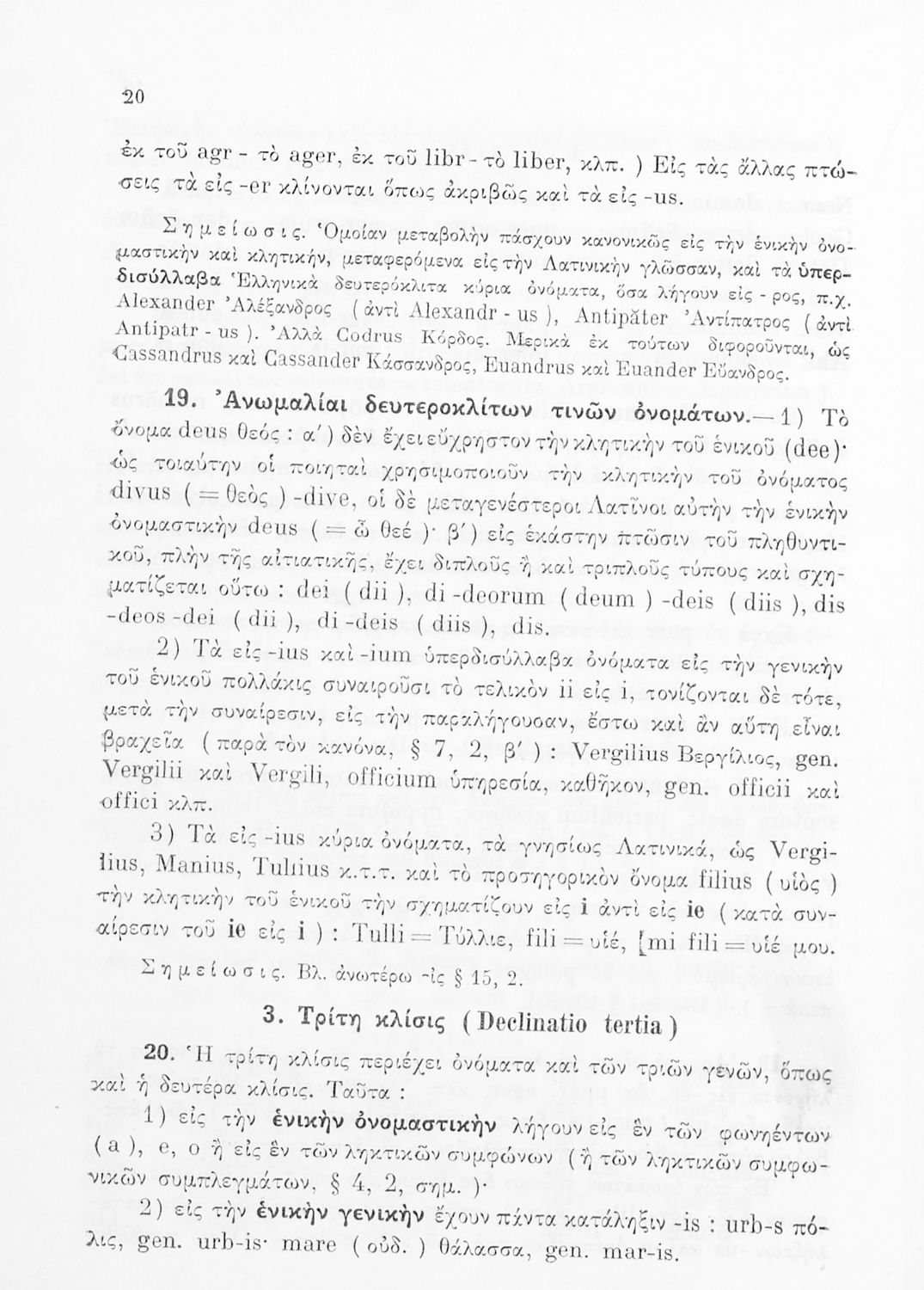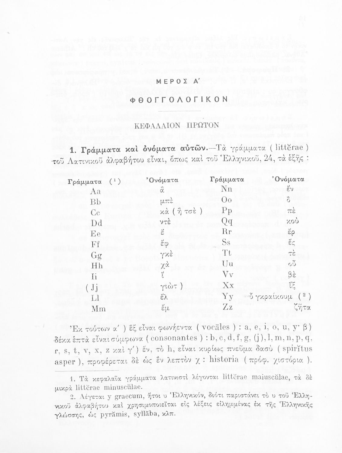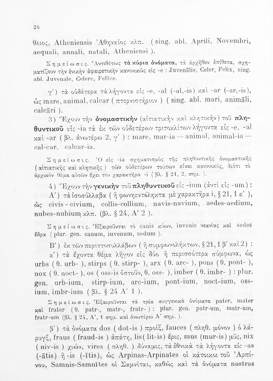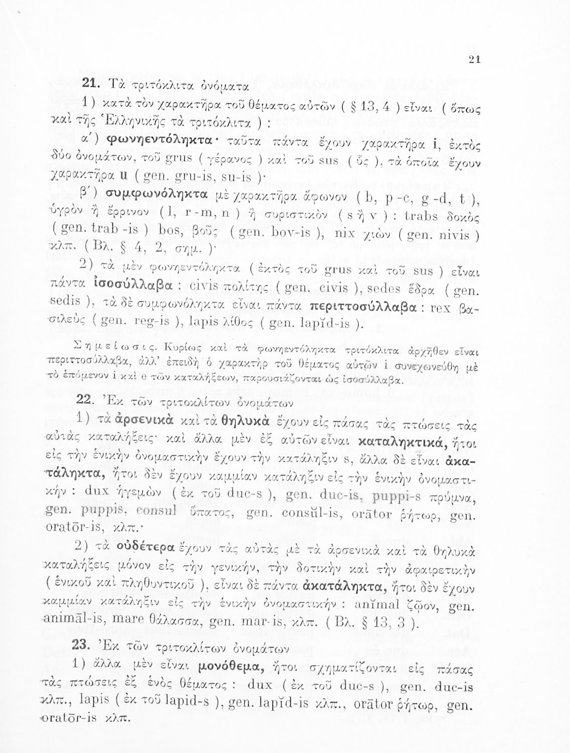Σχολικό εγχειρίδιο Λατινικών Γυμνασίου που περιλαμβάνει γραμματική και συντακτικό και είναι χωρισμένο σε φθογγολογικό, τυπολογικό και ετυμολογικό μέρος.