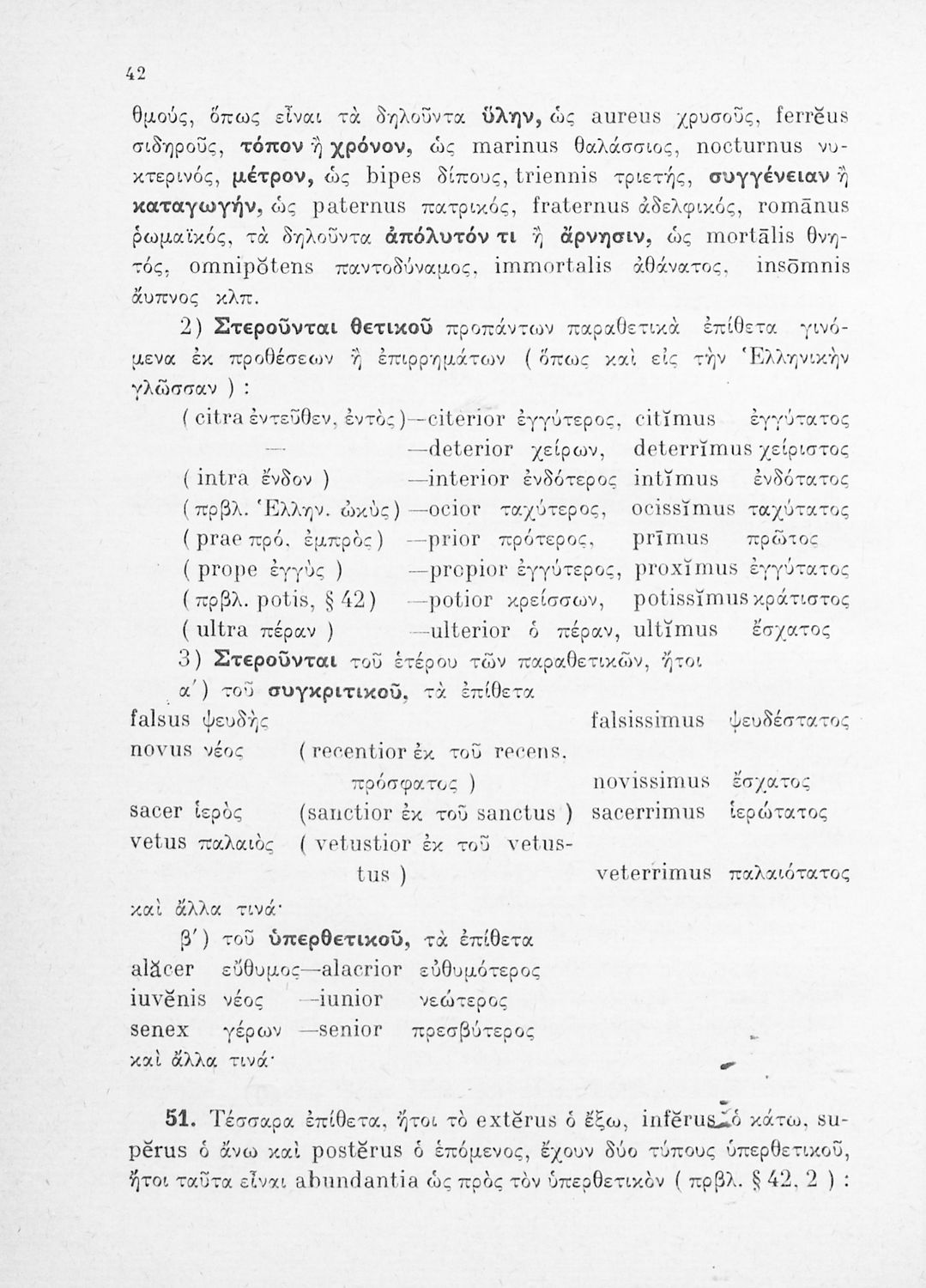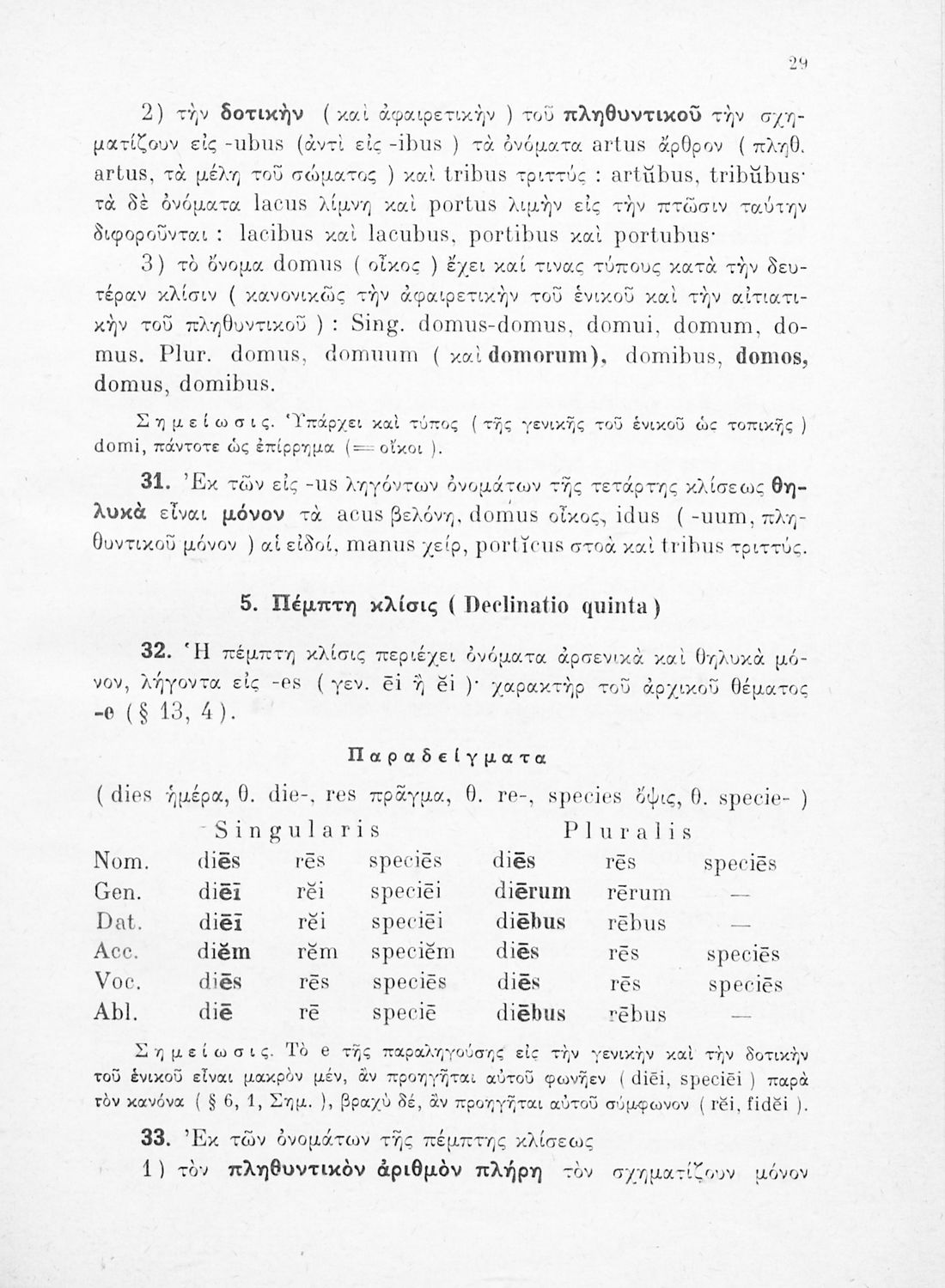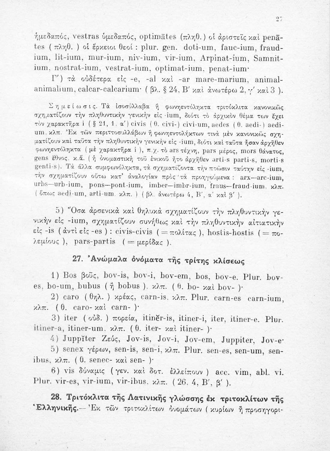 Σχολικό εγχειρίδιο Λατινικών Γυμνασίου που περιλαμβάνει γραμματική και συντακτικό και είναι χωρισμένο σε φθογγολογικό, τυπολογικό και ετυμολογικό μέρος.
