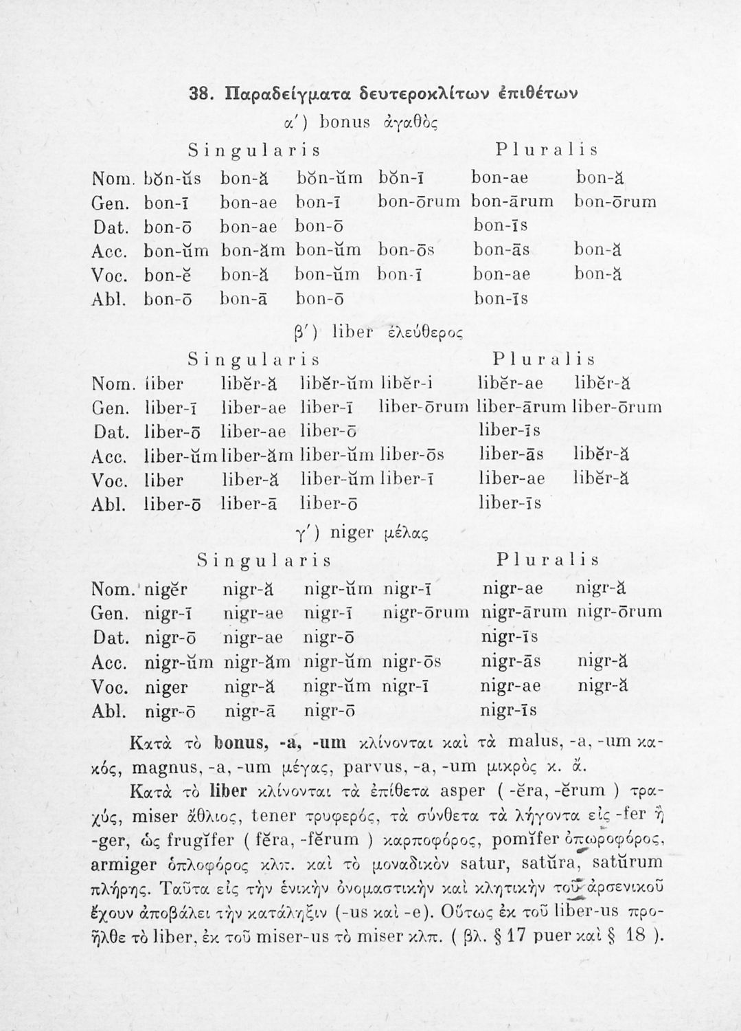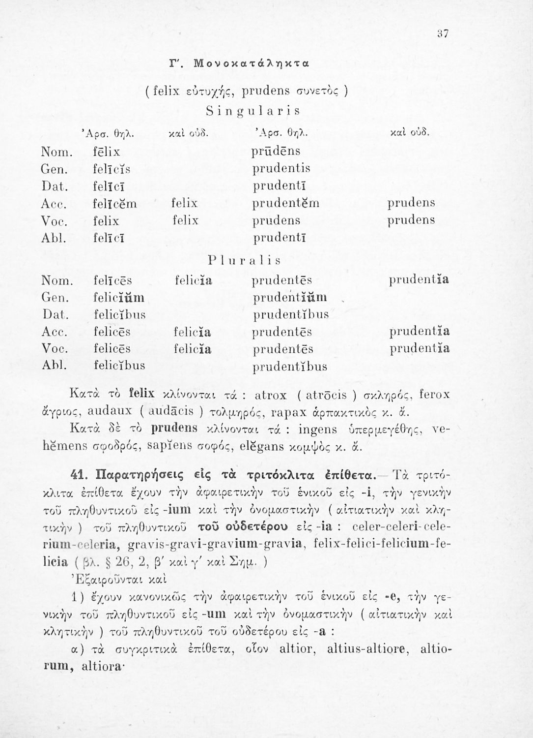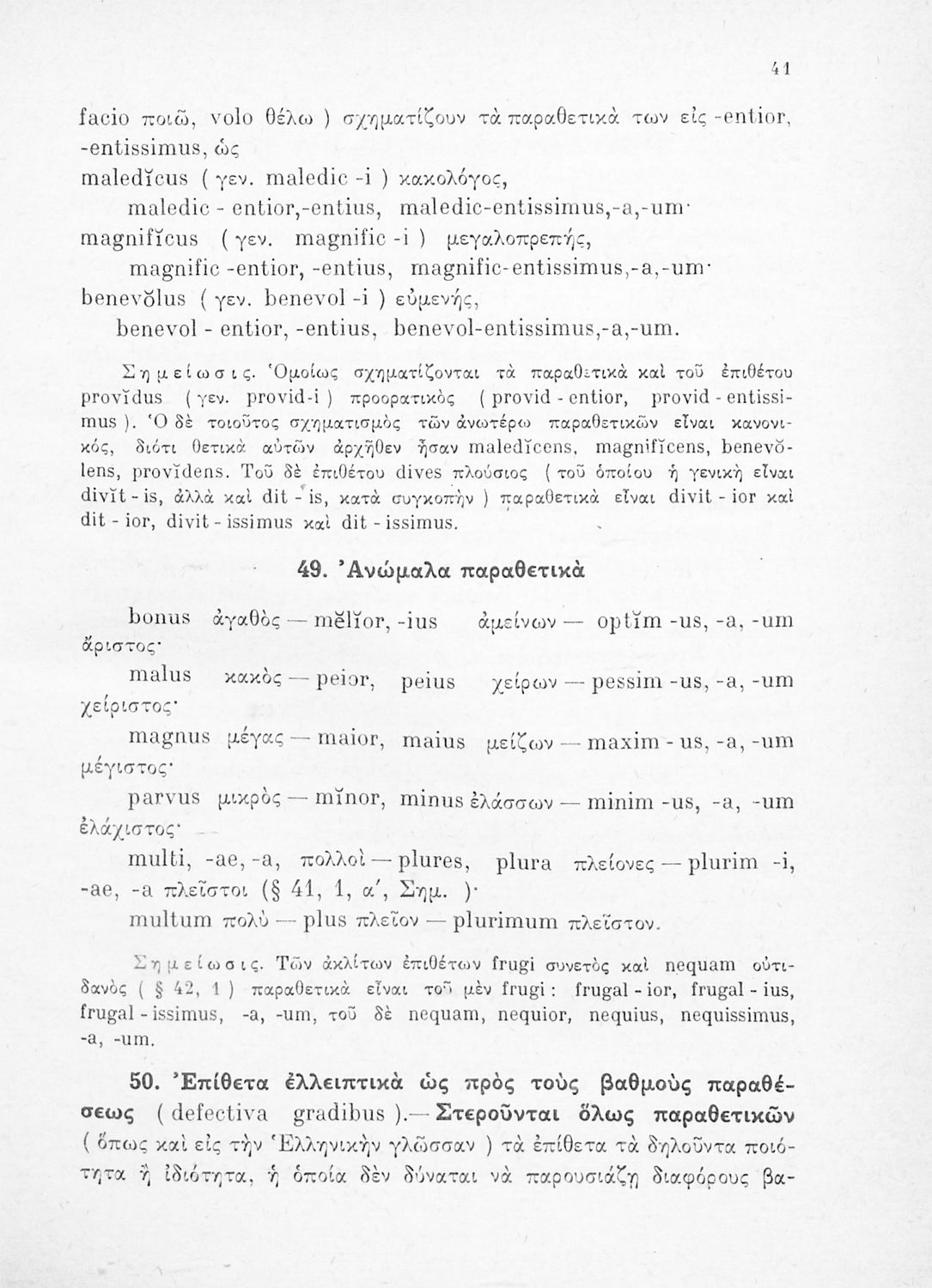 Σχολικό εγχειρίδιο Λατινικών Γυμνασίου που περιλαμβάνει γραμματική και συντακτικό και είναι χωρισμένο σε φθογγολογικό, τυπολογικό και ετυμολογικό μέρος.
