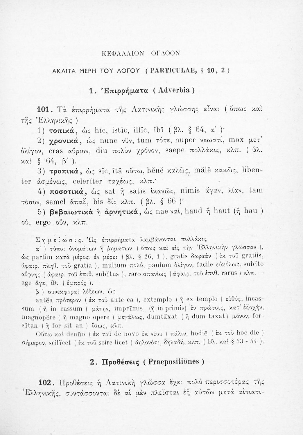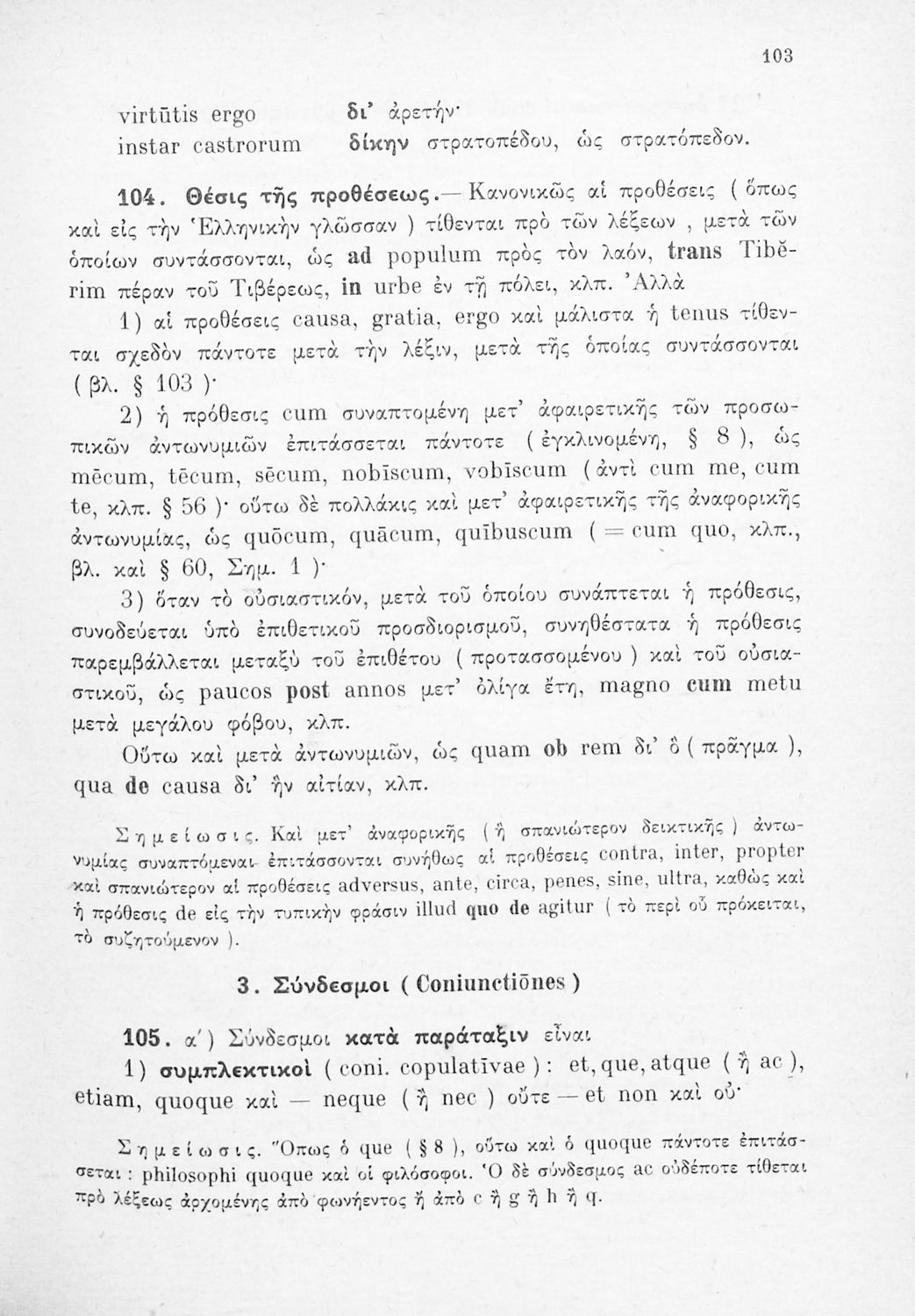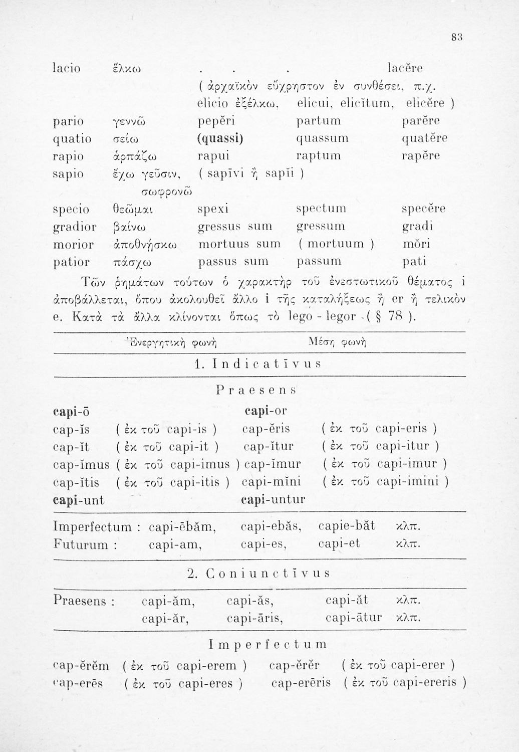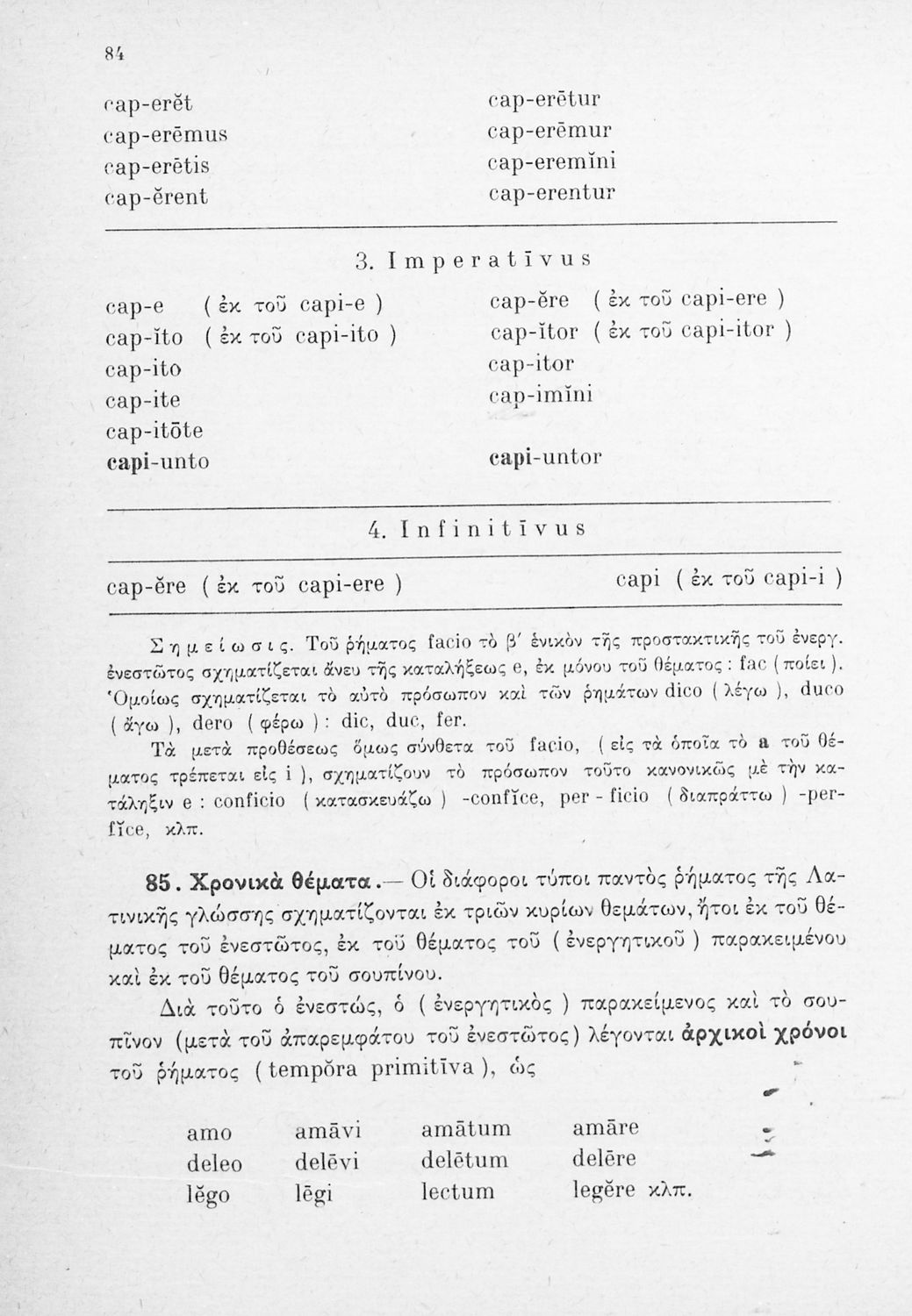 Σχολικό εγχειρίδιο Λατινικών Γυμνασίου που περιλαμβάνει γραμματική και συντακτικό και είναι χωρισμένο σε φθογγολογικό, τυπολογικό και ετυμολογικό μέρος.