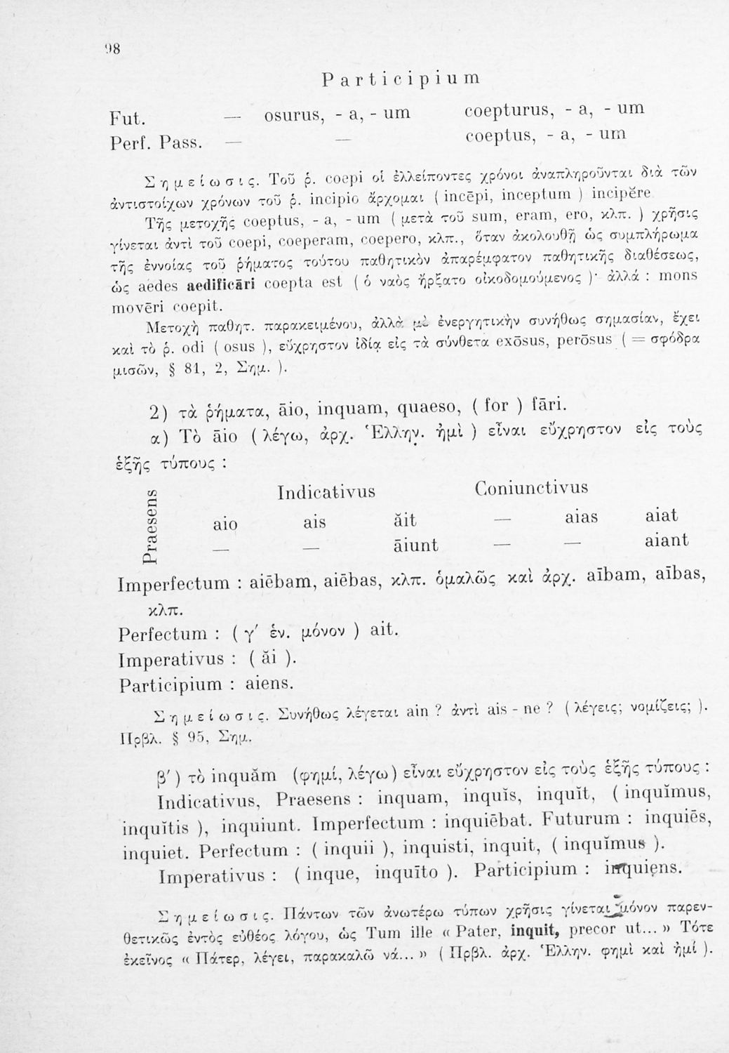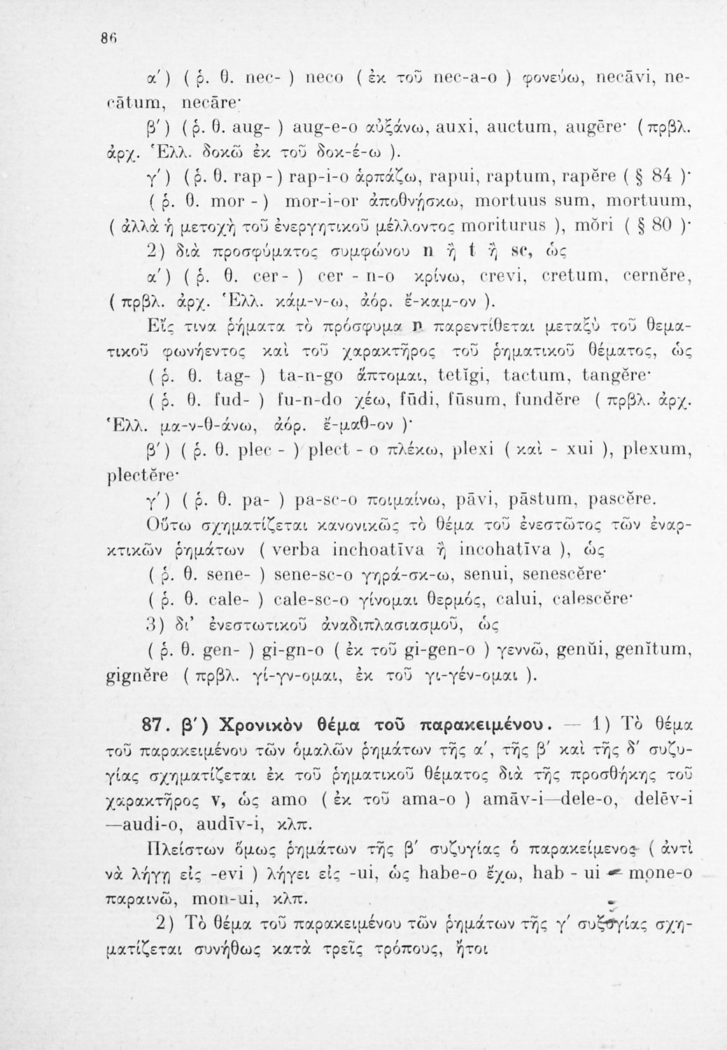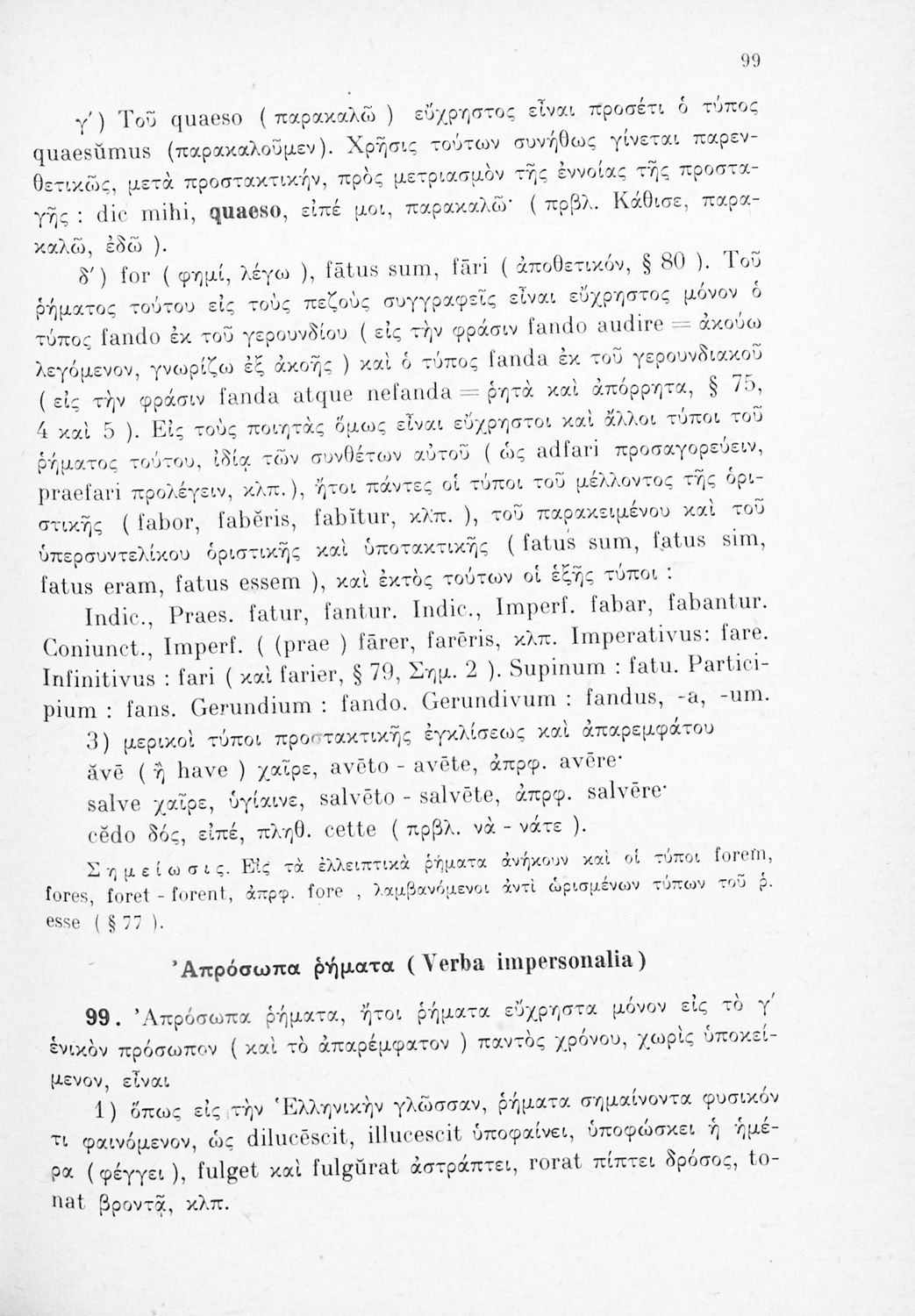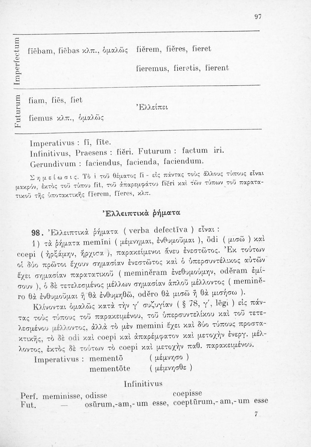 Σχολικό εγχειρίδιο Λατινικών Γυμνασίου που περιλαμβάνει γραμματική και συντακτικό και είναι χωρισμένο σε φθογγολογικό, τυπολογικό και ετυμολογικό μέρος.
