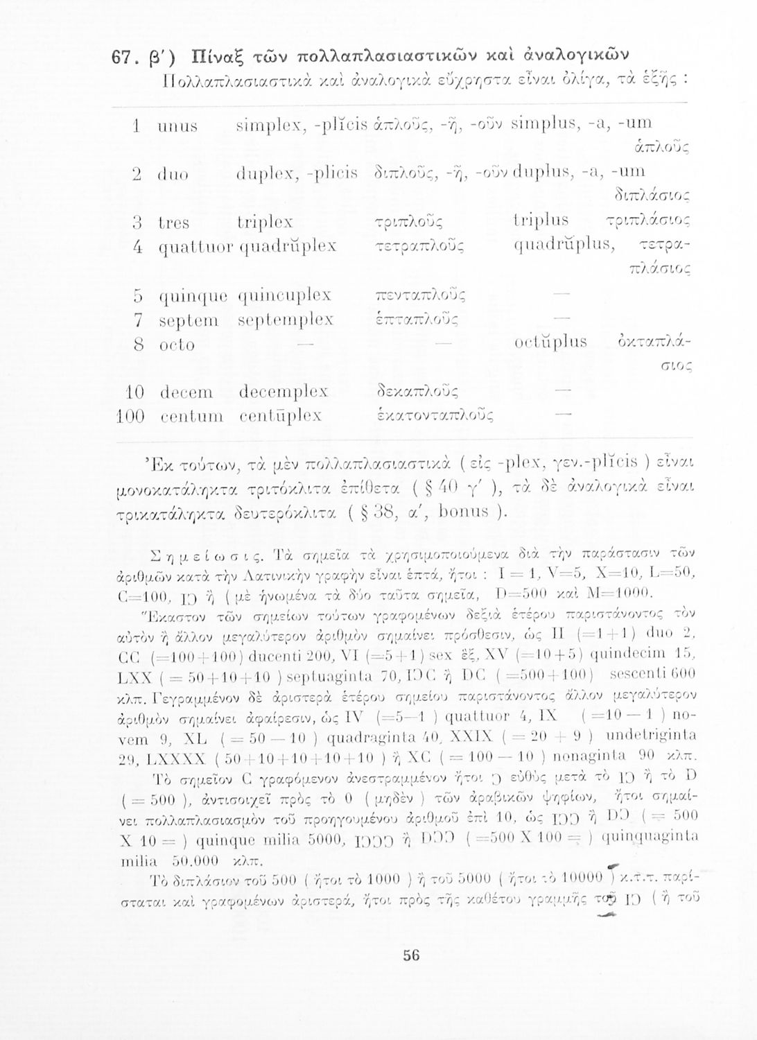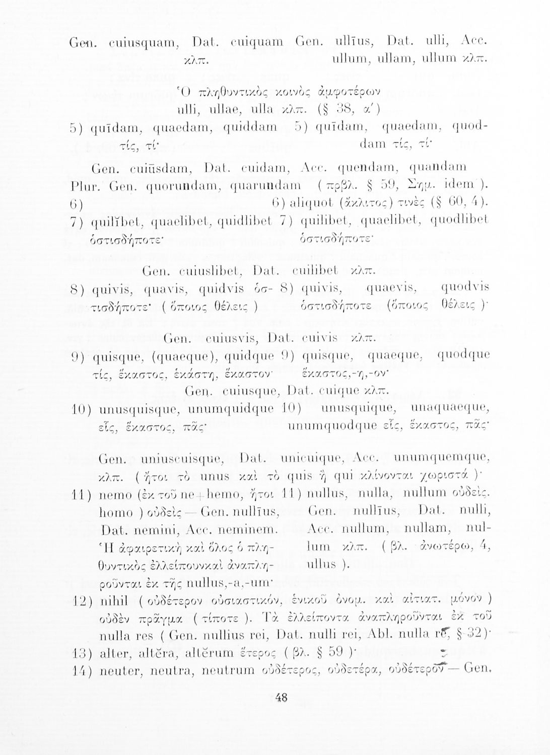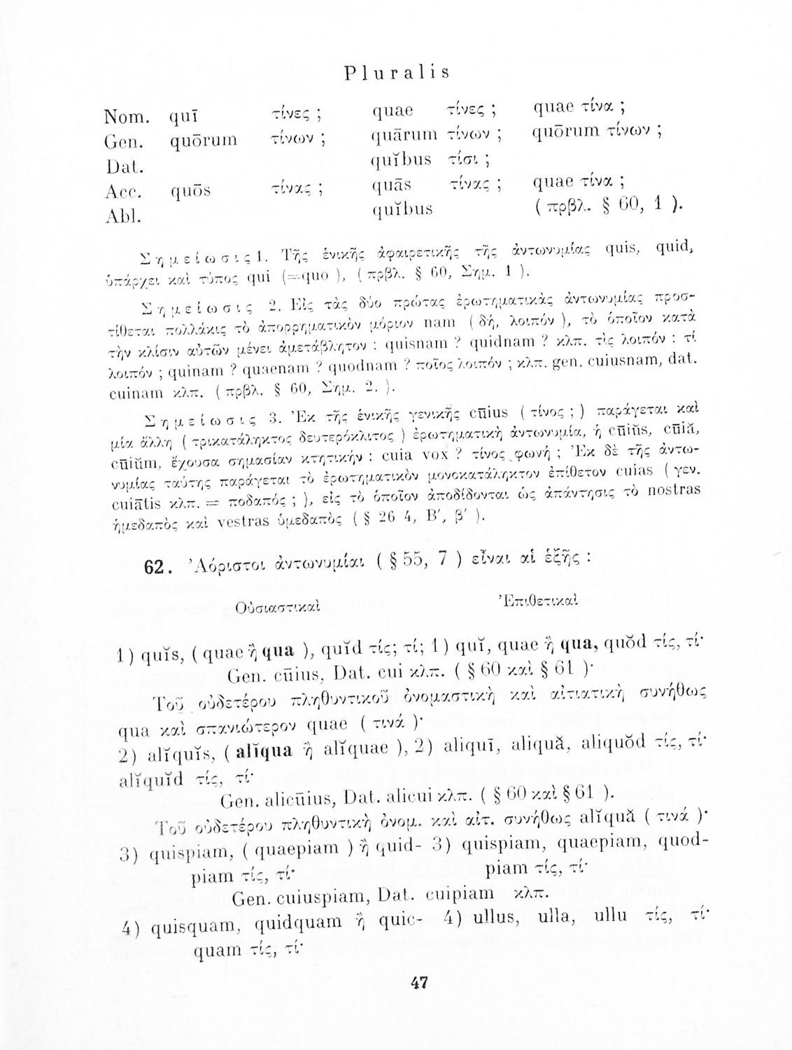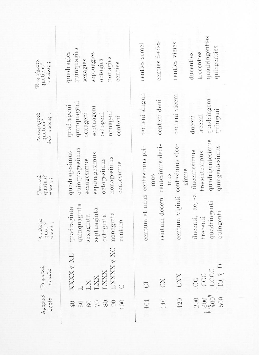Σχολικό εγχειρίδιο Λατινικών Γυμνασίου που περιλαμβάνει γραμματική και συντακτικό και είναι χωρισμένο σε φθογγολογικό, τυπολογικό και ετυμολογικό μέρος.