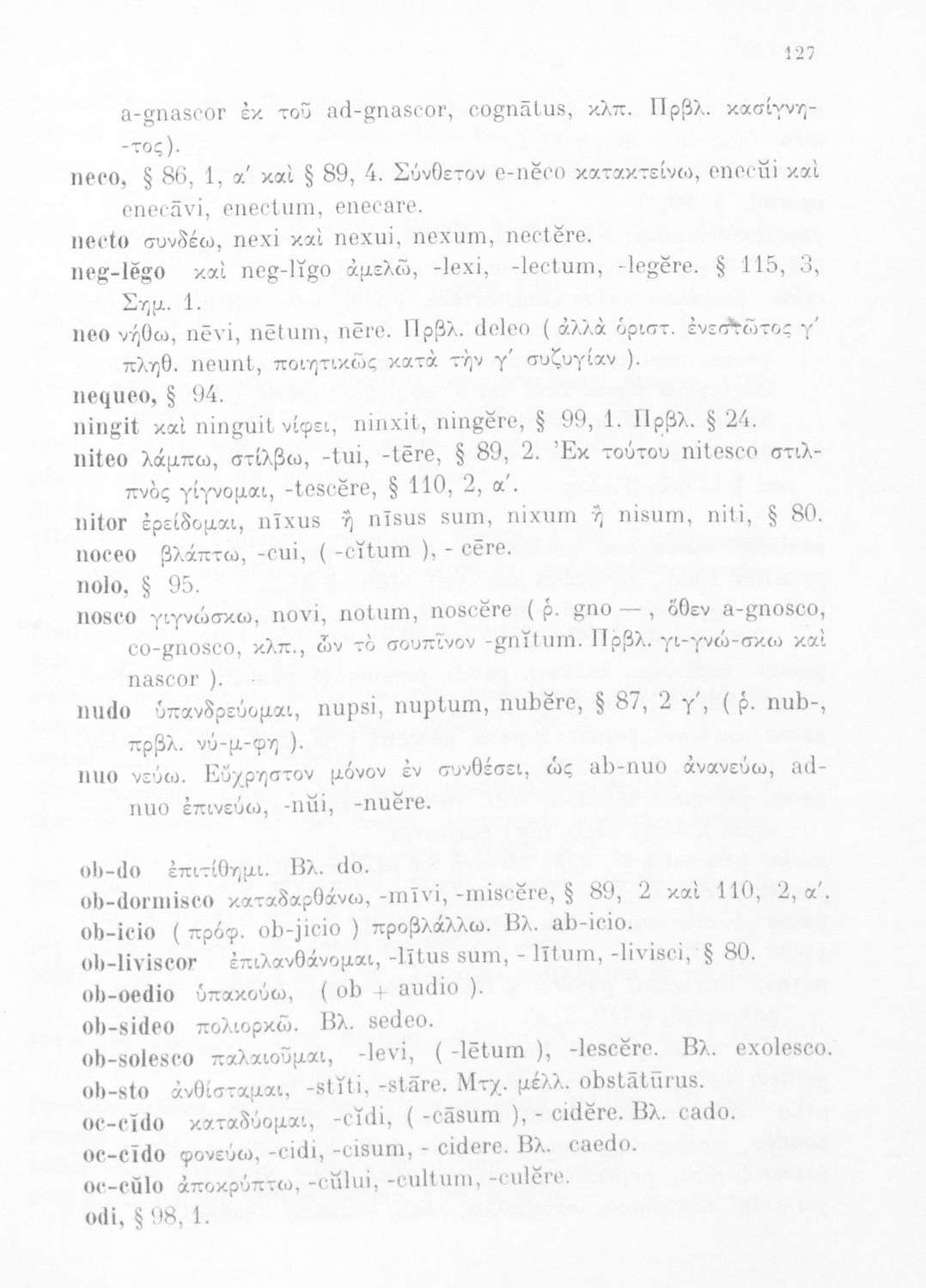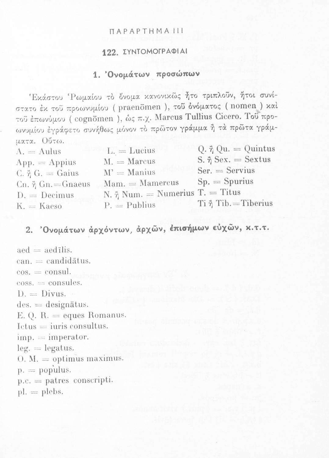 Σχολικό εγχειρίδιο Λατινικών Γυμνασίου που περιλαμβάνει γραμματική και συντακτικό και είναι χωρισμένο σε φθογγολογικό, τυπολογικό και ετυμολογικό μέρος. Φέρει το σύμβολο της δικτατορίας.