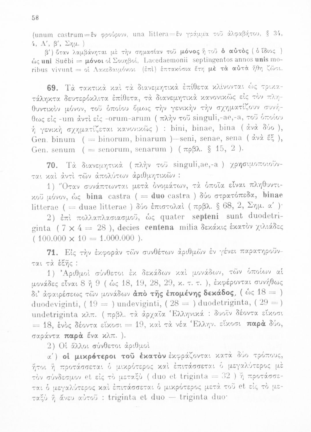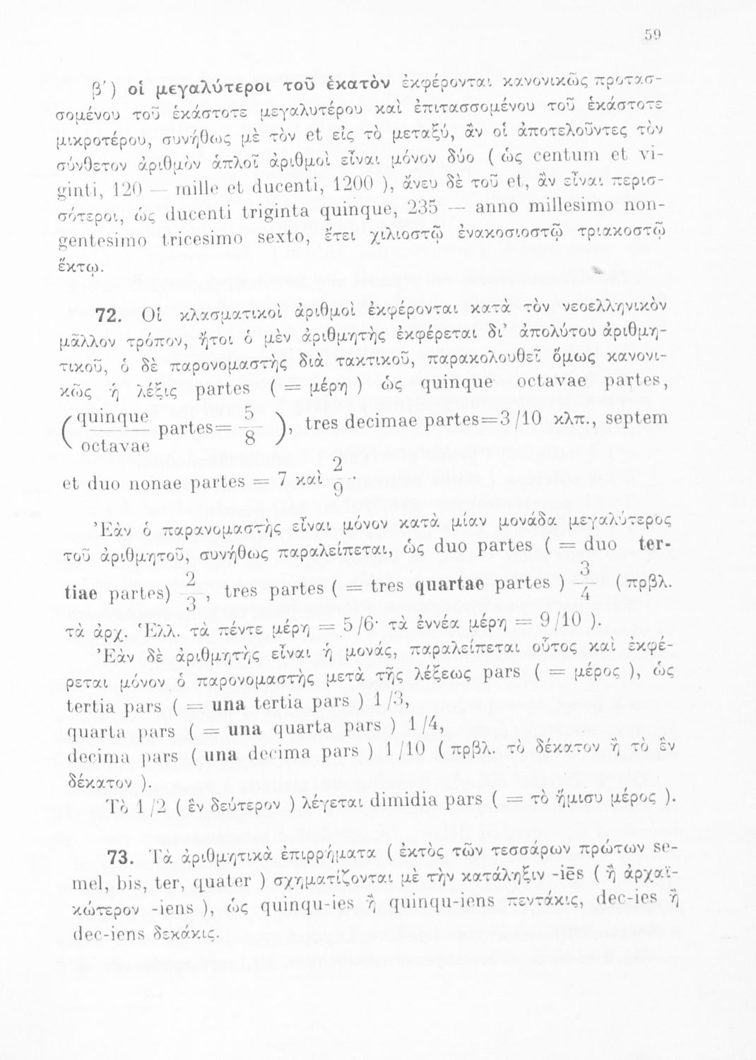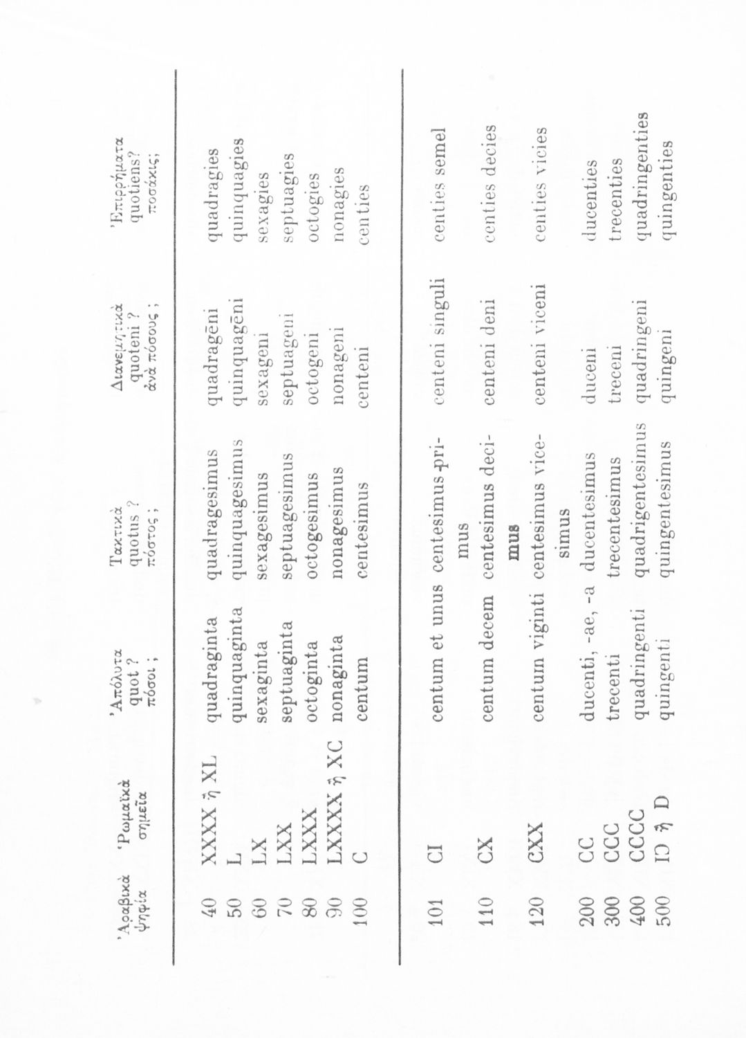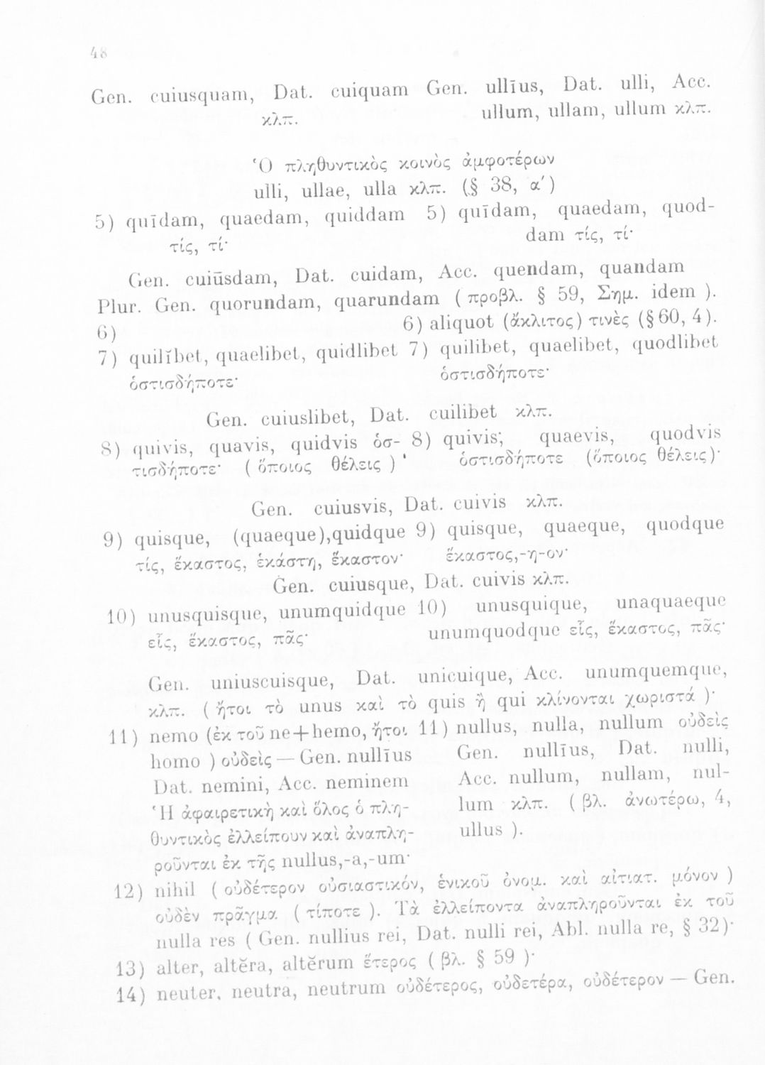 Σχολικό εγχειρίδιο Λατινικών Γυμνασίου που περιλαμβάνει γραμματική και συντακτικό και είναι χωρισμένο σε φθογγολογικό, τυπολογικό και ετυμολογικό μέρος.