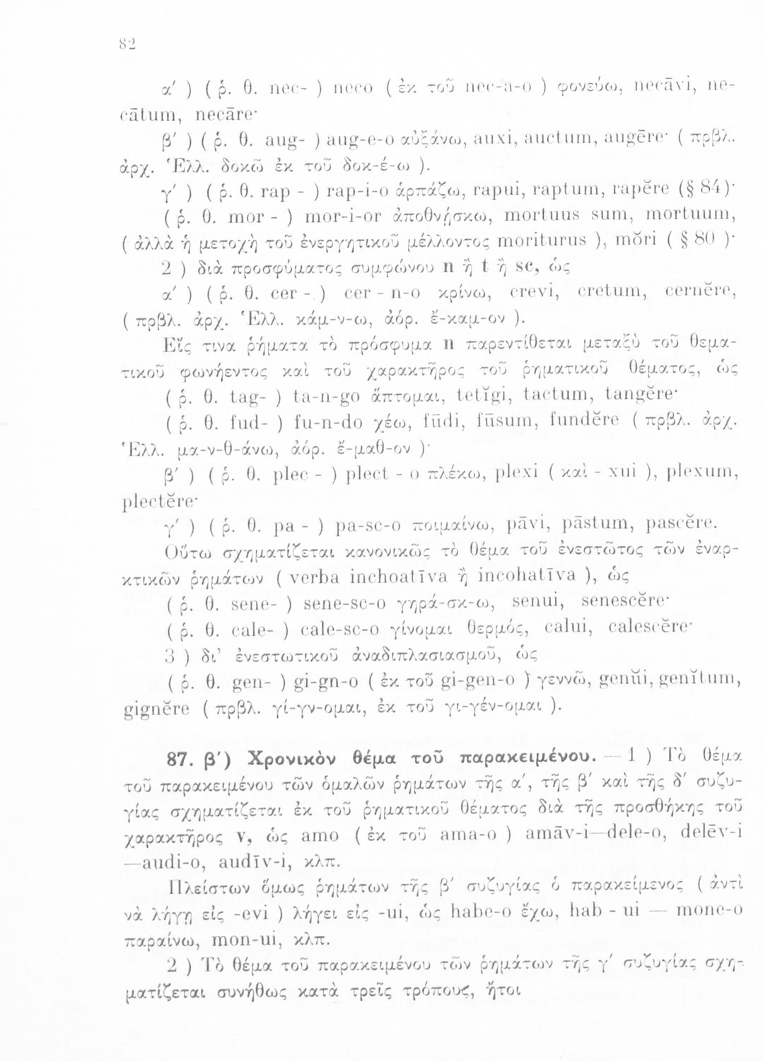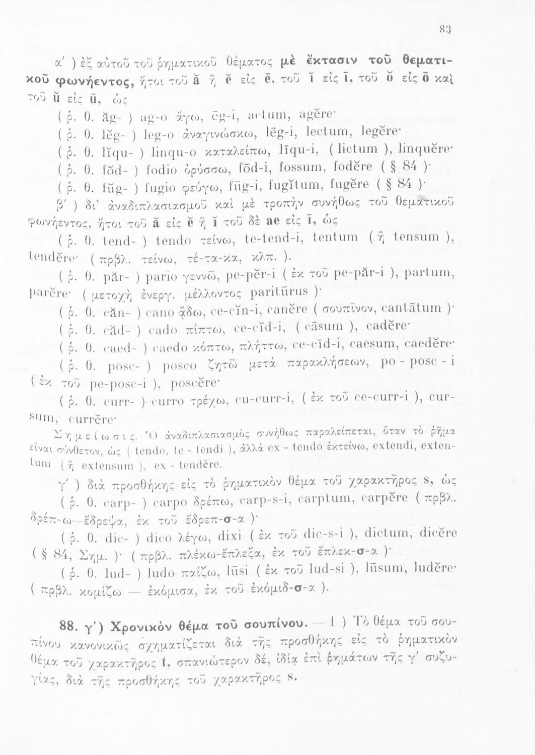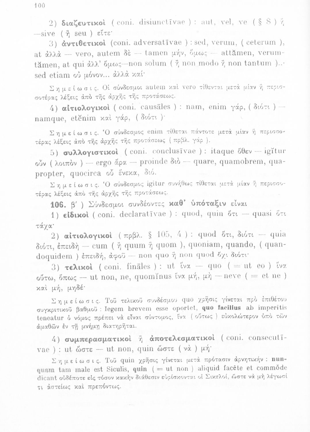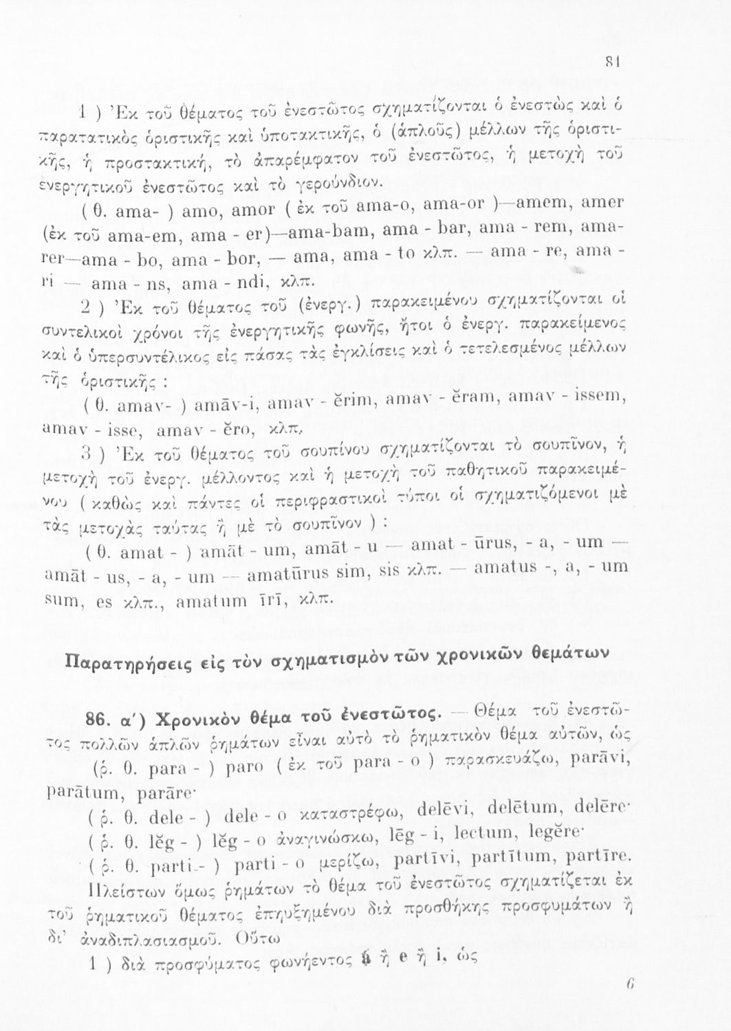 Σχολικό εγχειρίδιο Λατινικών Γυμνασίου που περιλαμβάνει γραμματική και συντακτικό και είναι χωρισμένο σε φθογγολογικό, τυπολογικό και ετυμολογικό μέρος. Φέρει το σύμβολο της δικτατορίας.