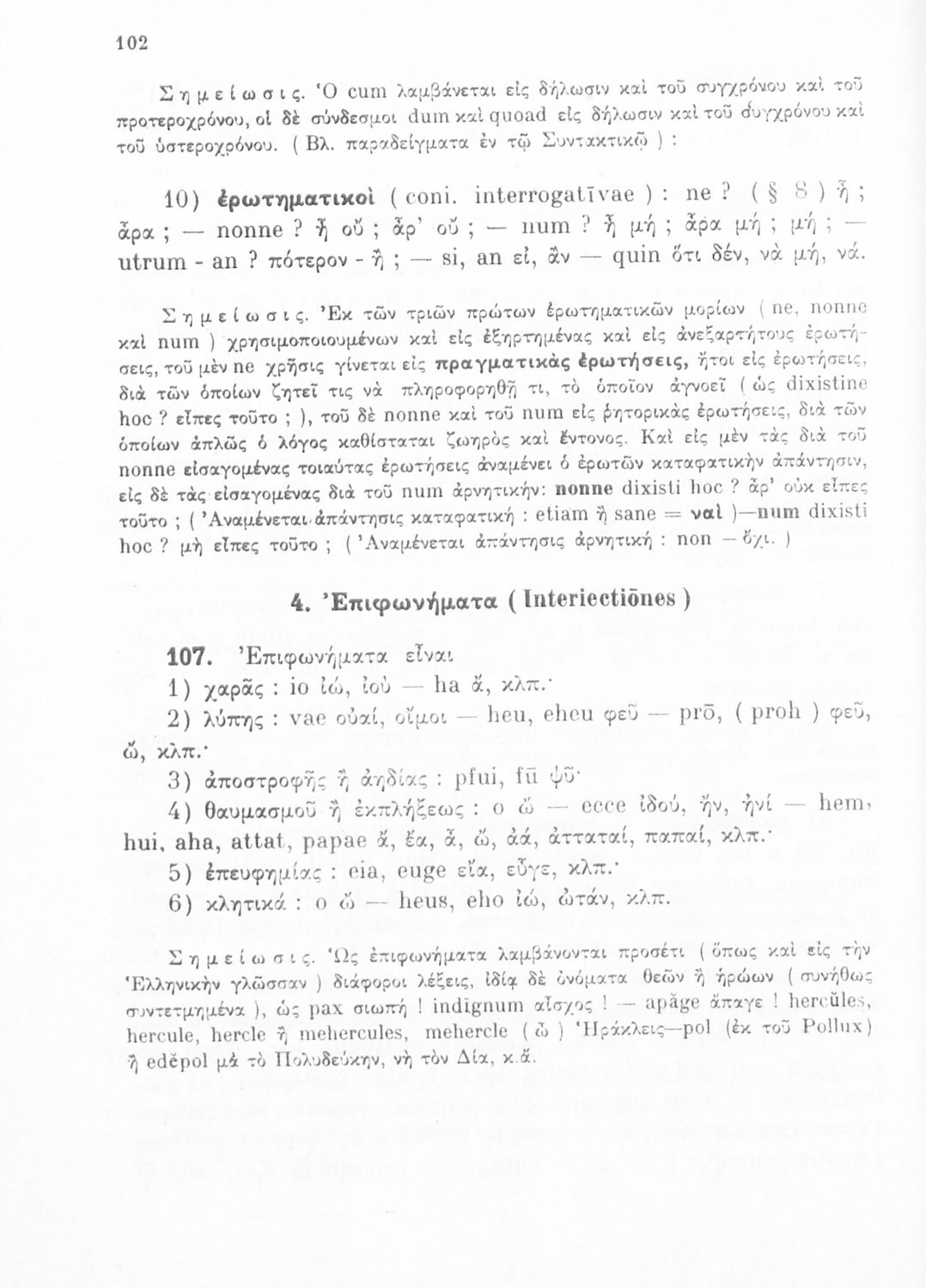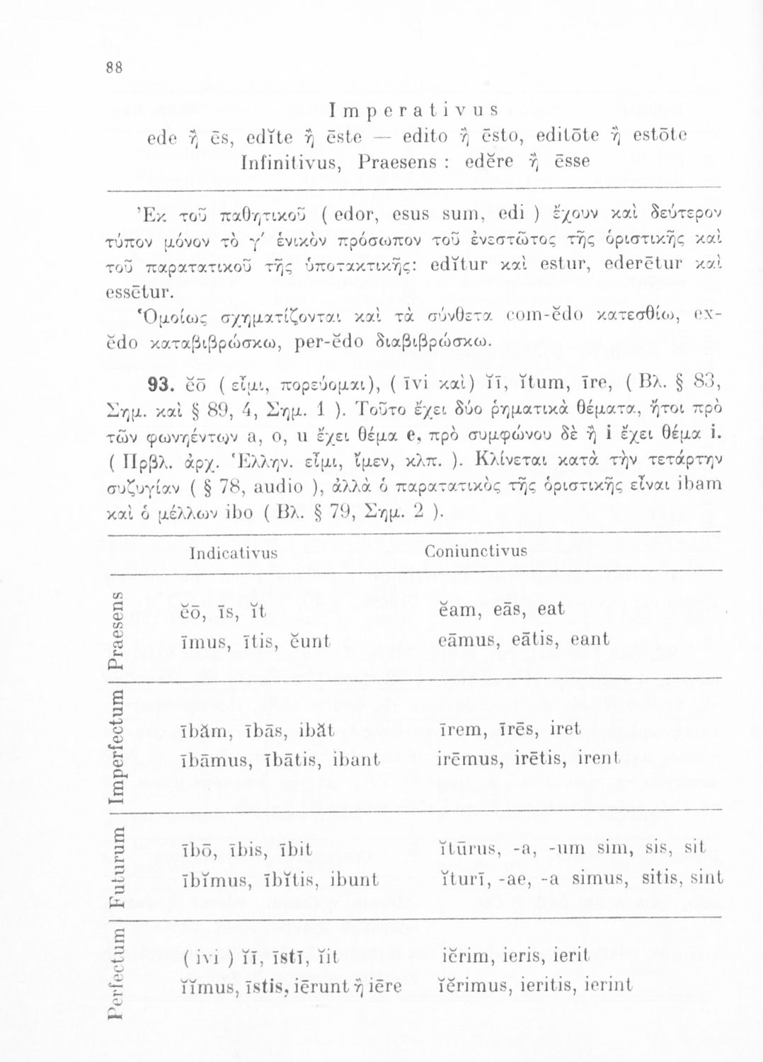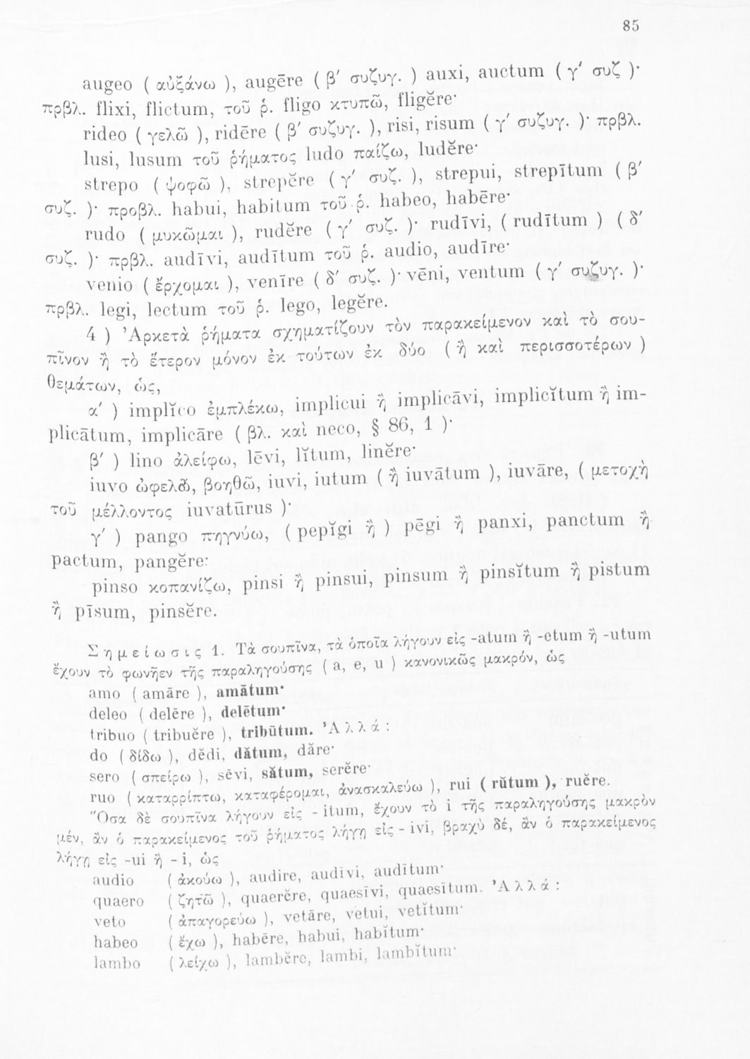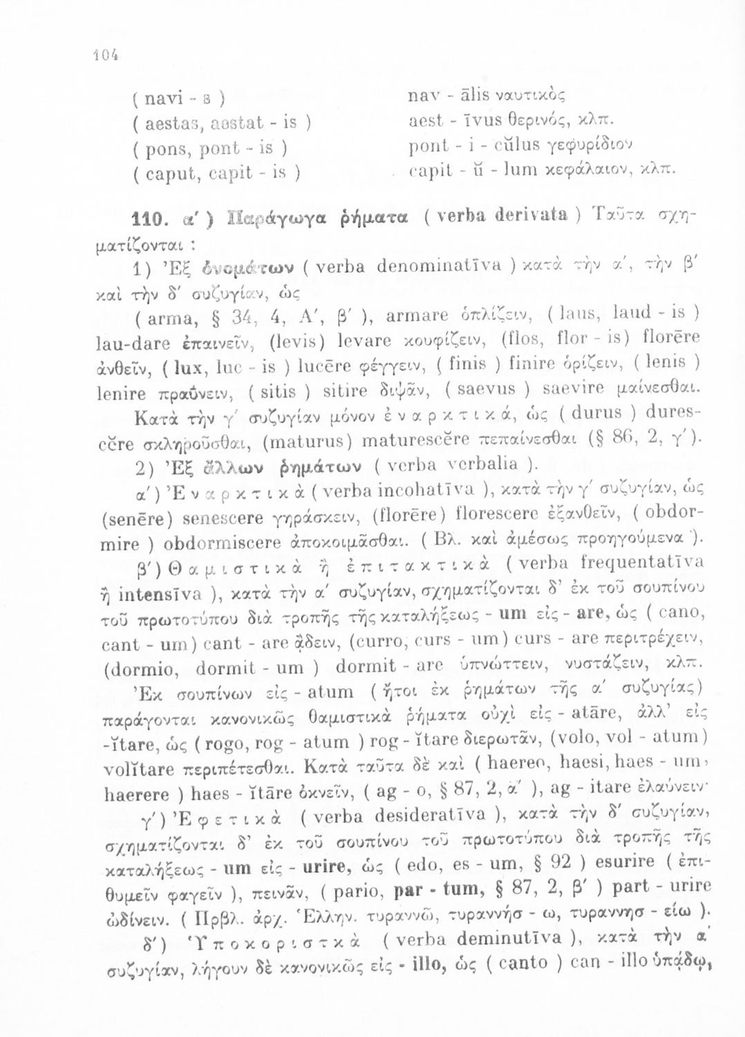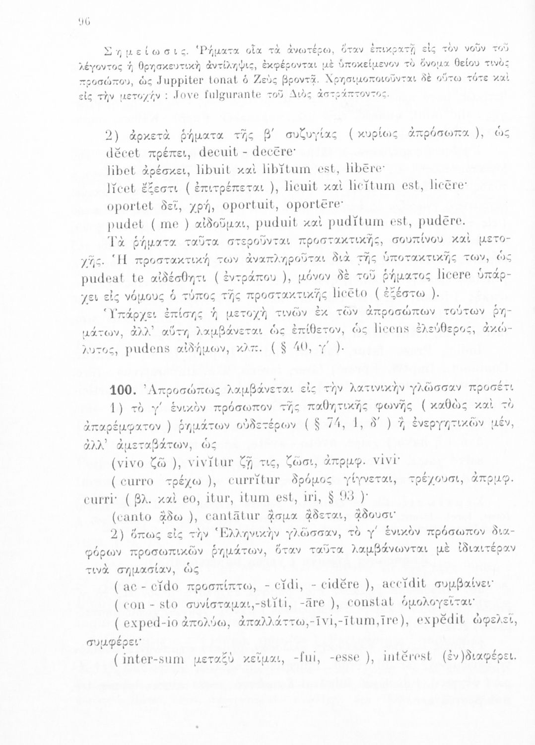 Σχολικό εγχειρίδιο Λατινικών Γυμνασίου που περιλαμβάνει γραμματική και συντακτικό και είναι χωρισμένο σε φθογγολογικό, τυπολογικό και ετυμολογικό μέρος. Φέρει το σύμβολο της δικτατορίας.