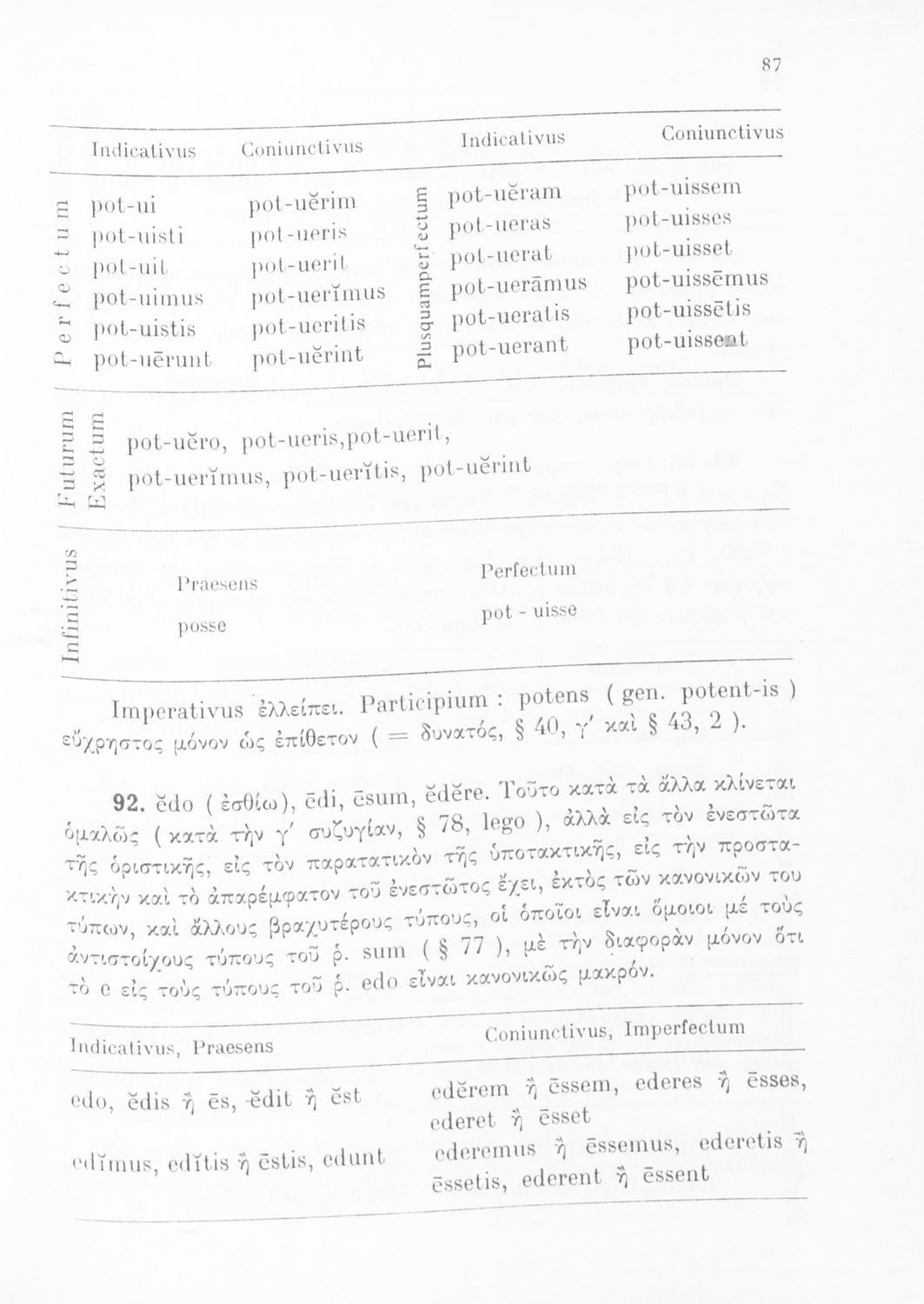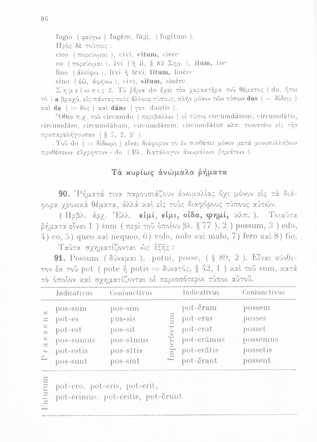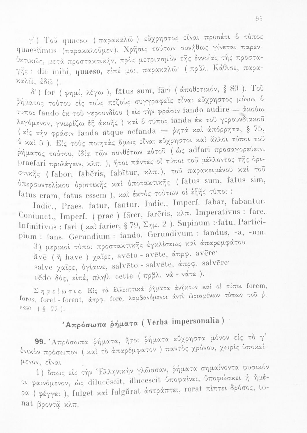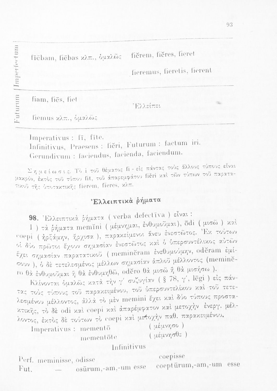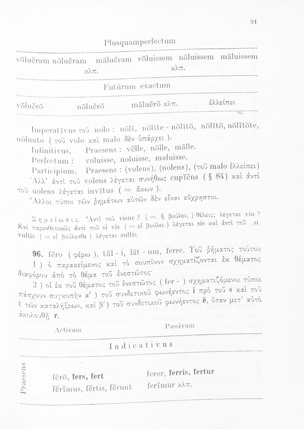 Σχολικό εγχειρίδιο Λατινικών Γυμνασίου που περιλαμβάνει γραμματική και συντακτικό και είναι χωρισμένο σε φθογγολογικό, τυπολογικό και ετυμολογικό μέρος. Φέρει το σύμβολο της δικτατορίας.