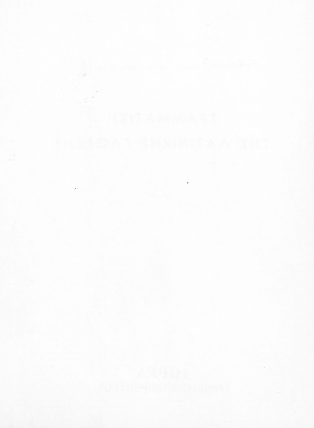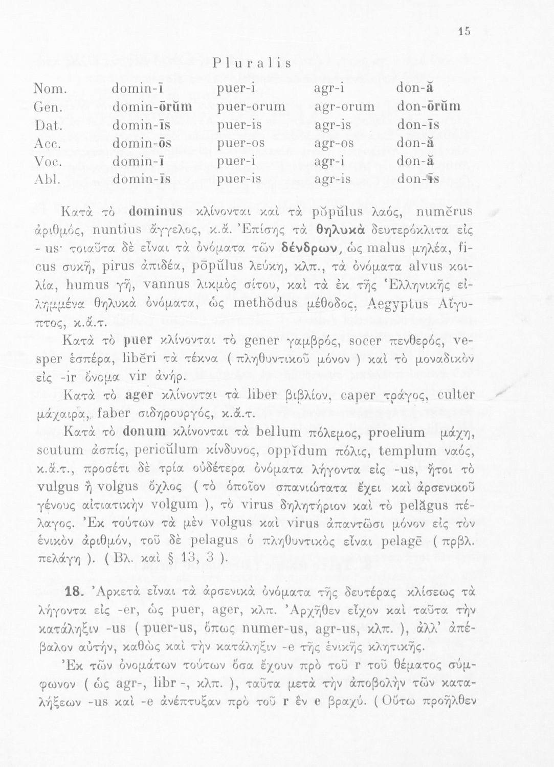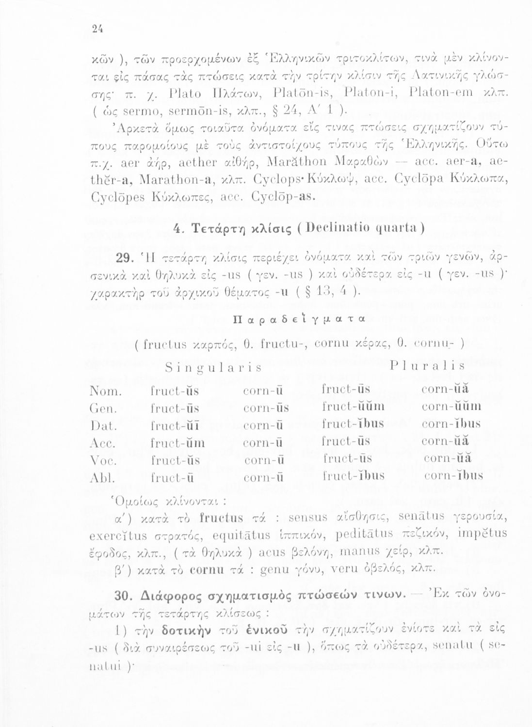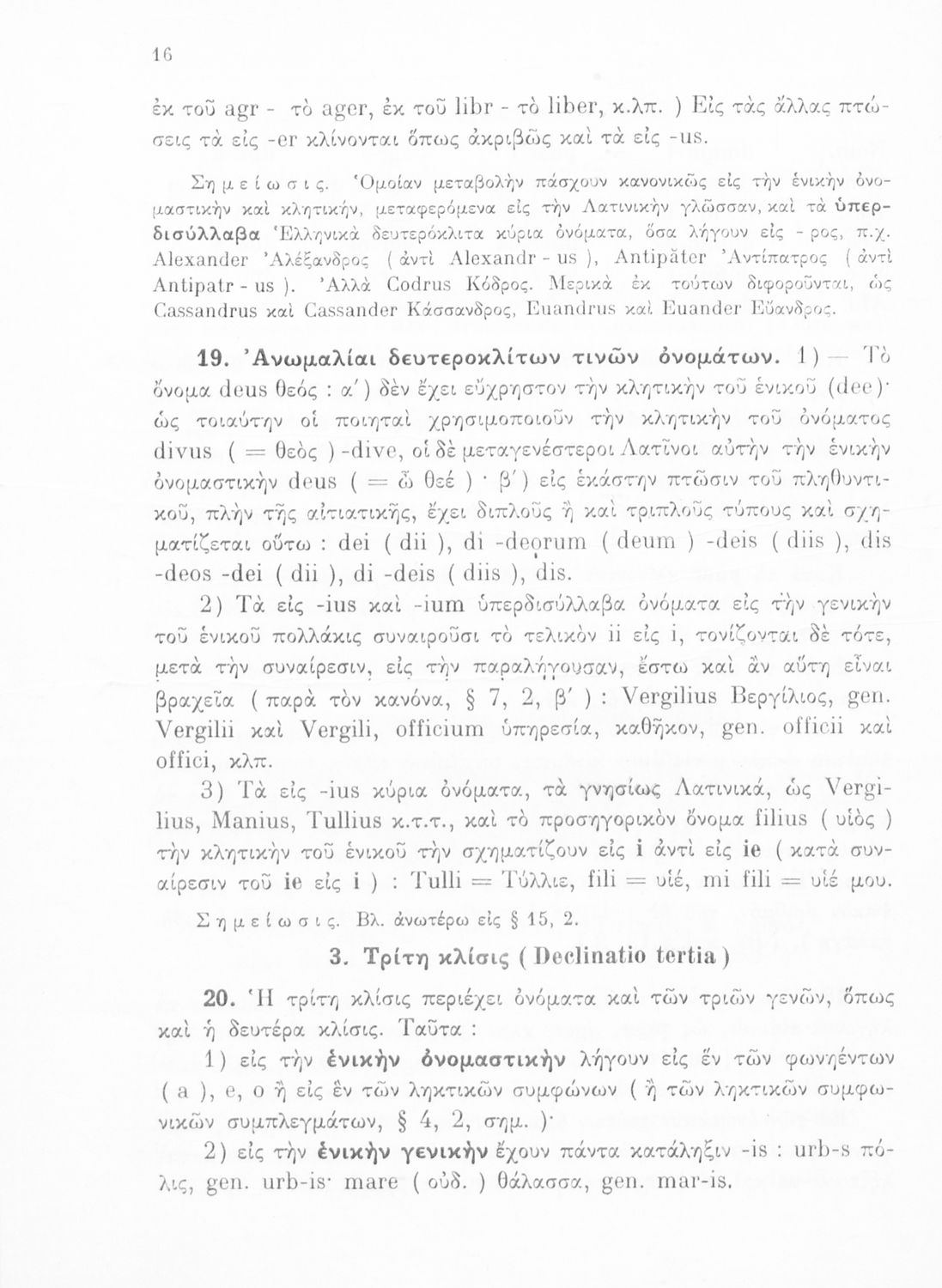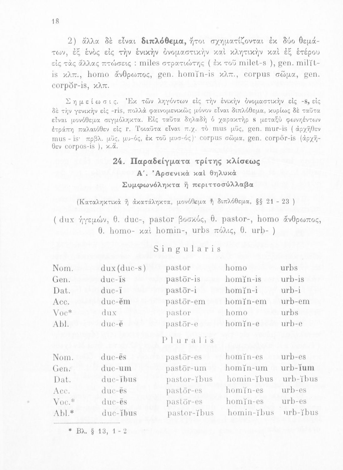 Σχολικό εγχειρίδιο Λατινικών Γυμνασίου που περιλαμβάνει γραμματική και συντακτικό και είναι χωρισμένο σε φθογγολογικό, τυπολογικό και ετυμολογικό μέρος. Φέρει το σύμβολο της δικτατορίας.