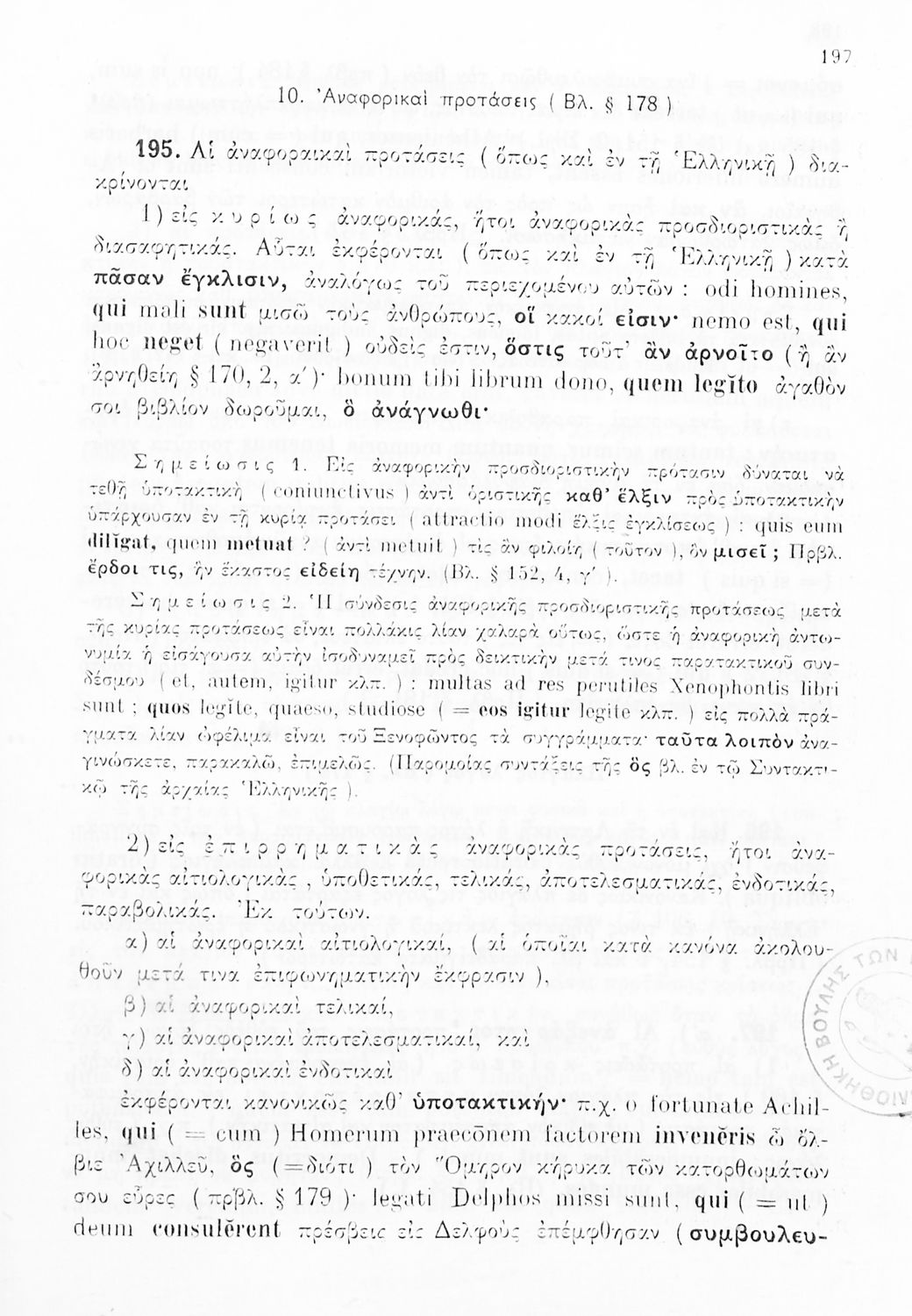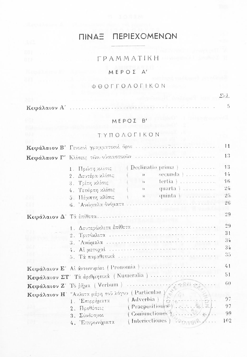 Σχολικό εγχειρίδιο Λατινικών Δ΄, Ε΄ και ΣΤ΄ Γυμνασίου που περιλαμβάνει γραμματική και συντακτικό και είναι χωρισμένο σε φθογγολογικό, τυπολογικό και ετυμολογικό μέρος.