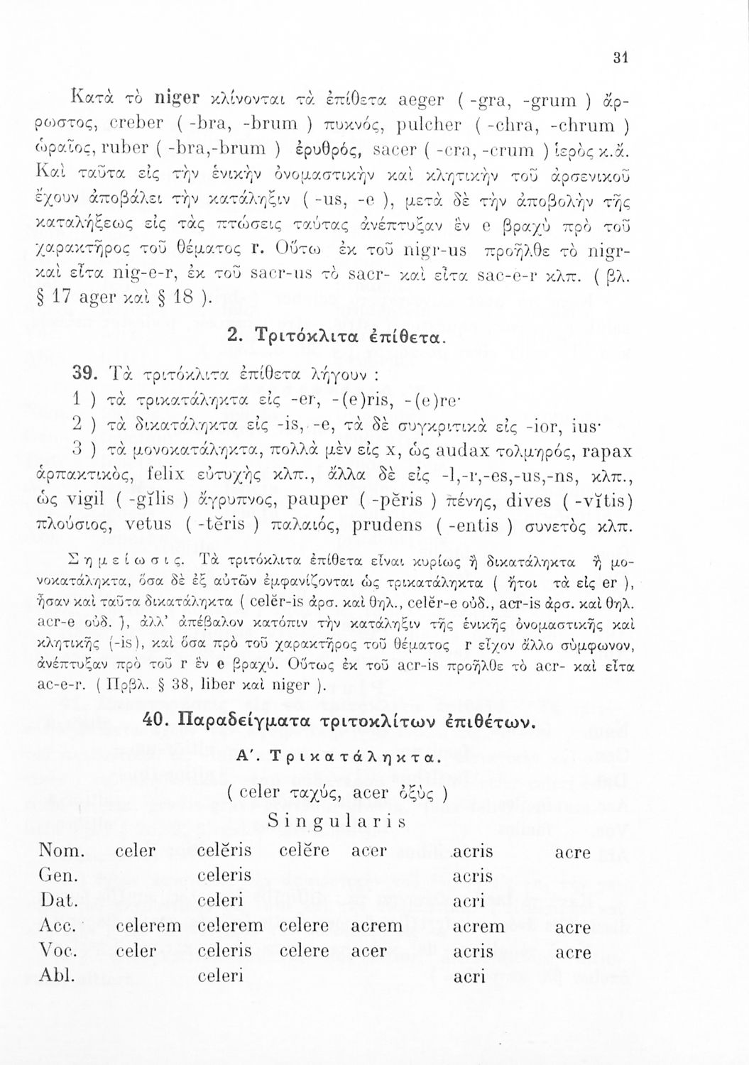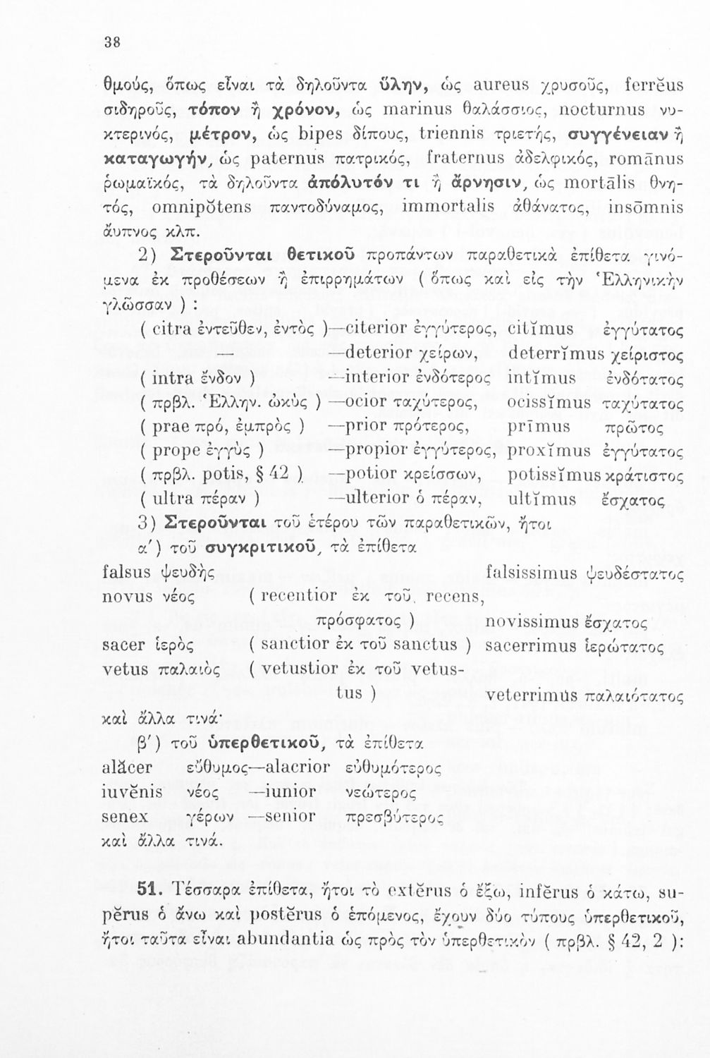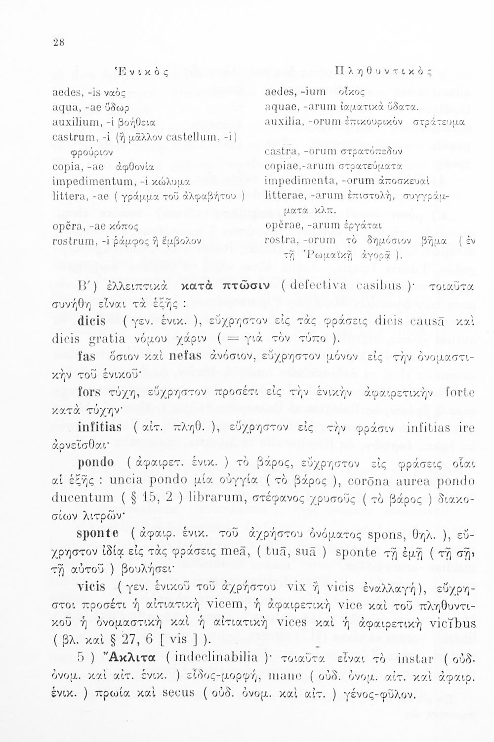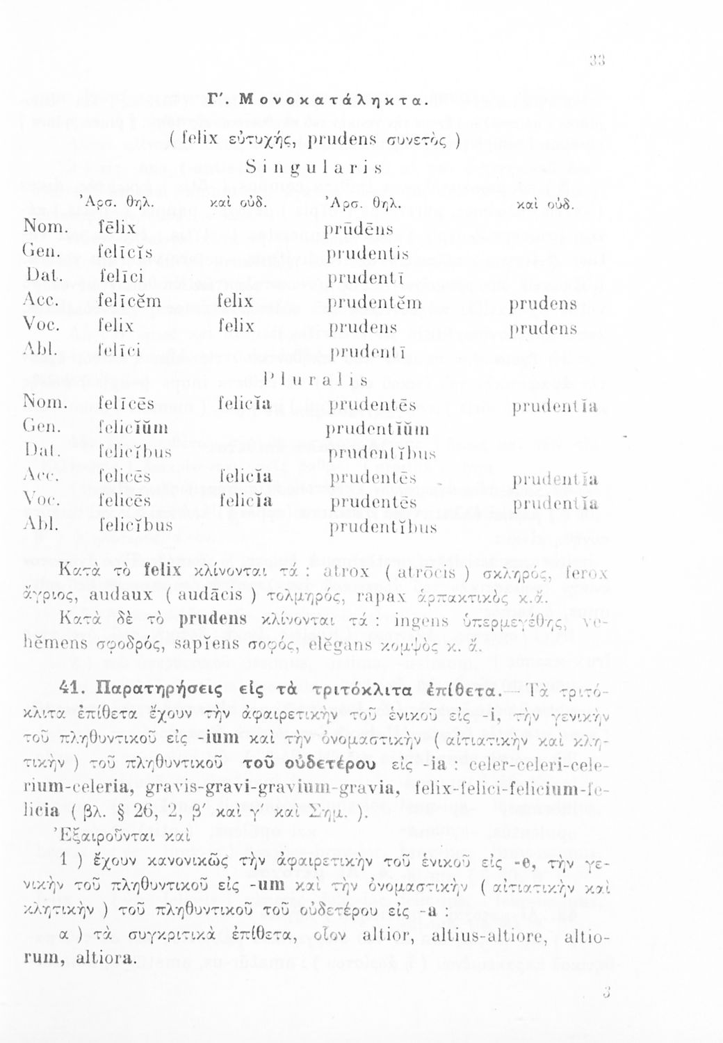 Βαθμίδα εκπαίδευσης: Δευτεροβάθμια Τάξη: Δ' Γυμνασίου / Ε' Γυμνασίου / ΣΤ' Γυμνασίου Μάθημα: Νέα Ελληνικά Γλώσσα: Απλή καθαρεύουσα Παρουσίαση περιεχομένου: Σχολικό εγχειρίδιο Λατινικών Δ΄, Ε΄ και ΣΤ΄ Γυμνασίου που περιλαμβάνει γραμματική και συντακτικό και είναι χωρισμένο σε φθογγολογικό, τυπολογικό και ετυμολογικό μέρος. Φέρει το σύμβολο της δικτατορίας. |