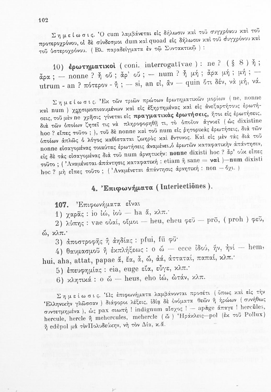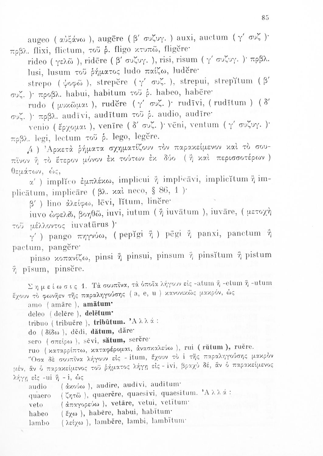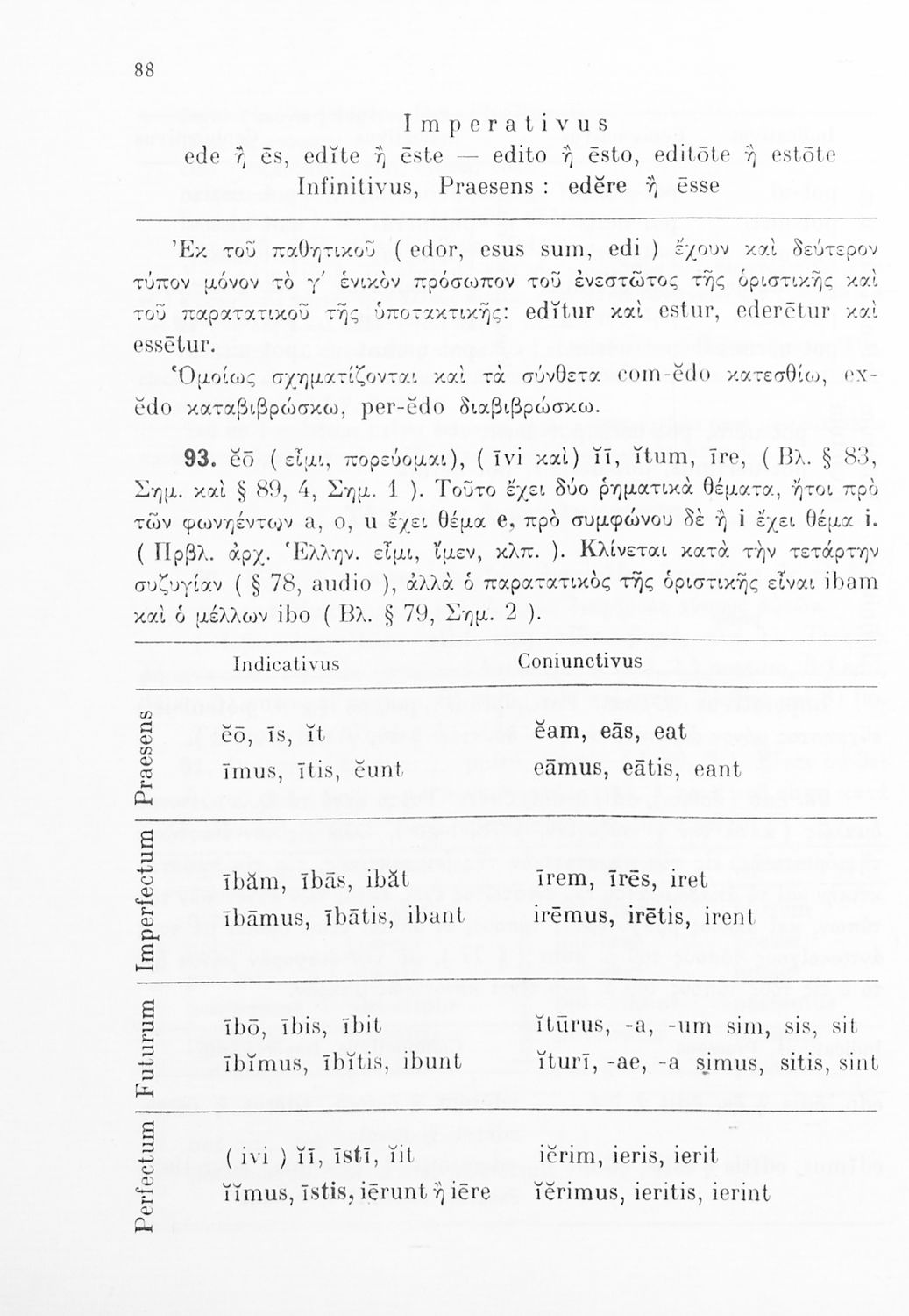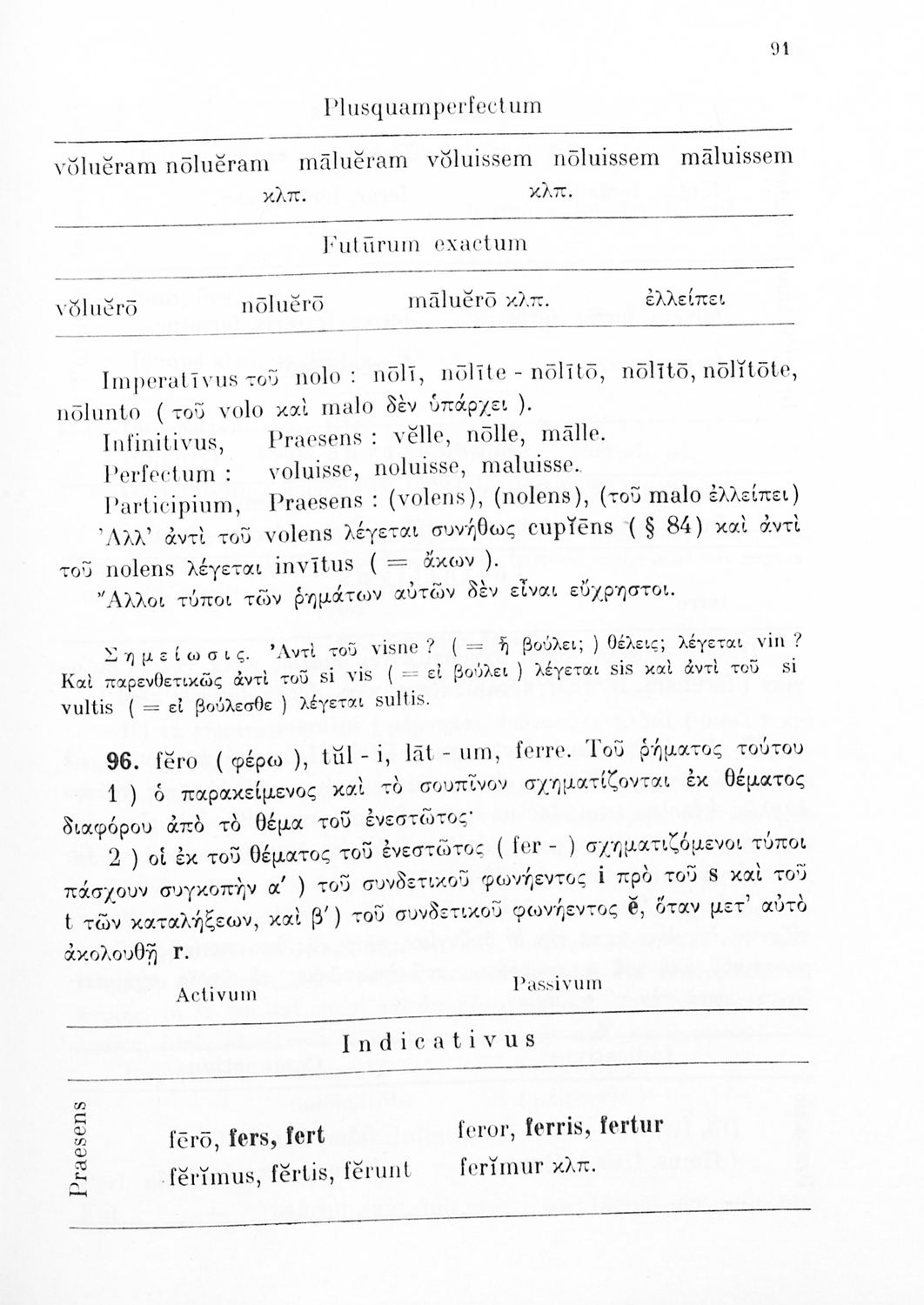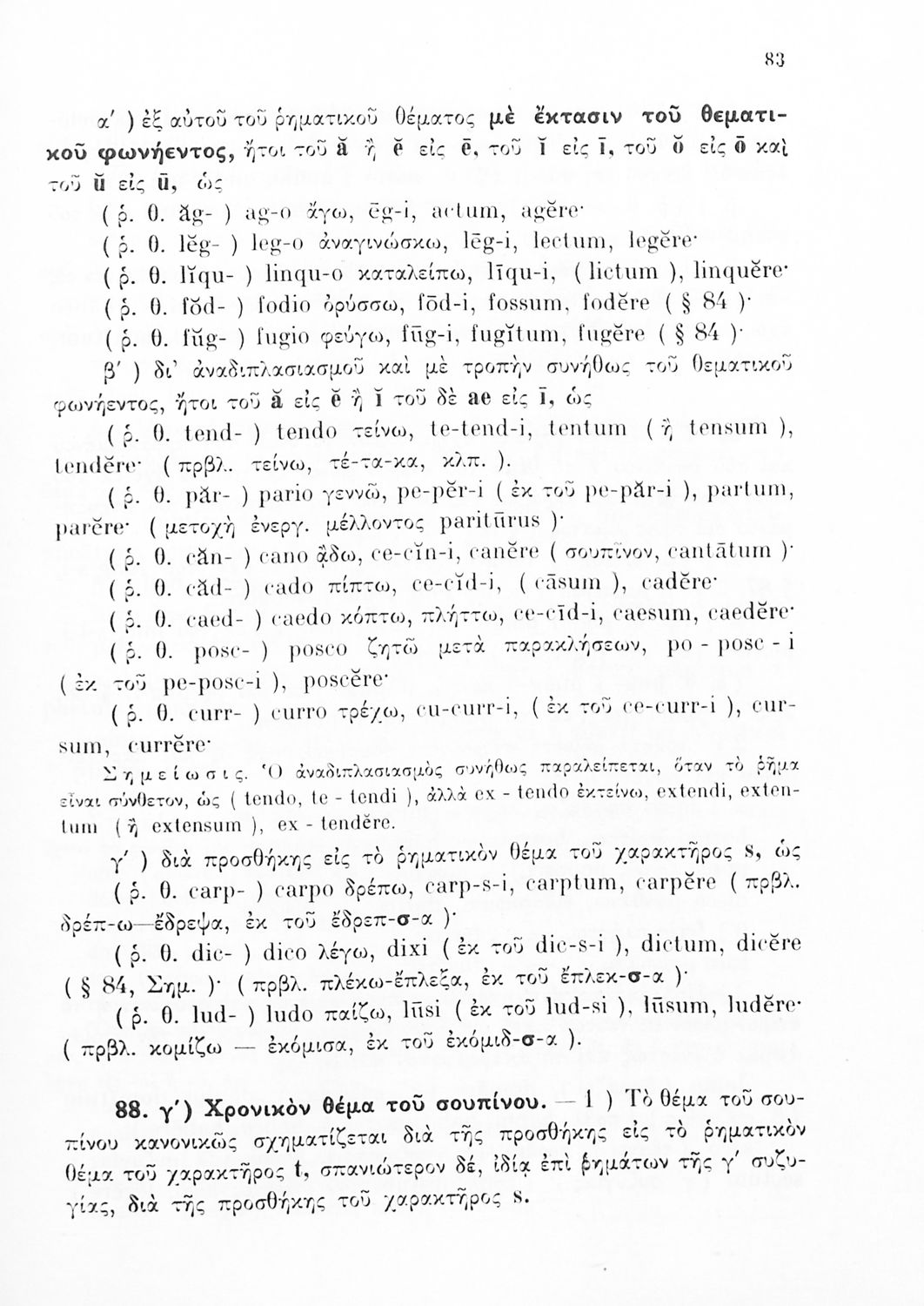 Σχολικό εγχειρίδιο Λατινικών Γυμνασίου που περιλαμβάνει γραμματική και συντακτικό και είναι χωρισμένο σε φθογγολογικό, τυπολογικό και ετυμολογικό μέρος.
