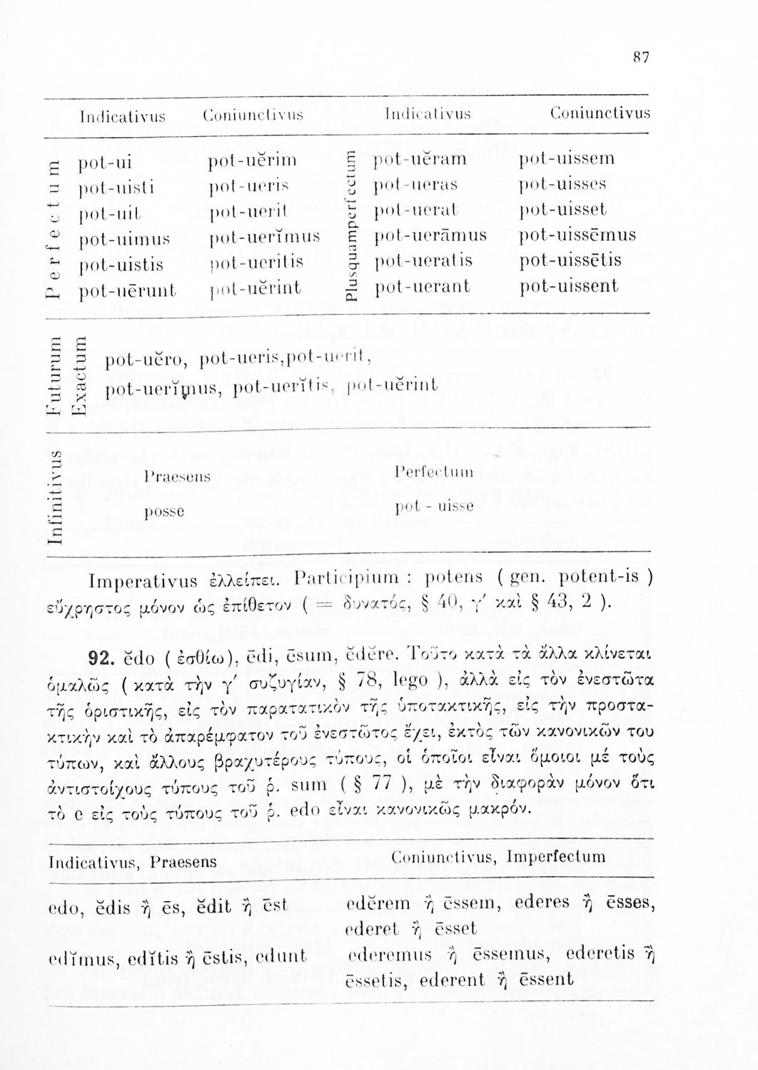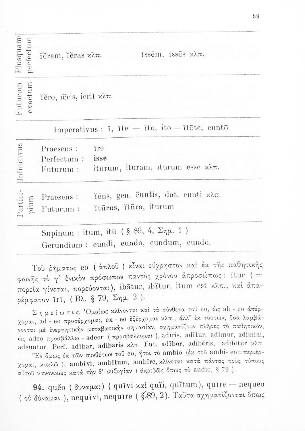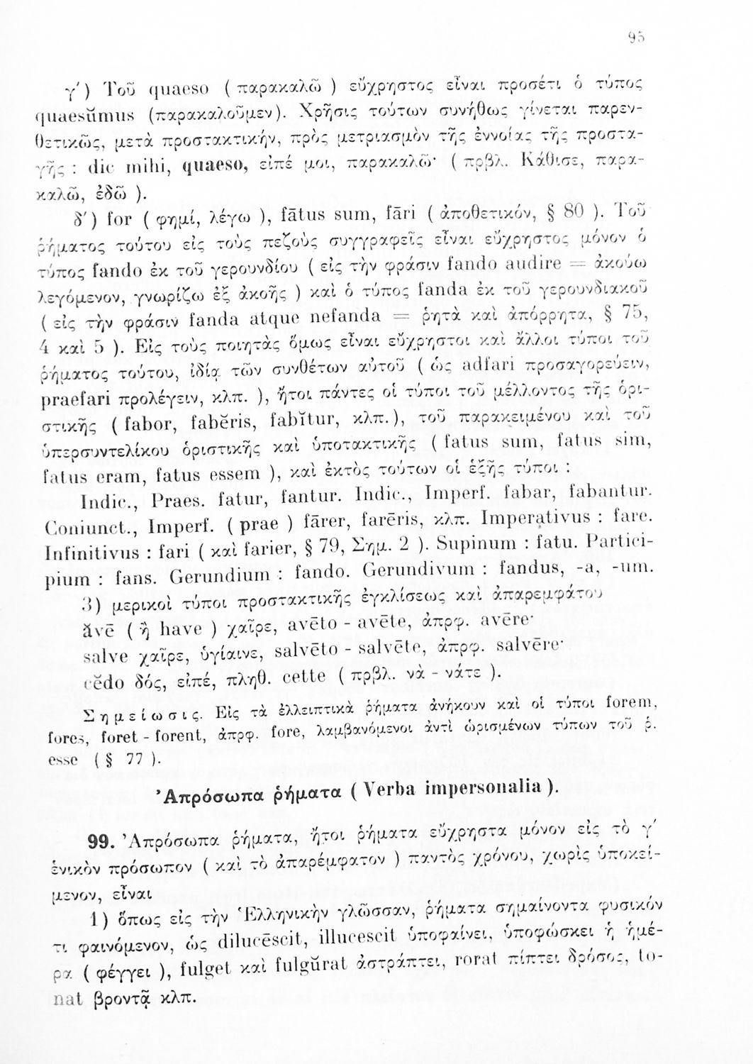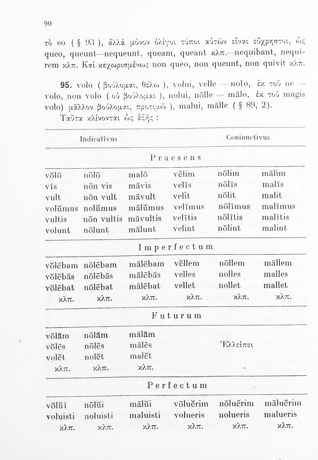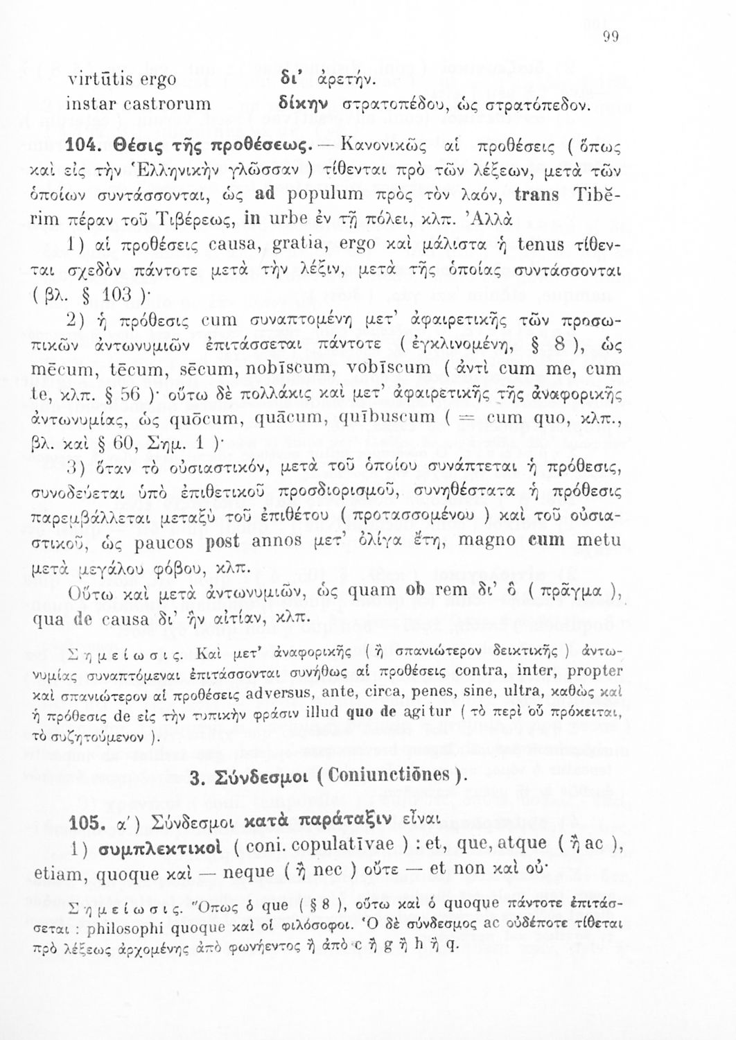 Σχολικό εγχειρίδιο Λατινικών Γυμνασίου που περιλαμβάνει γραμματική και συντακτικό και είναι χωρισμένο σε φθογγολογικό, τυπολογικό και ετυμολογικό μέρος.