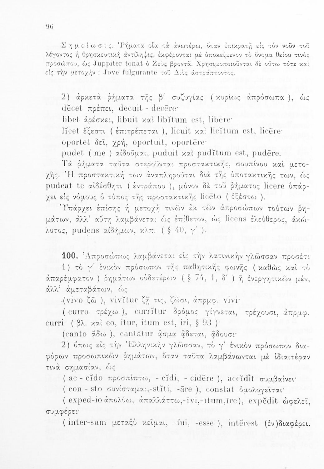 Σχολικό εγχειρίδιο Λατινικών Α΄, Β΄, Γ' Γυμνασίου που περιλαμβάνει γραμματική και συντακτικό και είναι χωρισμένο σε φθογγολογικό, τυπολογικό και ετυμολογικό μέρος.