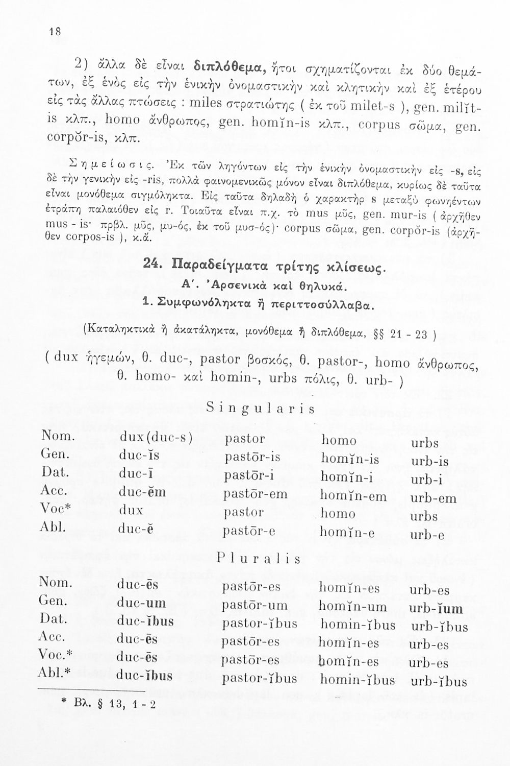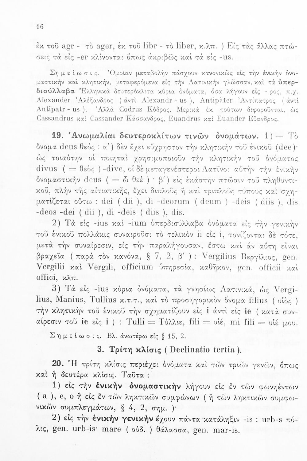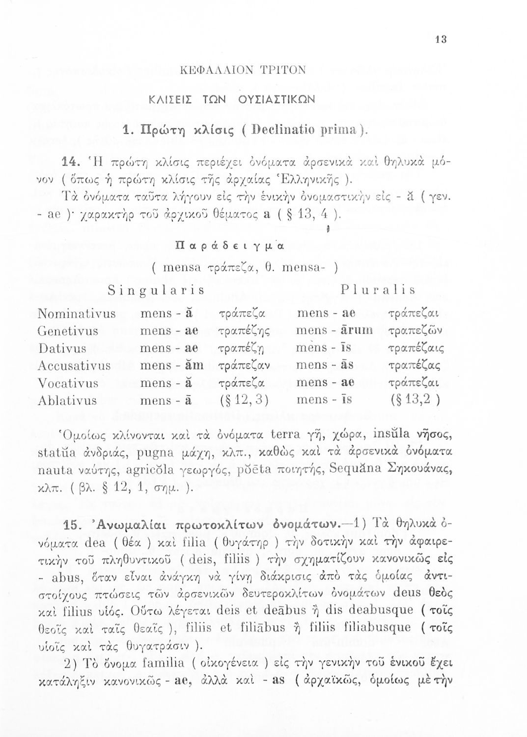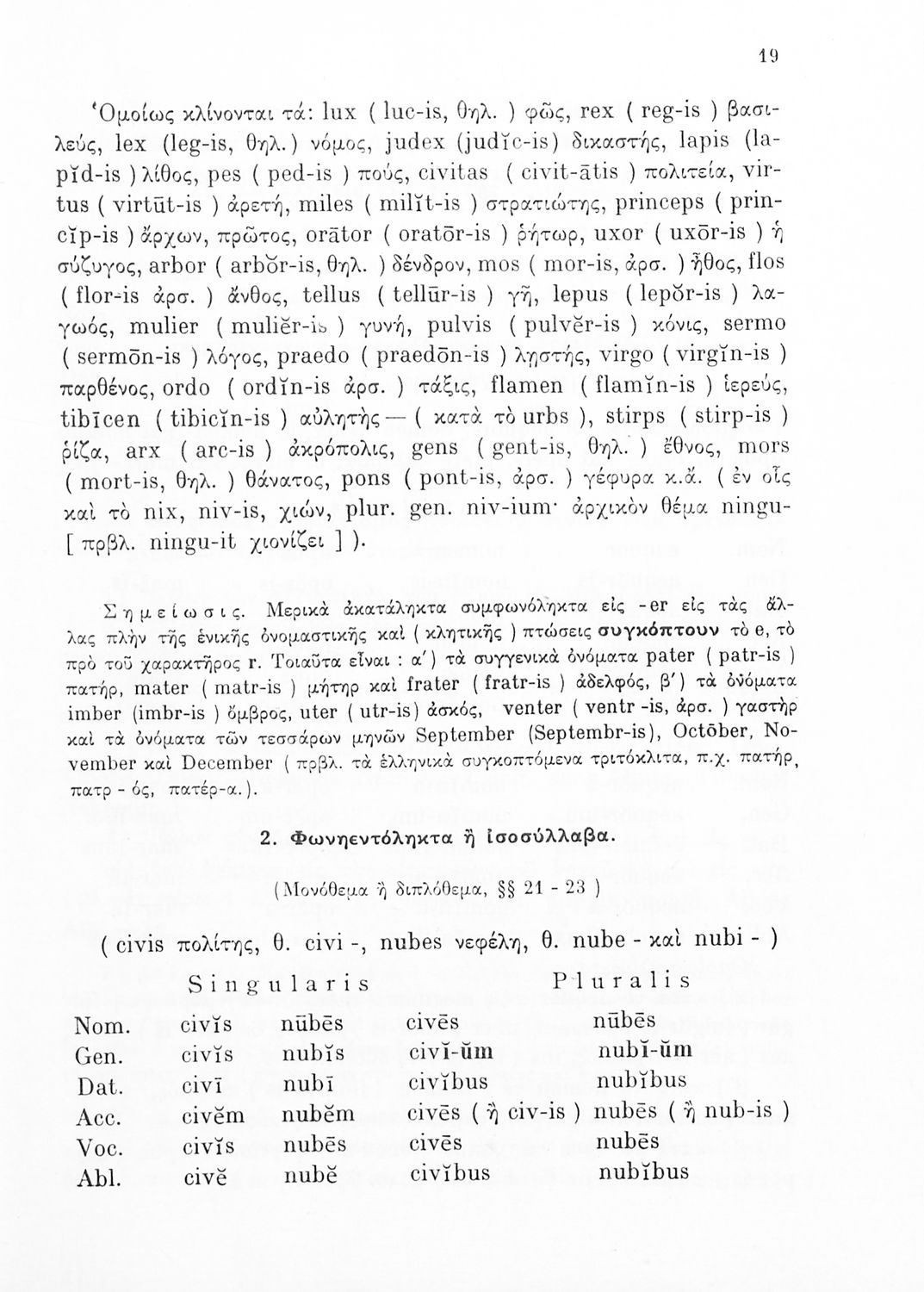 Βαθμίδα εκπαίδευσης: Δευτεροβάθμια Τάξη: Δ' Γυμνασίου / Ε' Γυμνασίου / ΣΤ' Γυμνασίου Μάθημα: Νέα Ελληνικά Γλώσσα: Απλή καθαρεύουσα Παρουσίαση περιεχομένου: Σχολικό εγχειρίδιο Λατινικών Δ΄, Ε΄ και ΣΤ΄ Γυμνασίου που περιλαμβάνει γραμματική και συντακτικό και είναι χωρισμένο σε φθογγολογικό, τυπολογικό και ετυμολογικό μέρος. Φέρει το σύμβολο της δικτατορίας. |