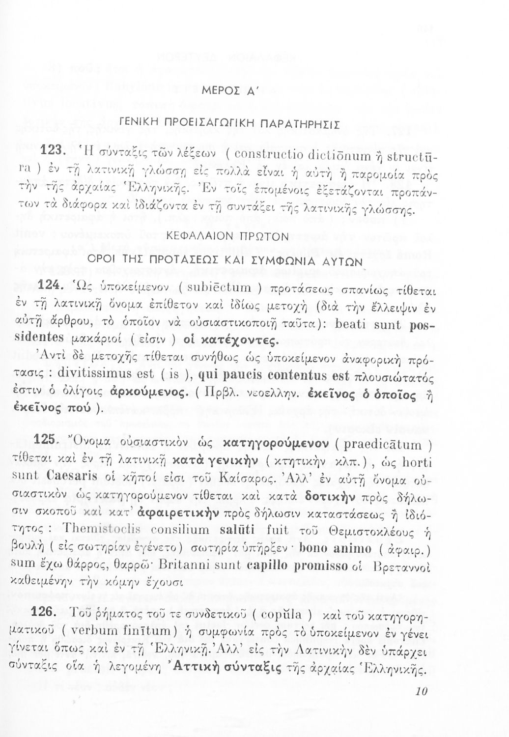 Σχολικό εγχειρίδιο Λατινικών Α΄, Β΄, Γ' Γυμνασίου που περιλαμβάνει γραμματική και συντακτικό και είναι χωρισμένο σε φθογγολογικό, τυπολογικό και ετυμολογικό μέρος.