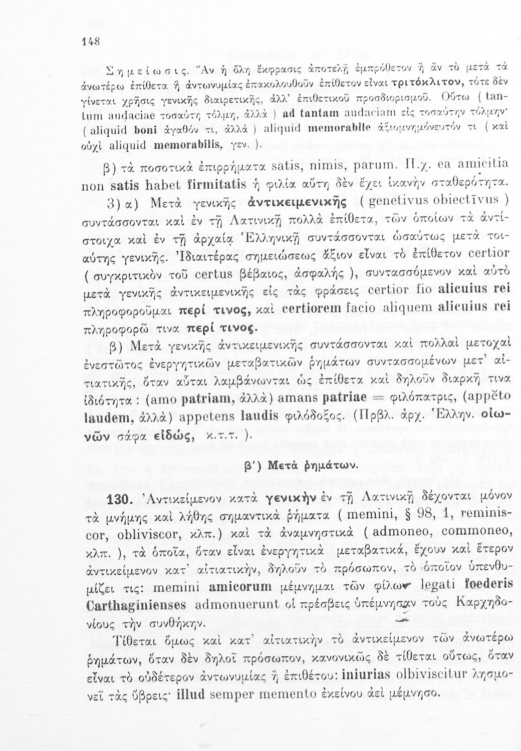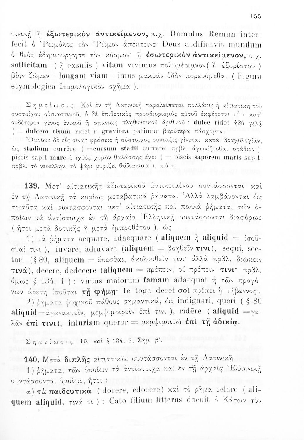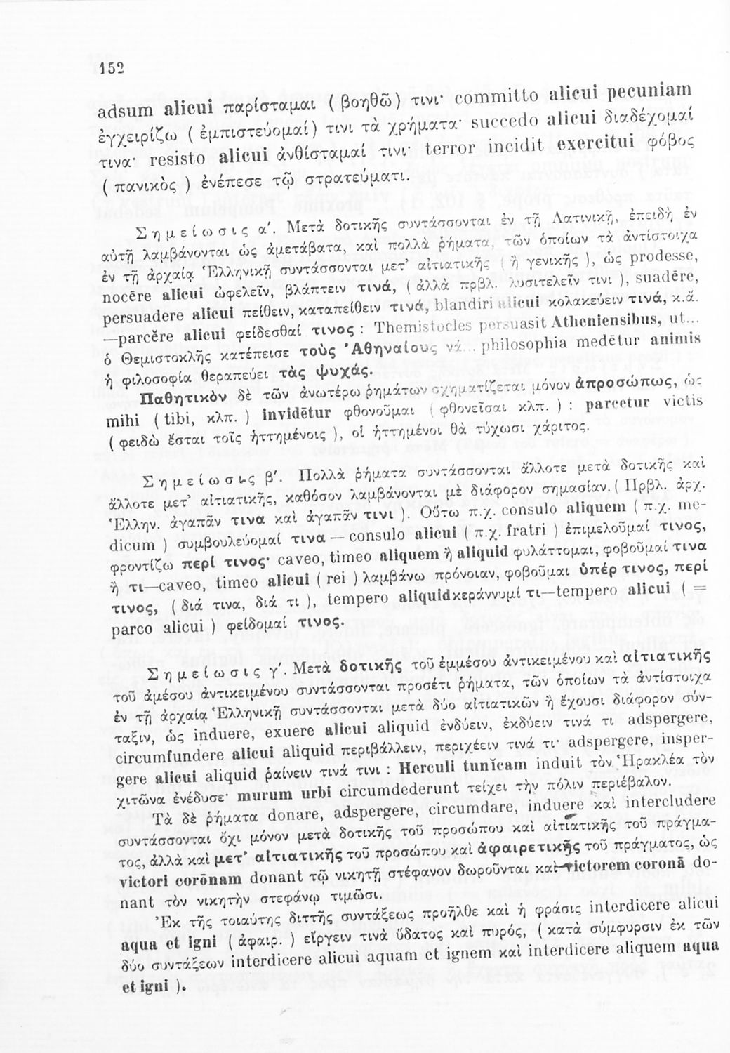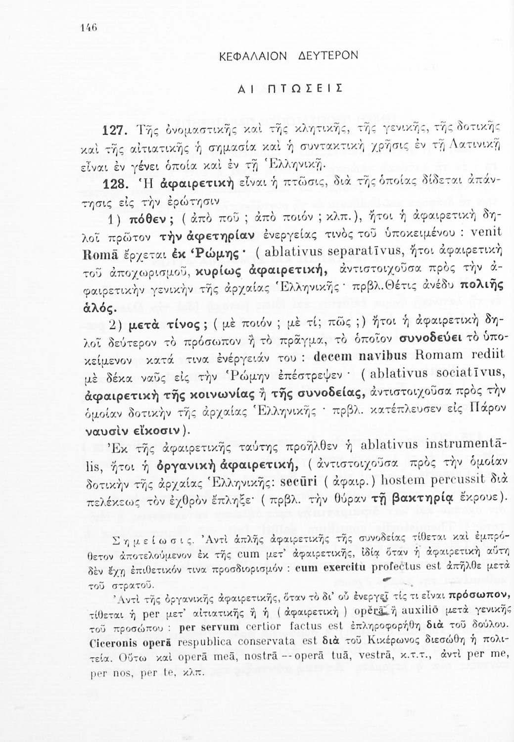 Σχολικό εγχειρίδιο Λατινικών Γυμνασίου που περιλαμβάνει γραμματική και συντακτικό και είναι χωρισμένο σε φθογγολογικό, τυπολογικό και ετυμολογικό μέρος.