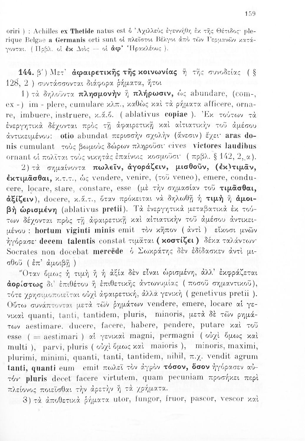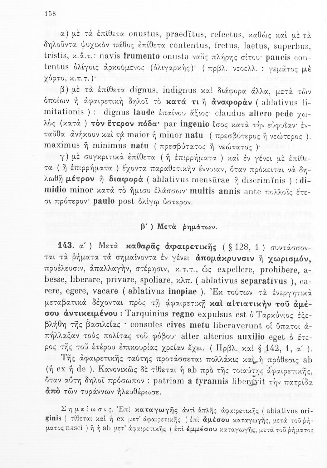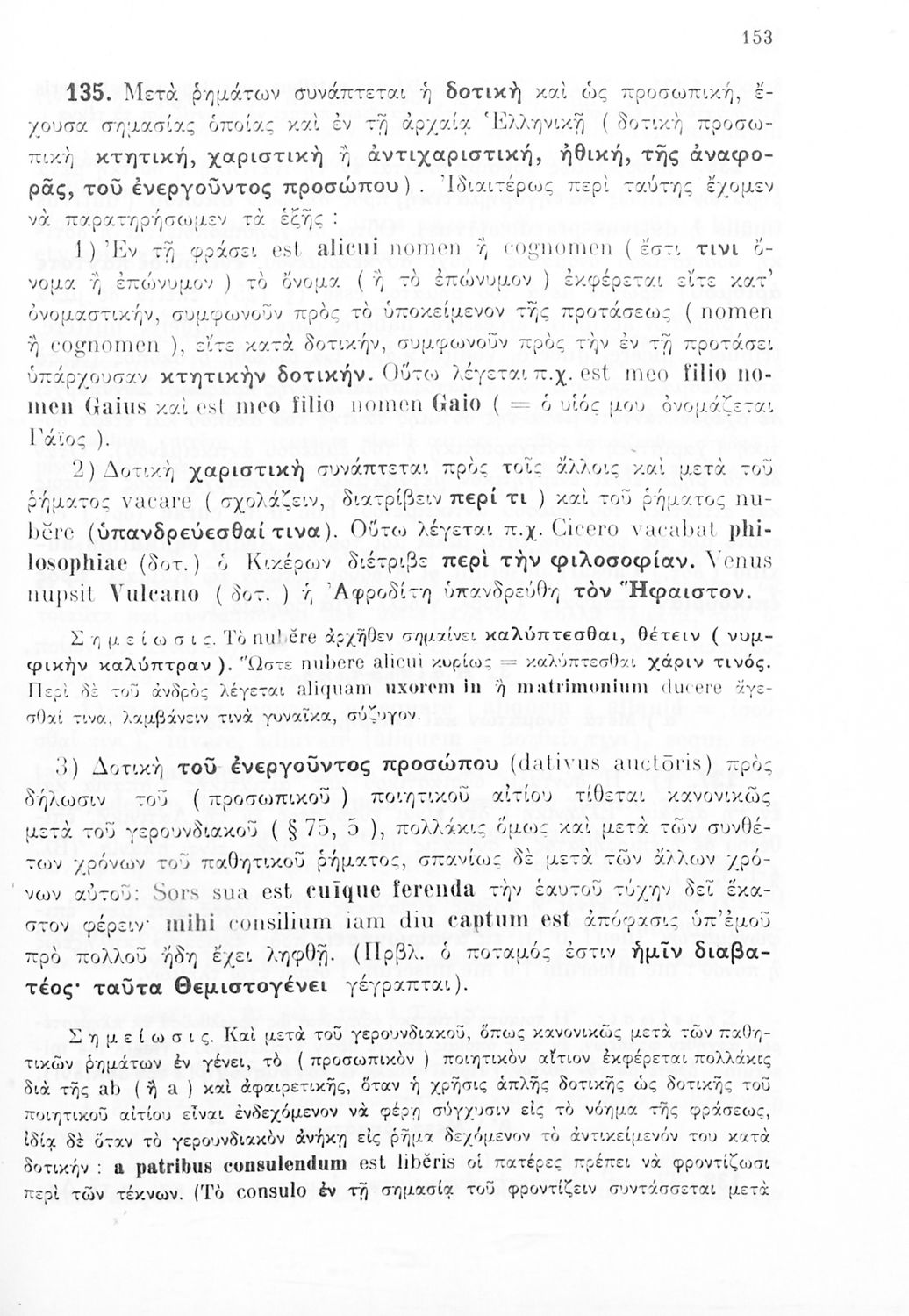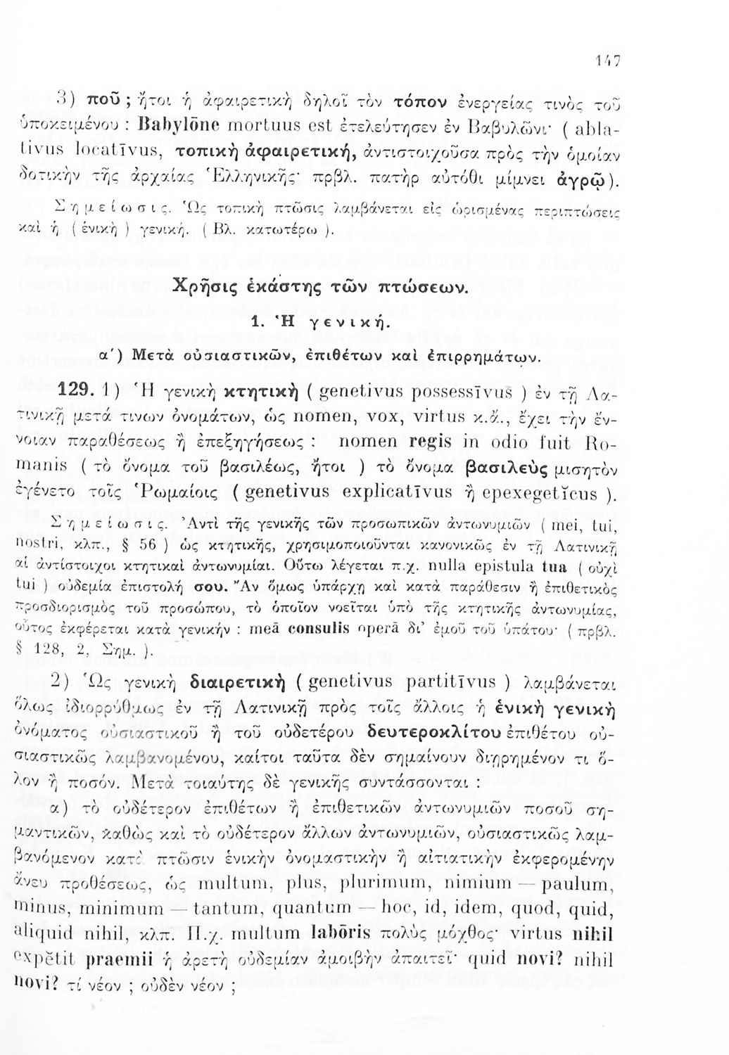 Σχολικό εγχειρίδιο Λατινικών Γυμνασίου που περιλαμβάνει γραμματική και συντακτικό και είναι χωρισμένο σε φθογγολογικό, τυπολογικό και ετυμολογικό μέρος.