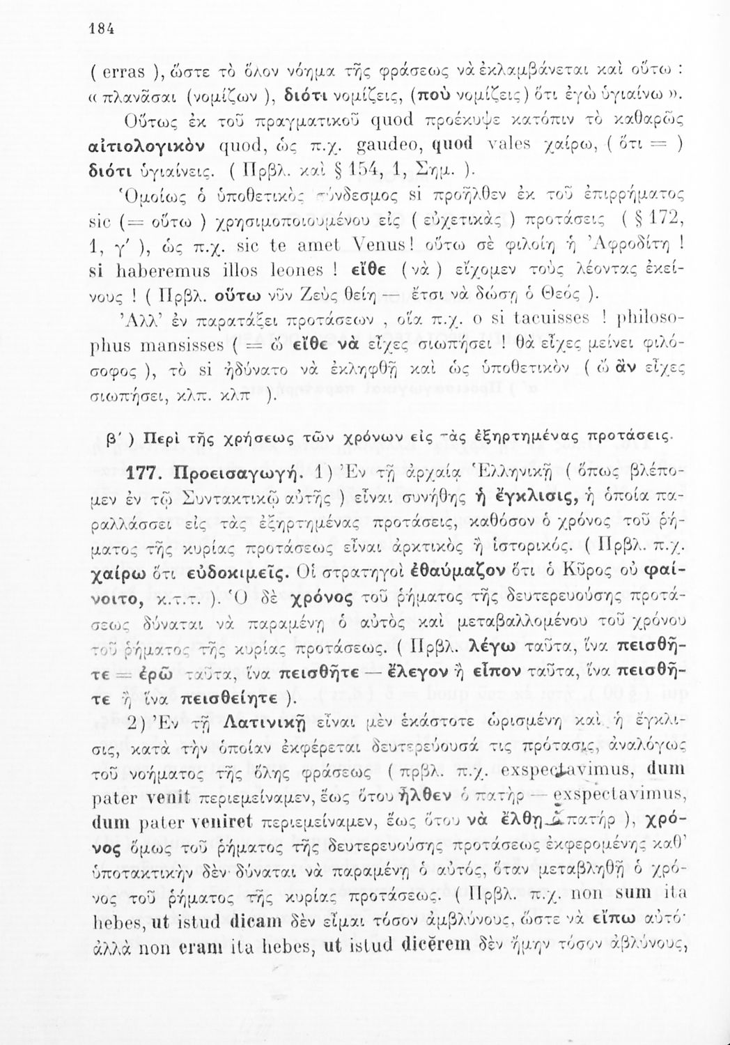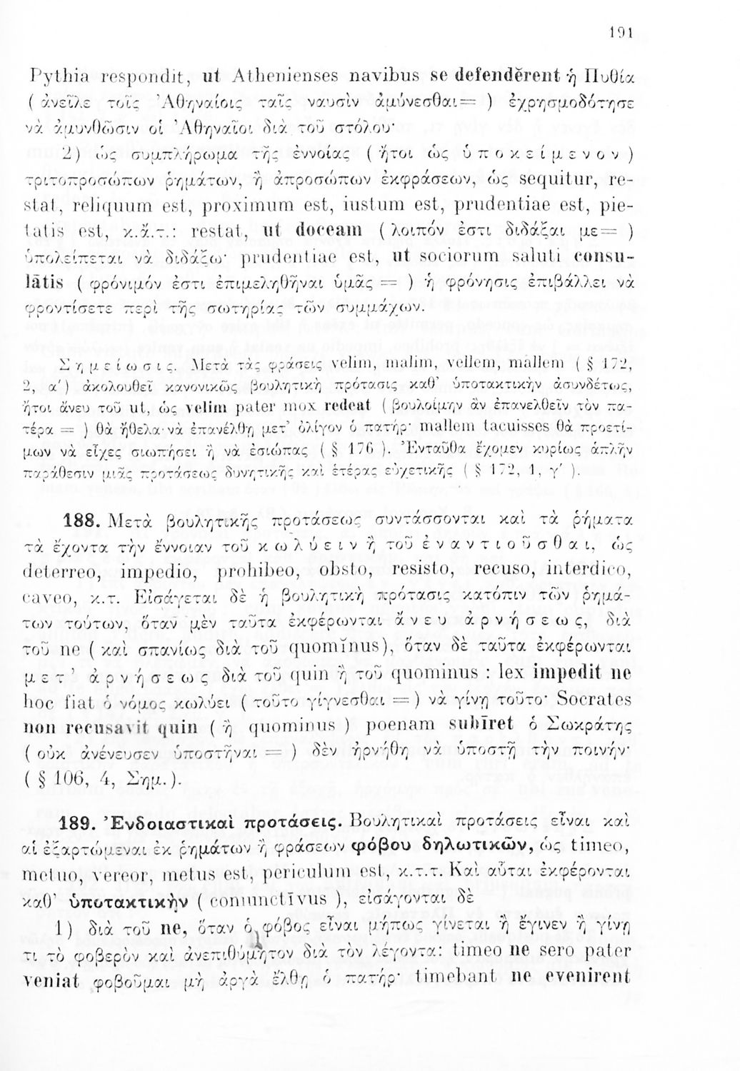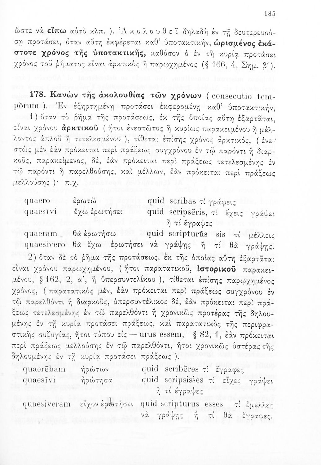 Σχολικό εγχειρίδιο Λατινικών Γυμνασίου που περιλαμβάνει γραμματική και συντακτικό και είναι χωρισμένο σε φθογγολογικό, τυπολογικό και ετυμολογικό μέρος.