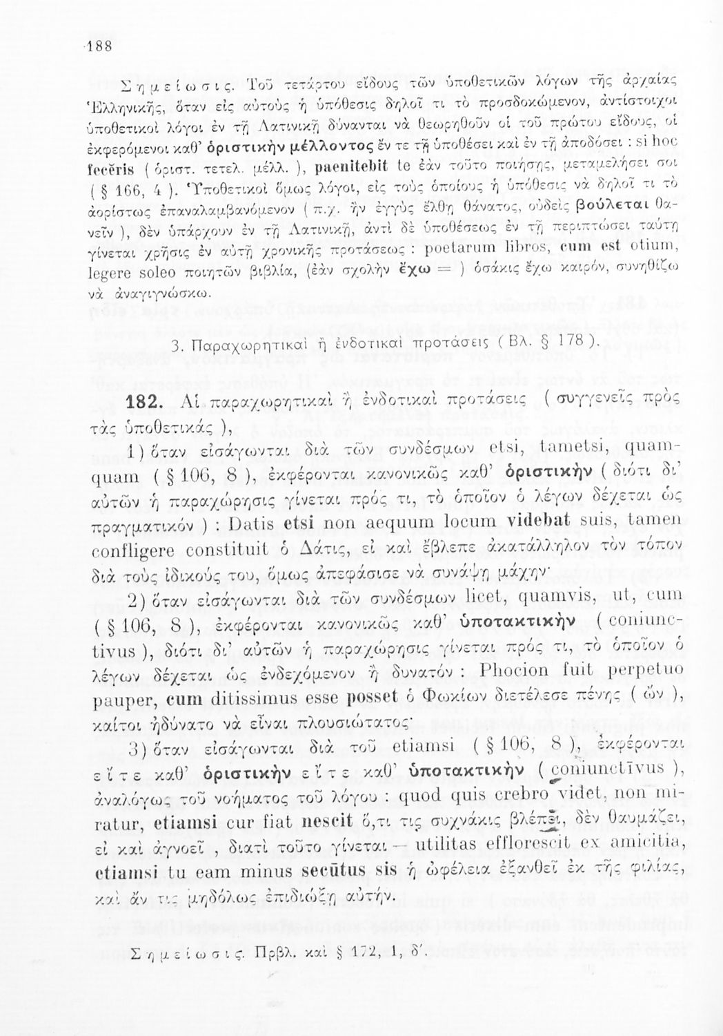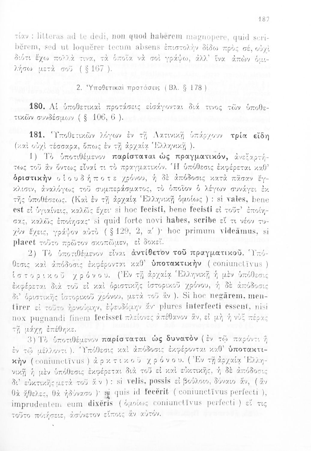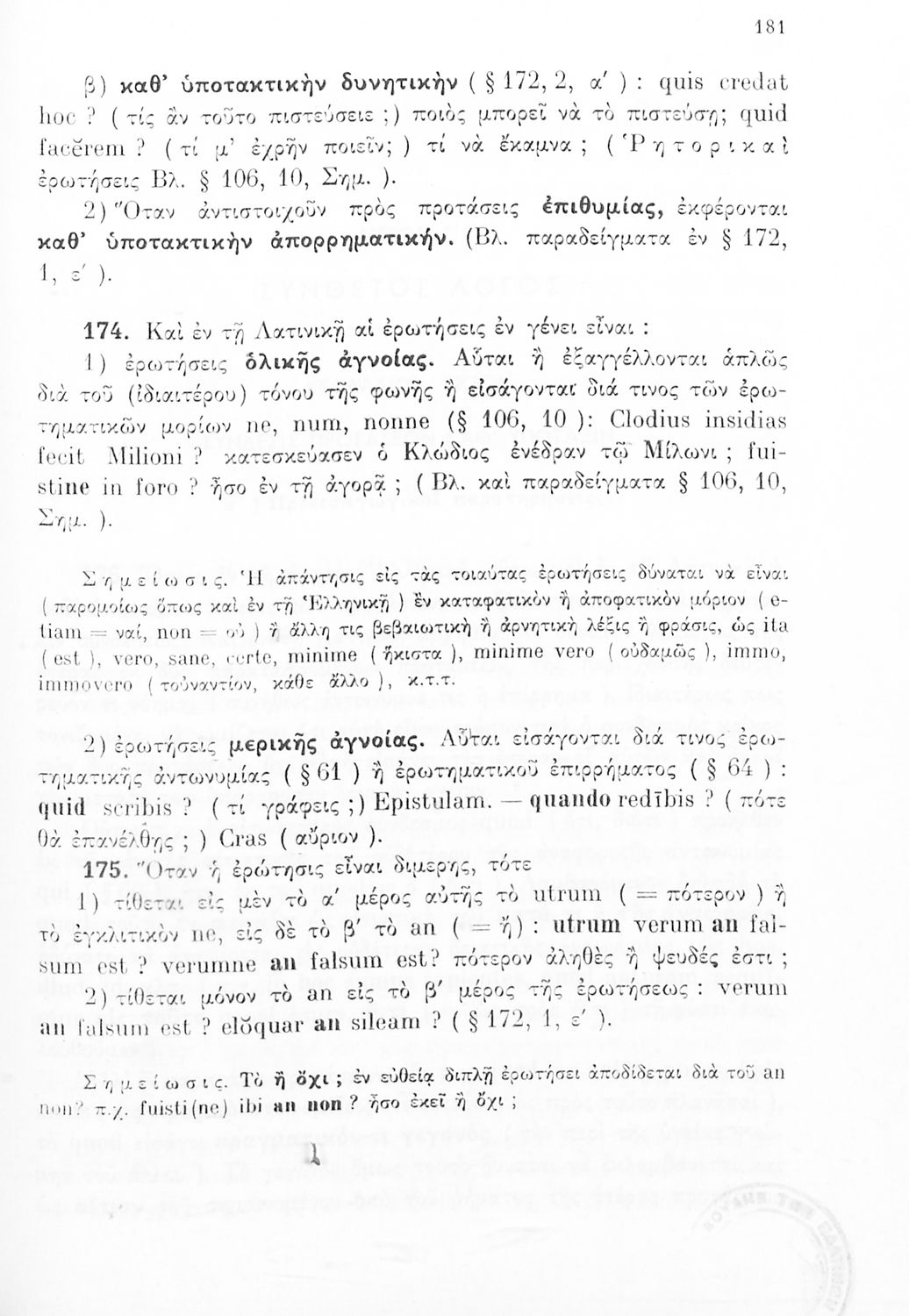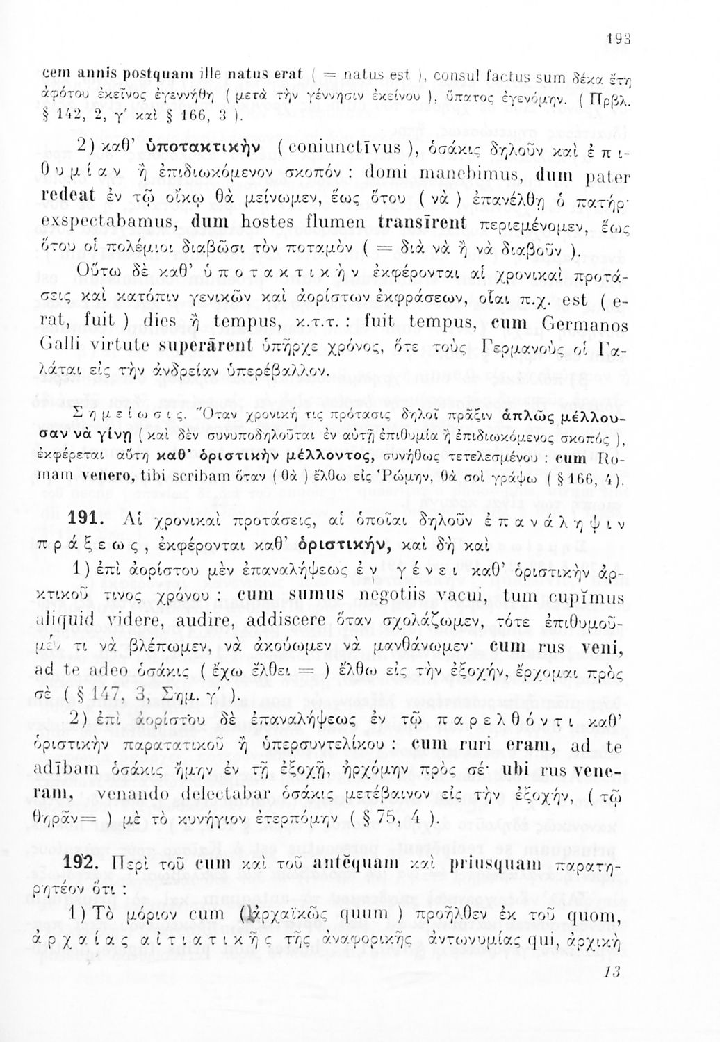 Σχολικό εγχειρίδιο Λατινικών Γυμνασίου που περιλαμβάνει γραμματική και συντακτικό και είναι χωρισμένο σε φθογγολογικό, τυπολογικό και ετυμολογικό μέρος.