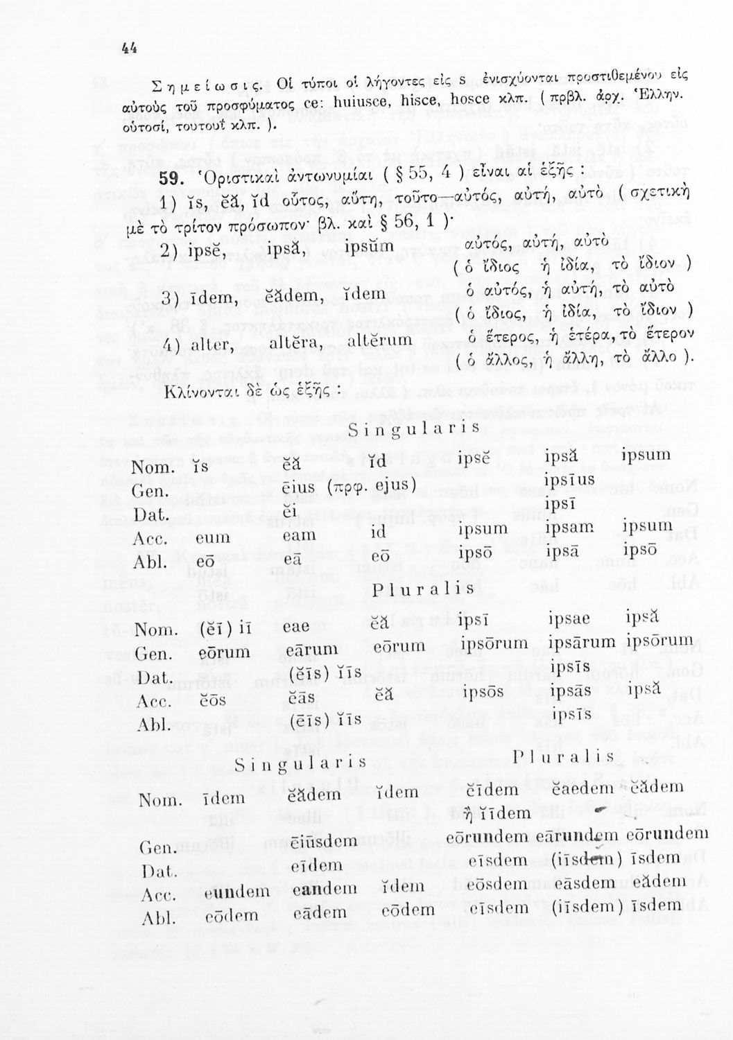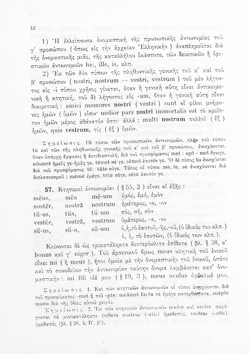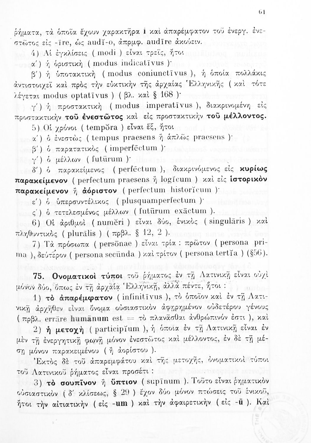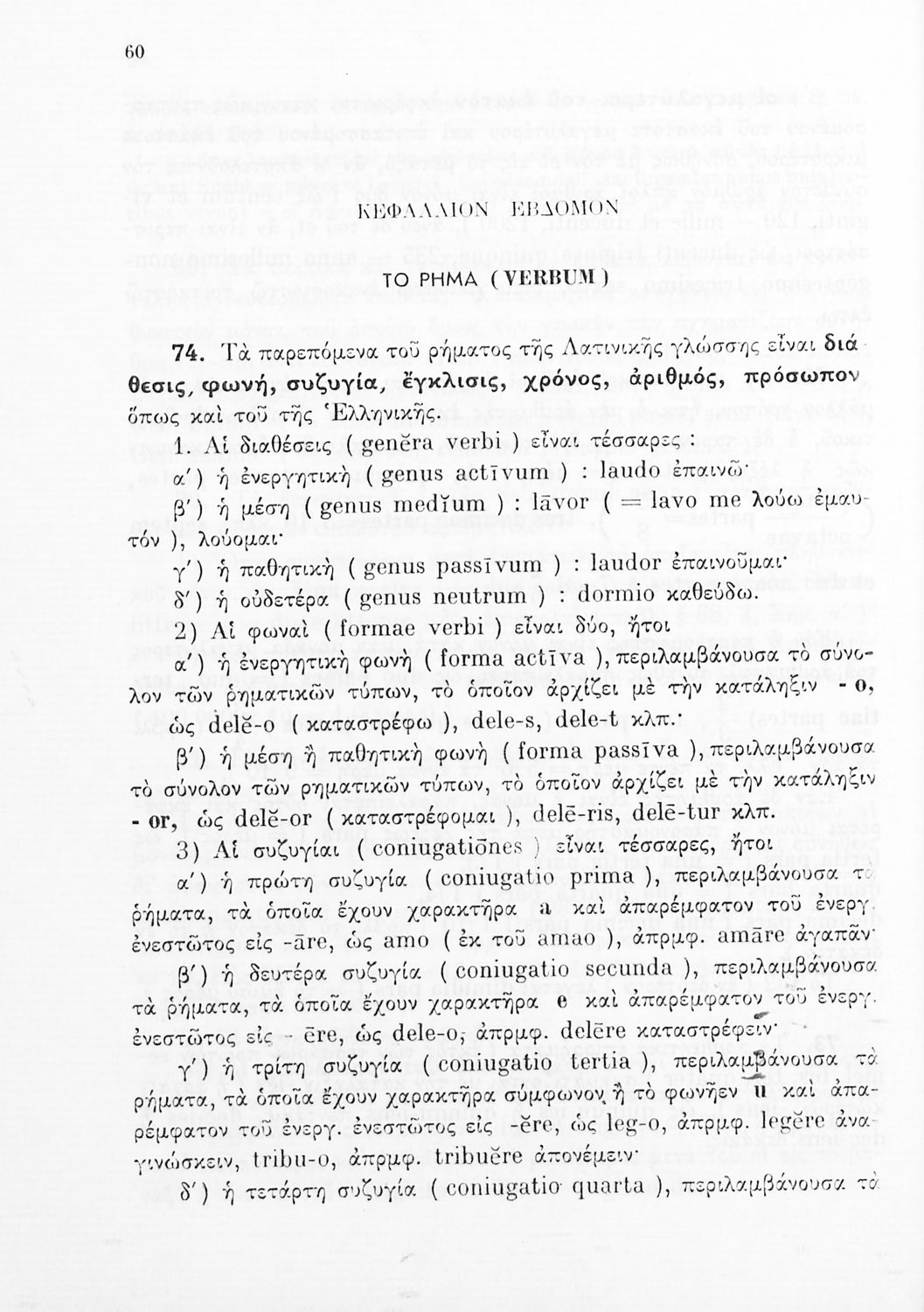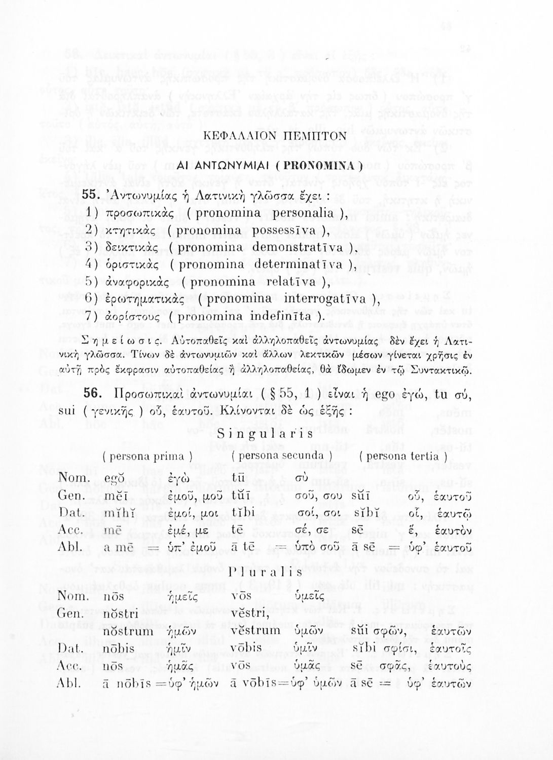 Σχολικό εγχειρίδιο Λατινικών Γυμνασίου που περιλαμβάνει γραμματική και συντακτικό και είναι χωρισμένο σε φθογγολογικό, τυπολογικό και ετυμολογικό μέρος.