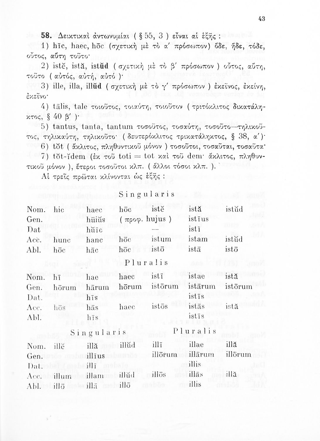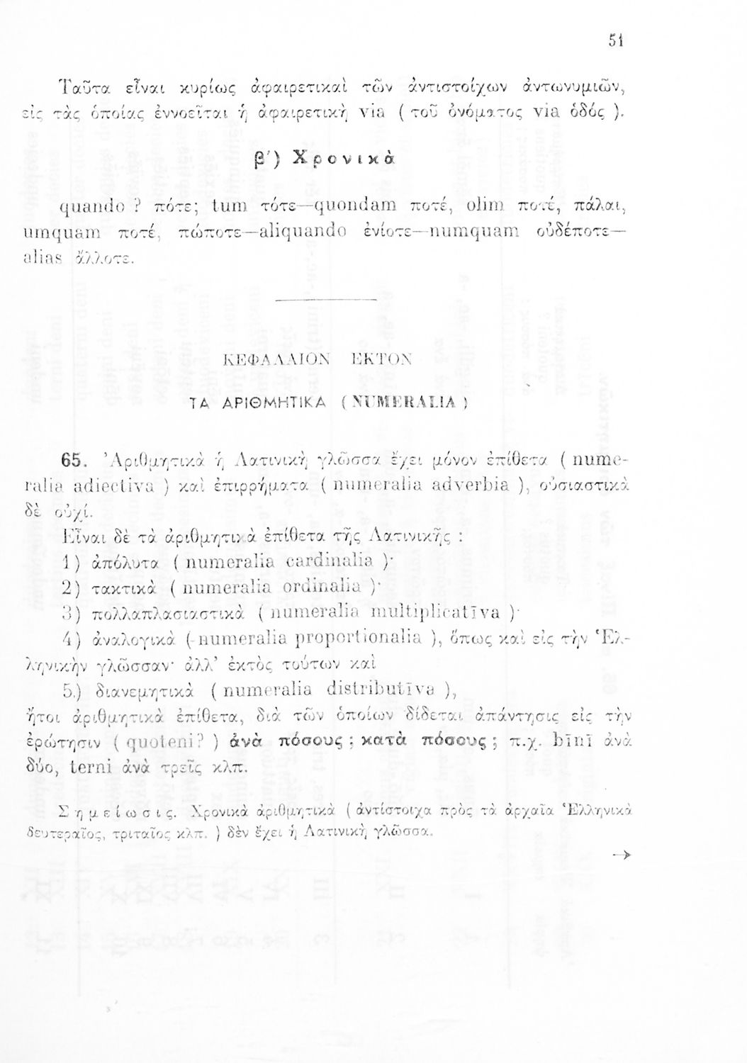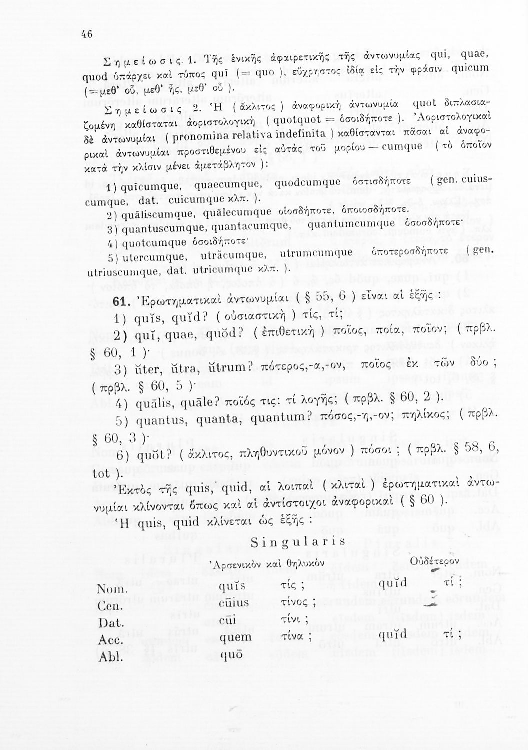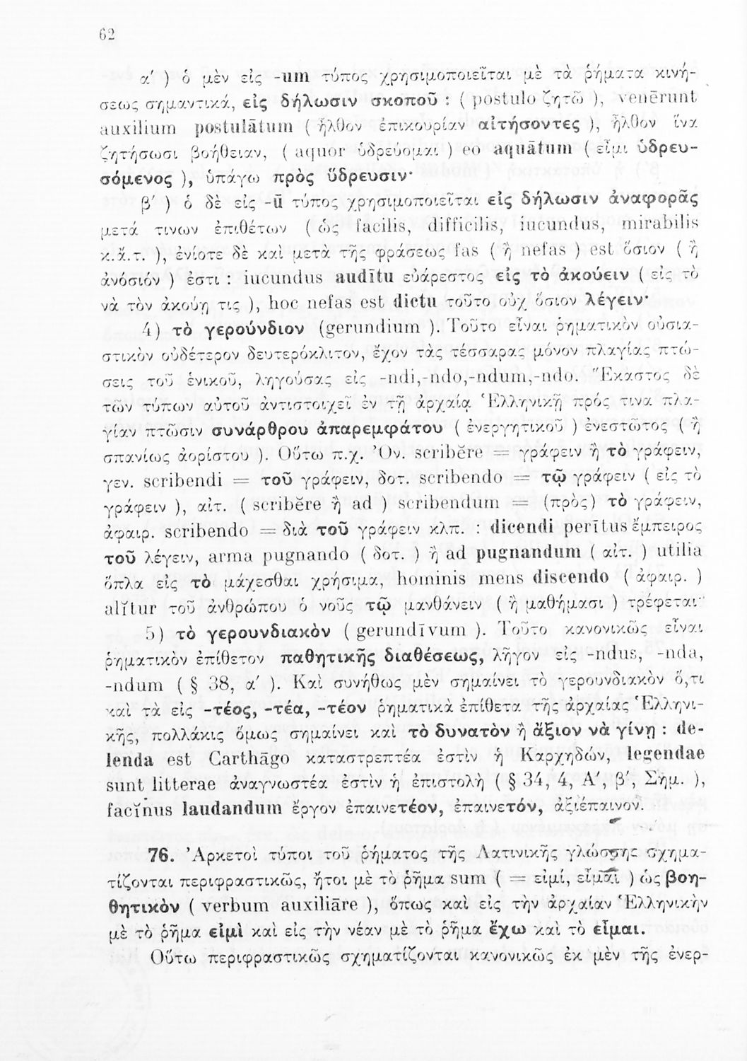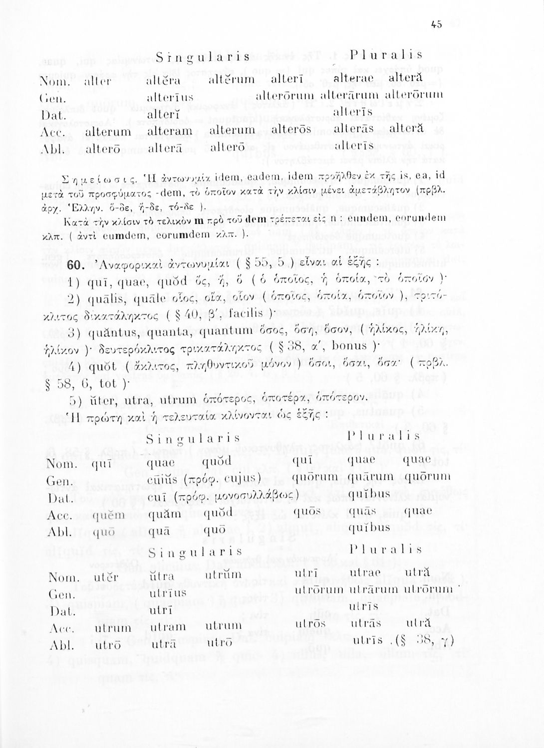 Σχολικό εγχειρίδιο Λατινικών Γυμνασίου που περιλαμβάνει γραμματική και συντακτικό και είναι χωρισμένο σε φθογγολογικό, τυπολογικό και ετυμολογικό μέρος.
