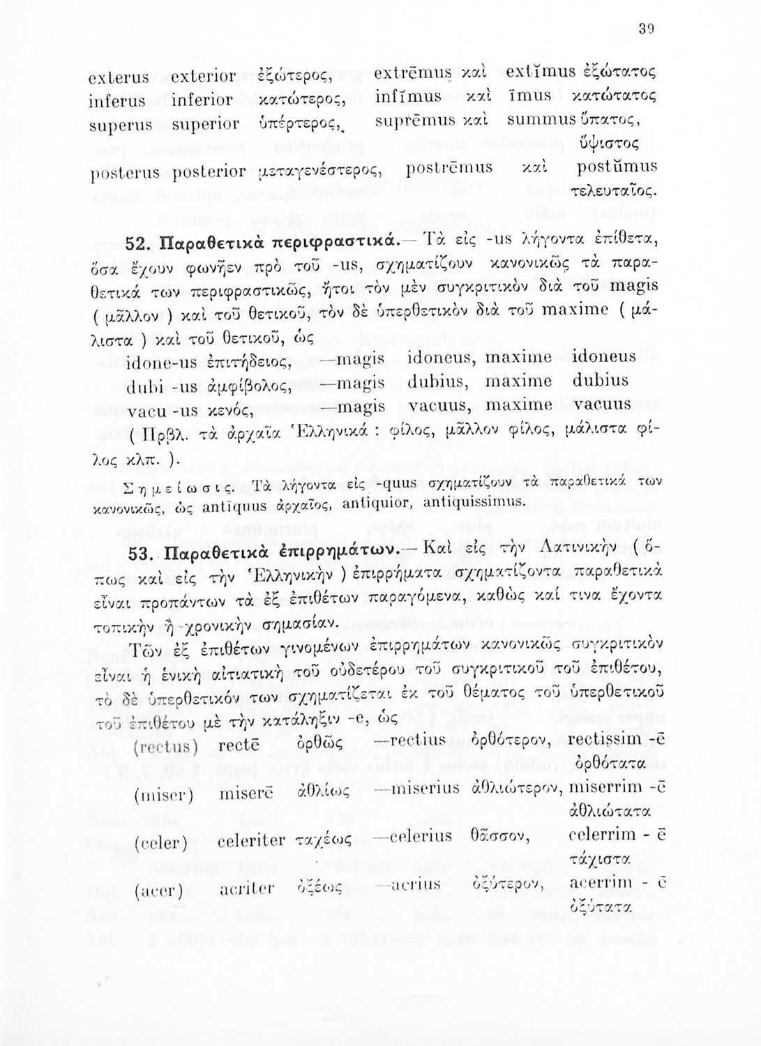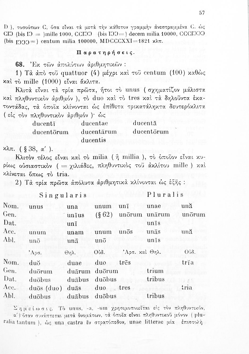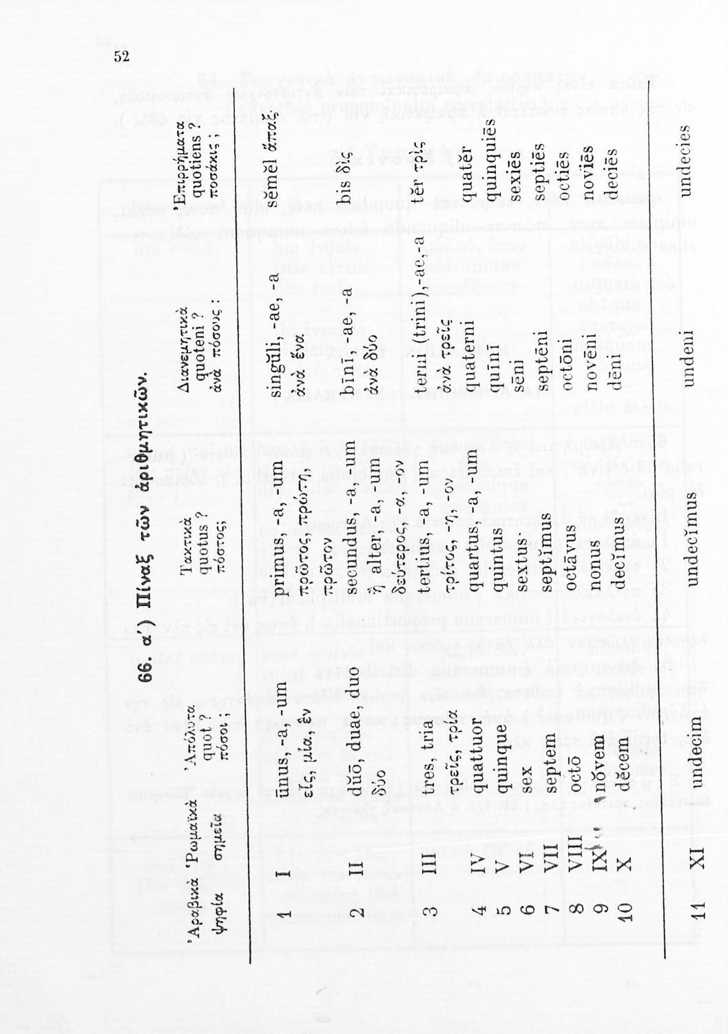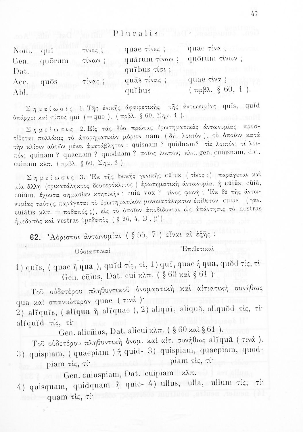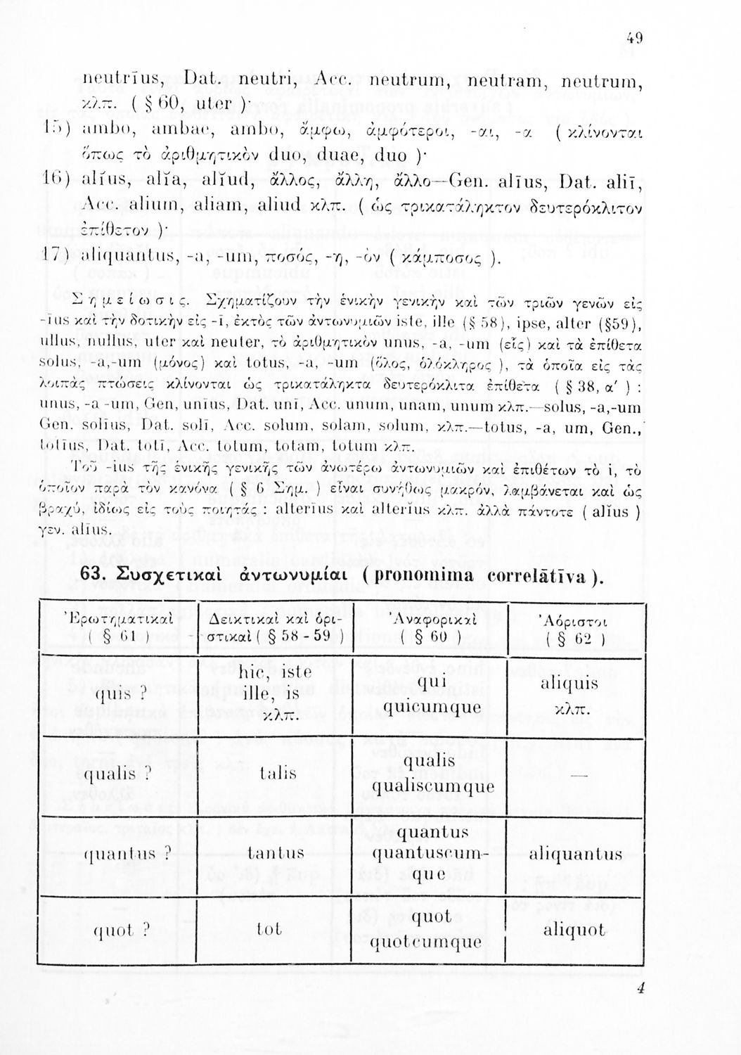 Σχολικό εγχειρίδιο Λατινικών Γυμνασίου που περιλαμβάνει γραμματική και συντακτικό και είναι χωρισμένο σε φθογγολογικό, τυπολογικό και ετυμολογικό μέρος.
