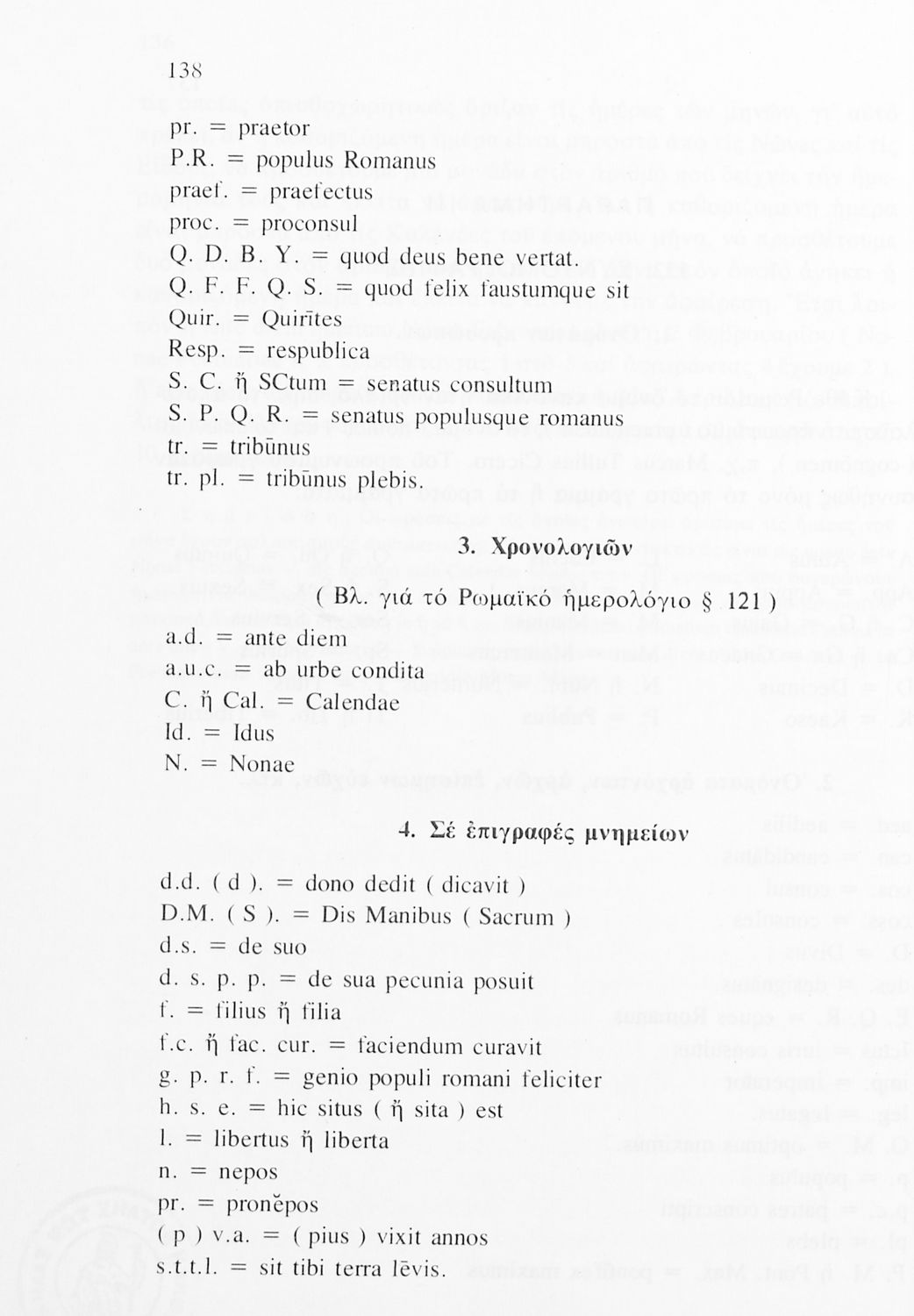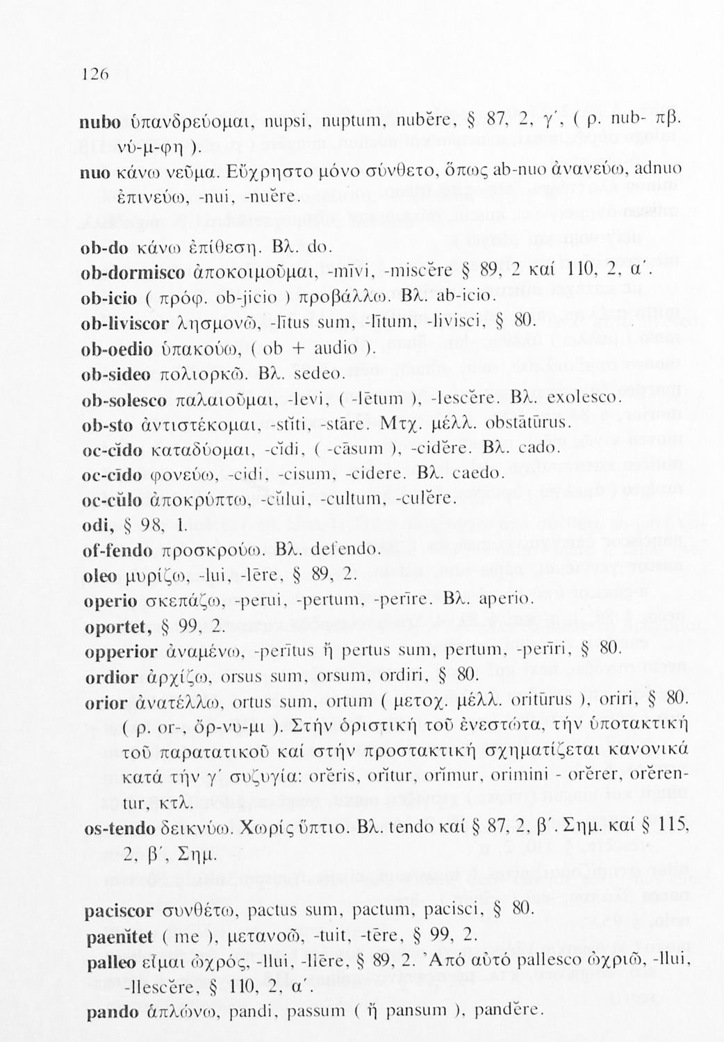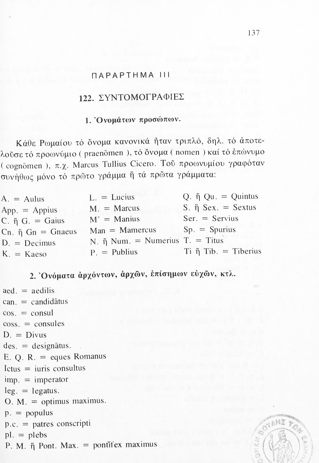 Σχολικό εγχειρίδιο Λατινικών Α΄, Β΄ και Γ΄ Λυκείου που περιλαμβάνει γραμματική και συντακτικό και είναι χωρισμένο σε φθογγολογικό, τυπολογικό και ετυμολογικό μέρος.
