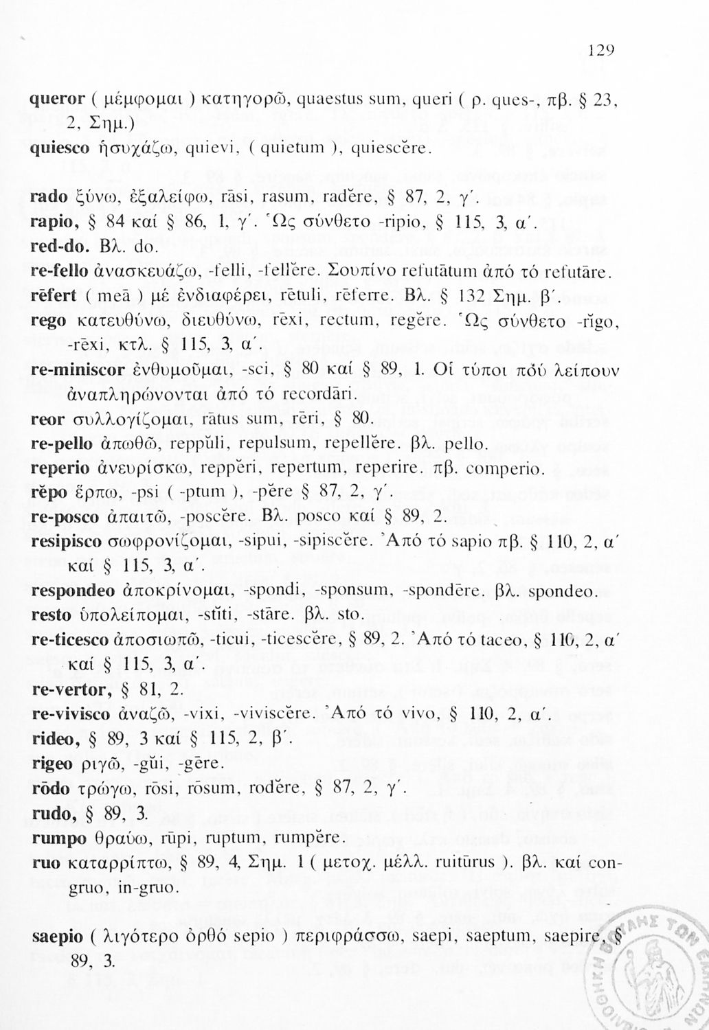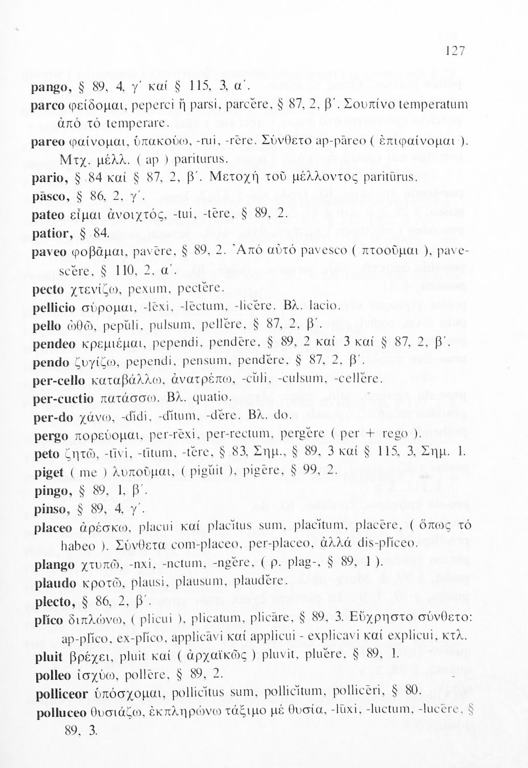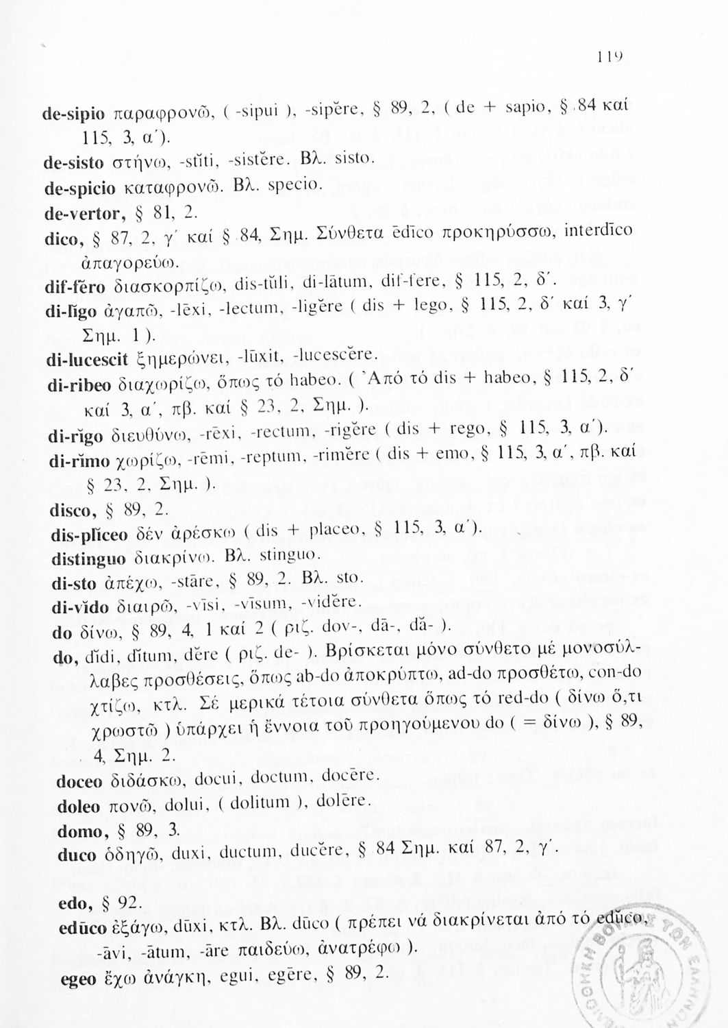 Σχολικό εγχειρίδιο Λατινικών Α΄, Β΄ και Γ΄ Λυκείου που περιλαμβάνει γραμματική και συντακτικό και είναι χωρισμένο σε φθογγολογικό, τυπολογικό και ετυμολογικό μέρος.