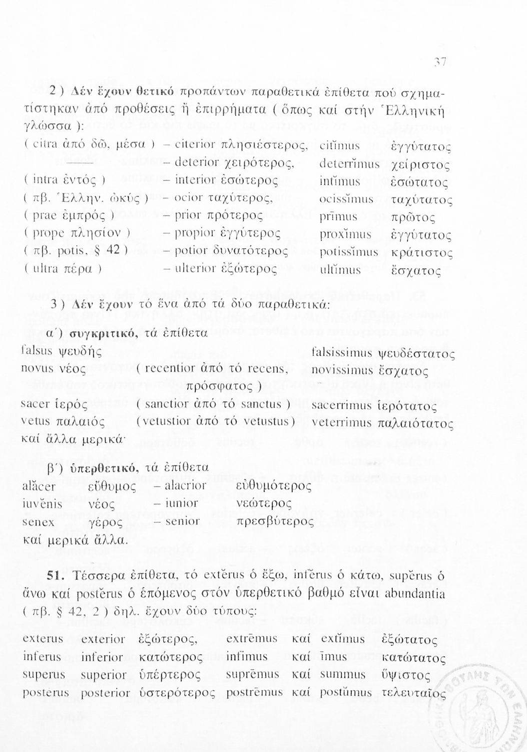 Σχολικό εγχειρίδιο Λατινικών Α΄, Β΄ και Γ΄ Λυκείου που περιλαμβάνει γραμματική και συντακτικό και είναι χωρισμένο σε φθογγολογικό, τυπολογικό και ετυμολογικό μέρος.