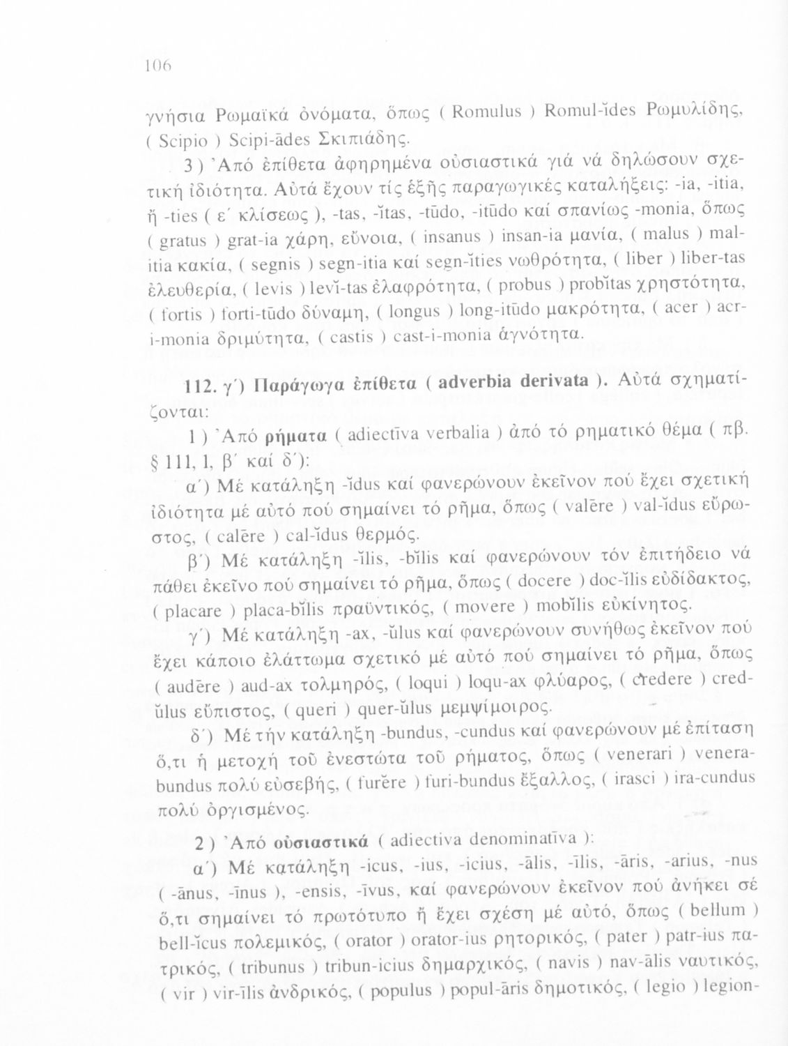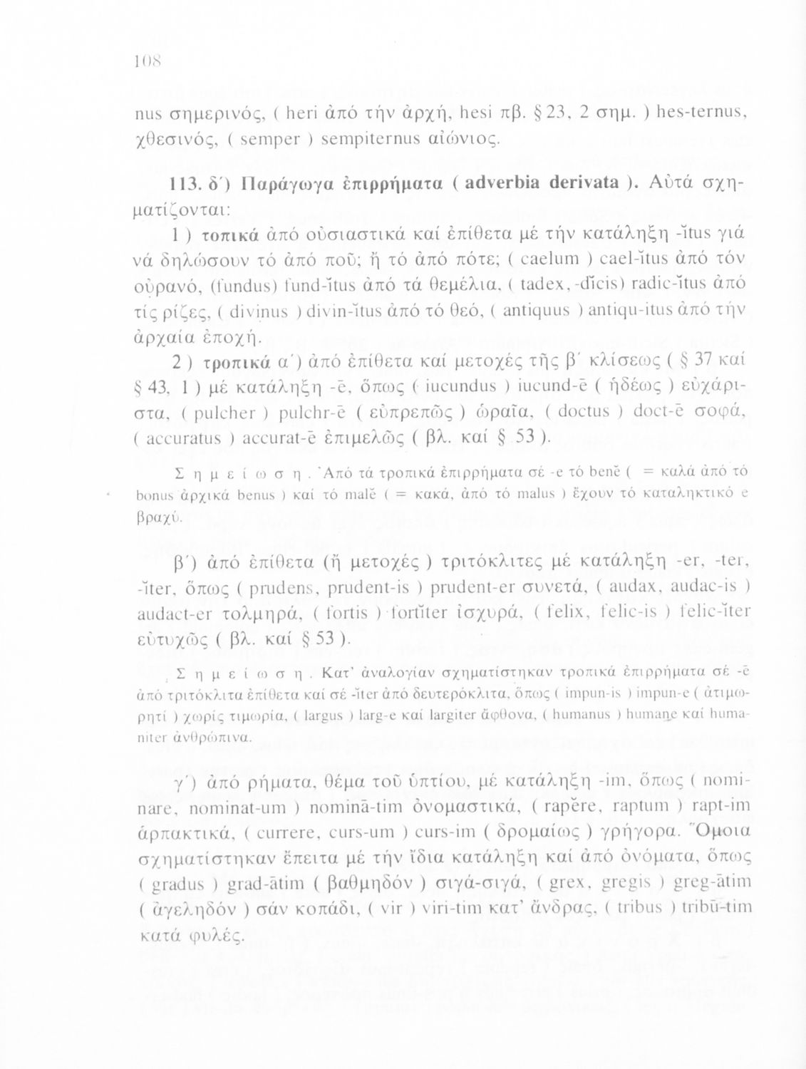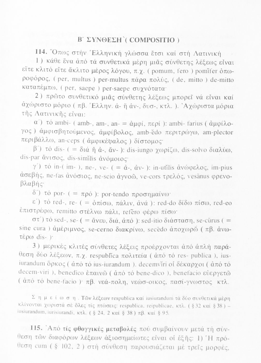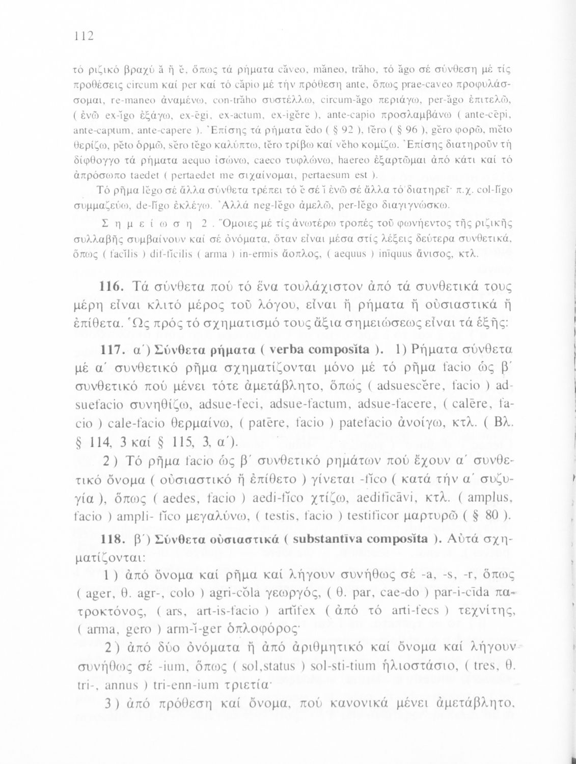 Σχολικό εγχειρίδιο Λατινικών Α΄, Β΄, Γ' Γυμνασίου που περιλαμβάνει γραμματική και συντακτικό και είναι χωρισμένο σε φθογγολογικό, τυπολογικό και ετυμολογικό μέρος.