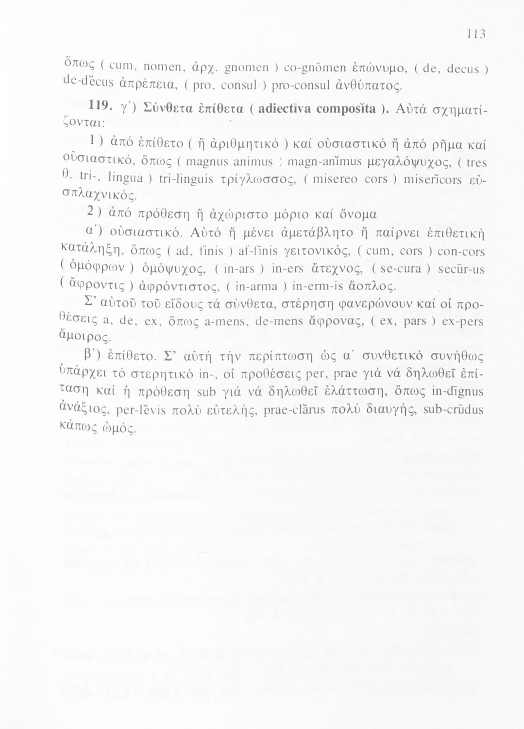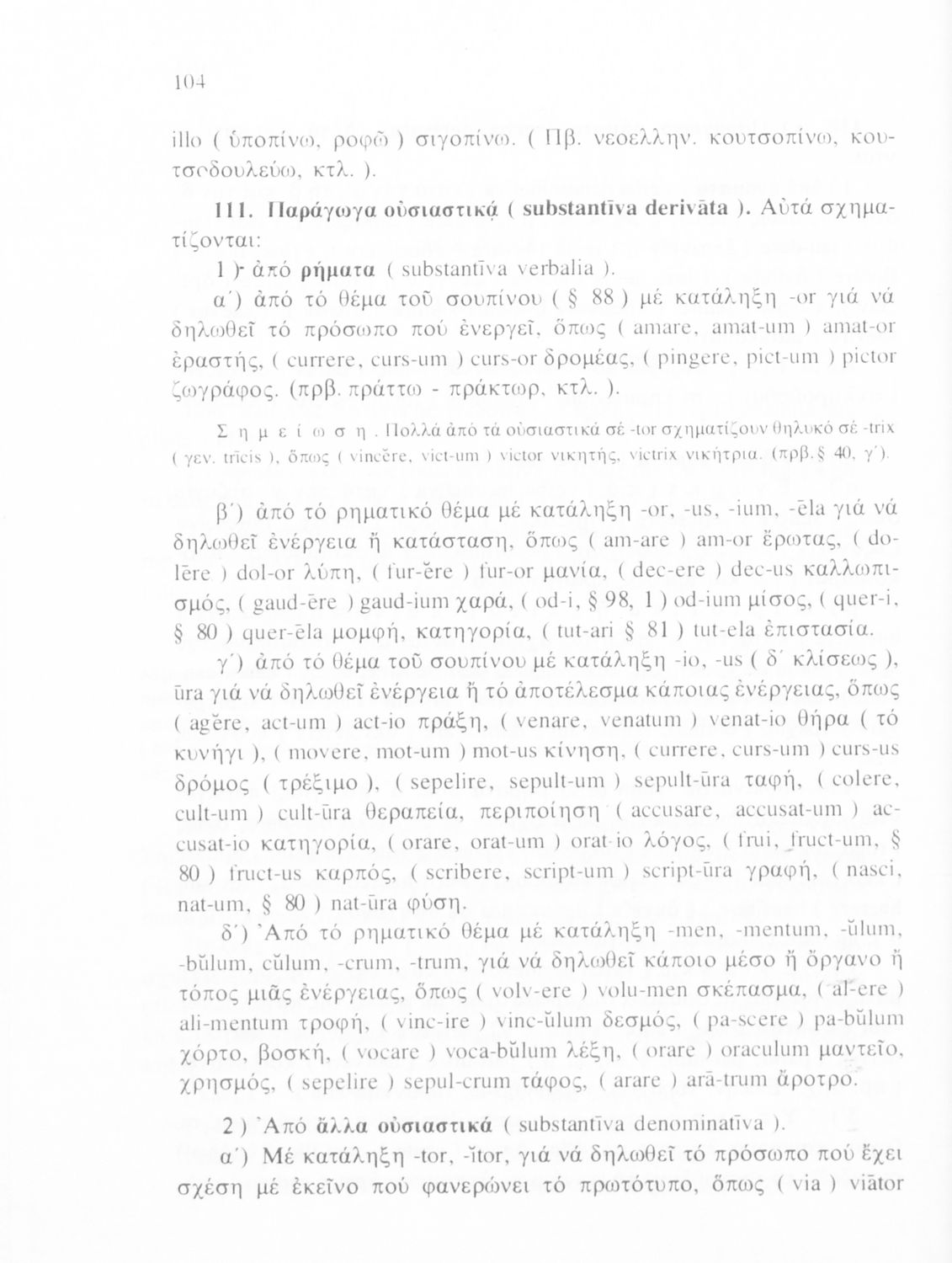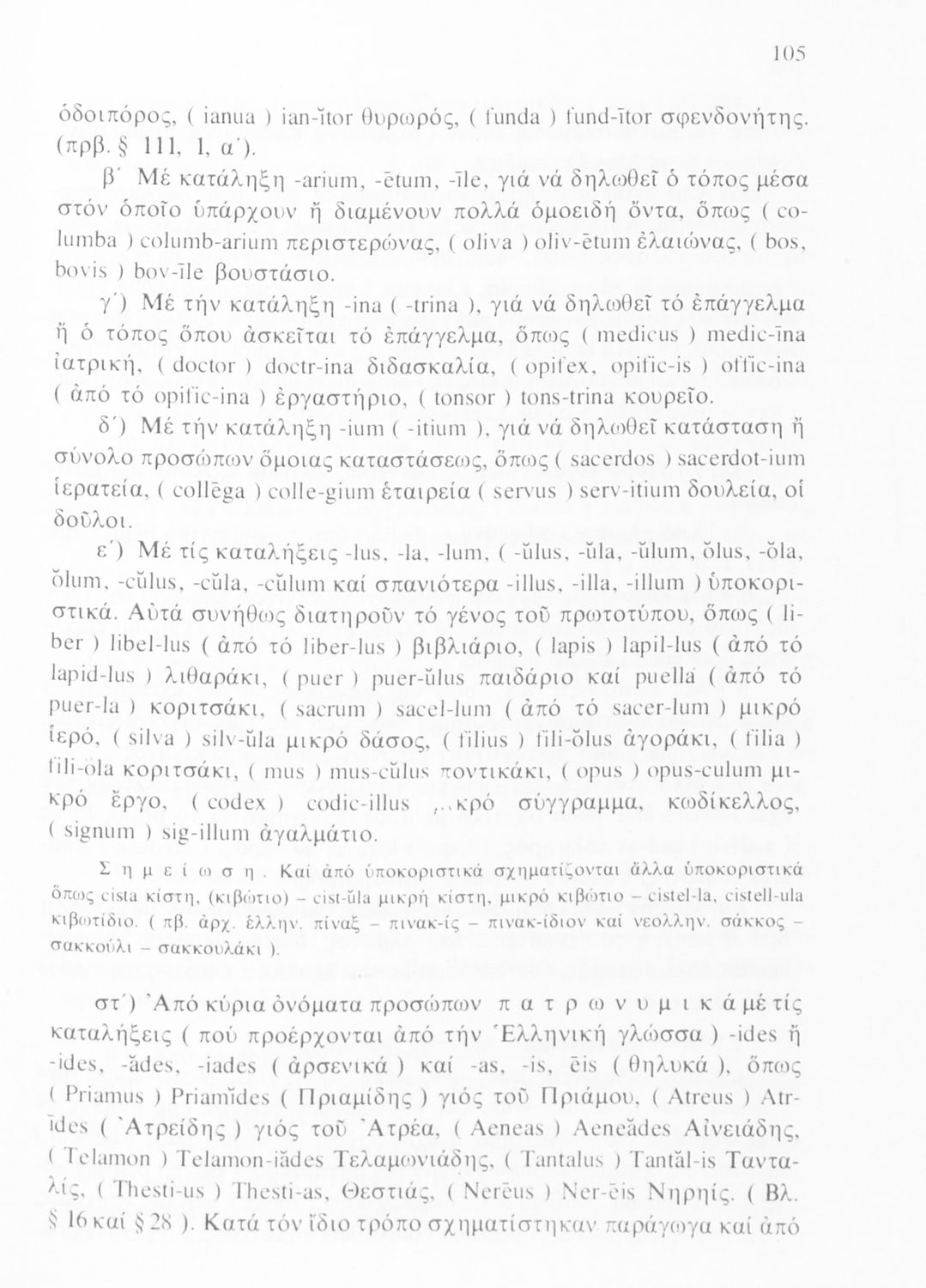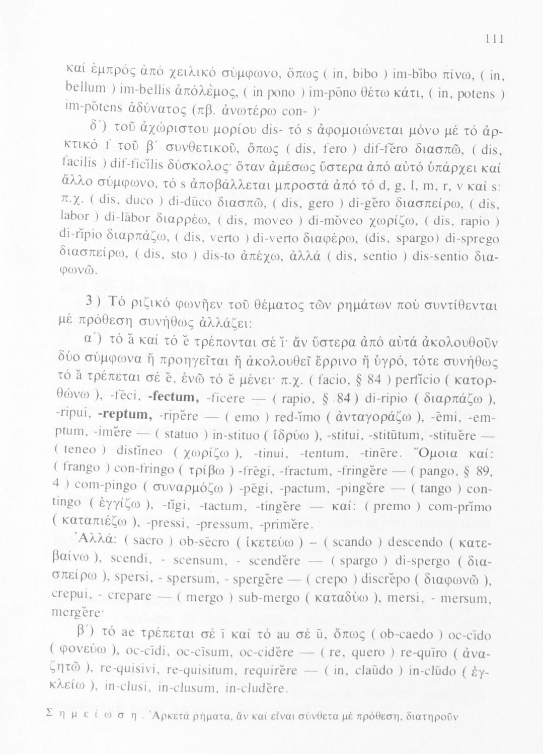 Σχολικό εγχειρίδιο Λατινικών Α΄, Β΄, Γ' Γυμνασίου που περιλαμβάνει γραμματική και συντακτικό και είναι χωρισμένο σε φθογγολογικό, τυπολογικό και ετυμολογικό μέρος.