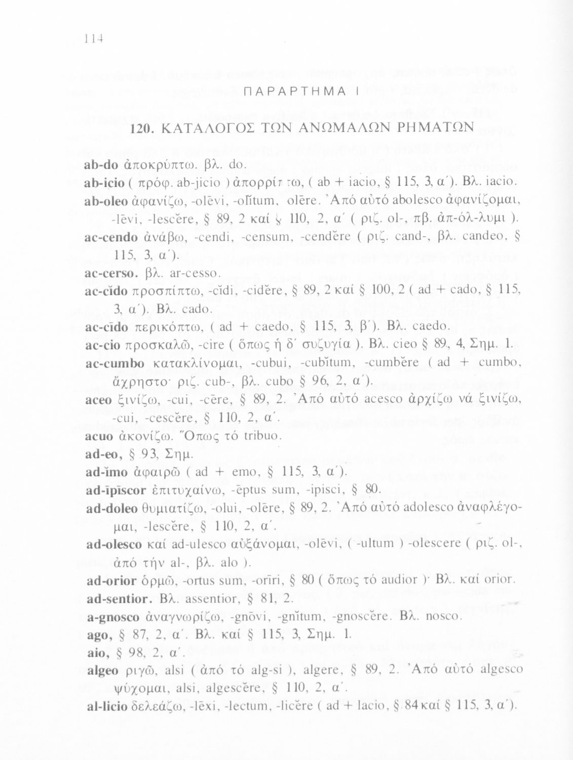 Σχολικό εγχειρίδιο Λατινικών Α΄, Β΄ και Γ΄ Λυκείου που περιλαμβάνει γραμματική και συντακτικό και είναι χωρισμένο σε φθογγολογικό, τυπολογικό και ετυμολογικό μέρος.