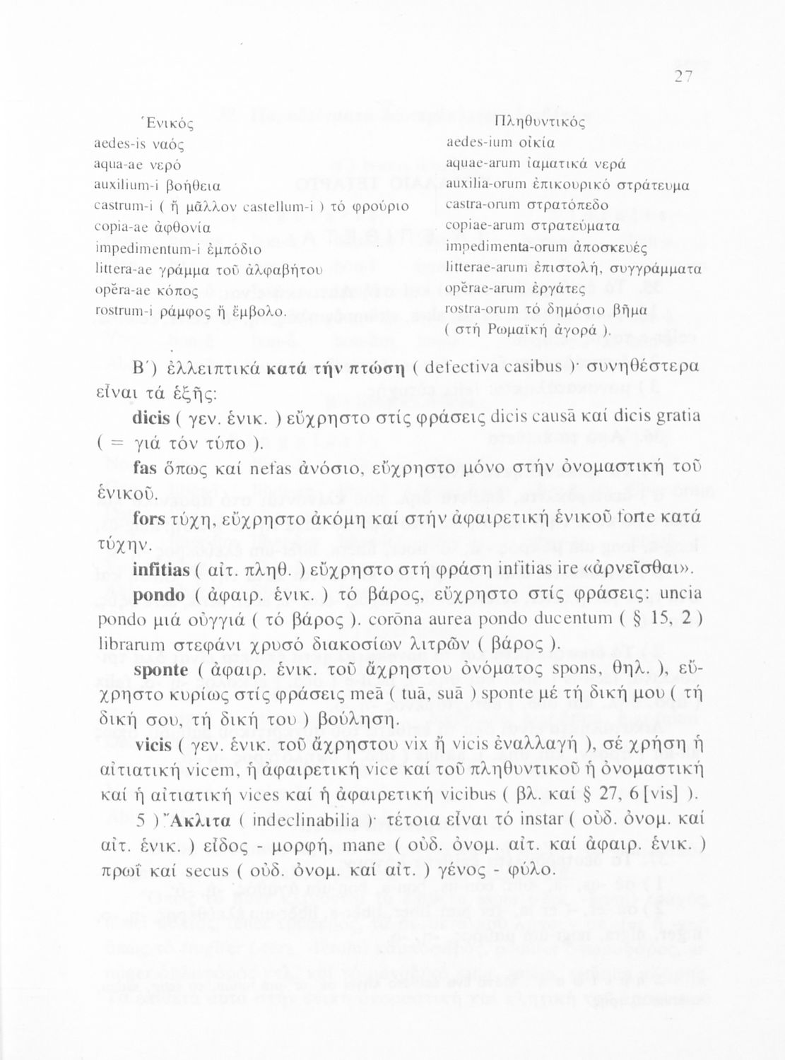 Σχολικό εγχειρίδιο Λατινικών Α΄, Β΄ και Γ΄ Λυκείου που περιλαμβάνει γραμματική και συντακτικό και είναι χωρισμένο σε φθογγολογικό, τυπολογικό και ετυμολογικό μέρος.