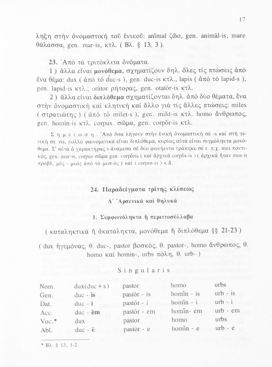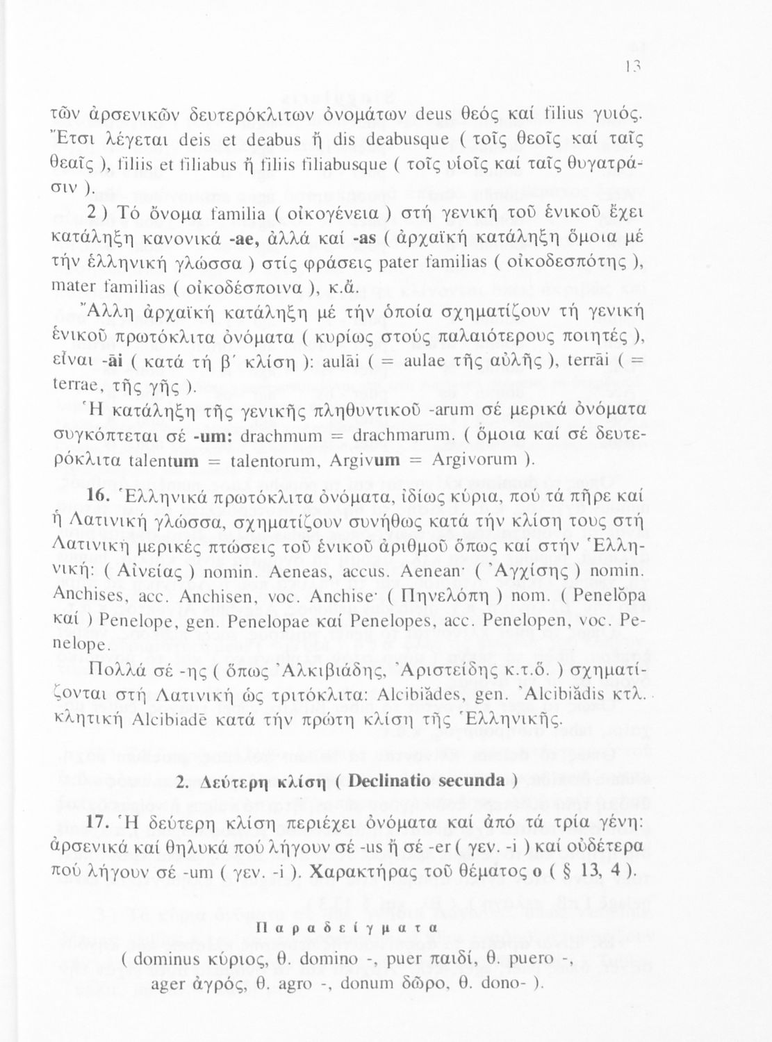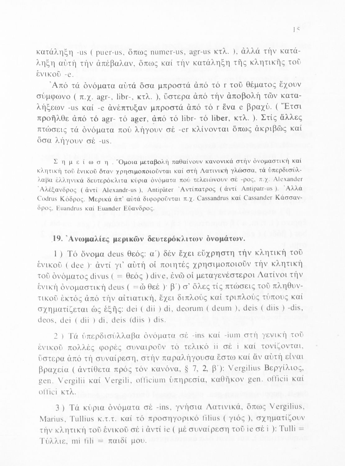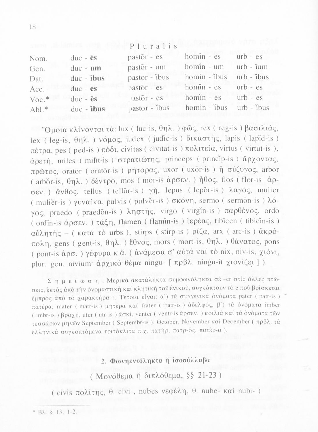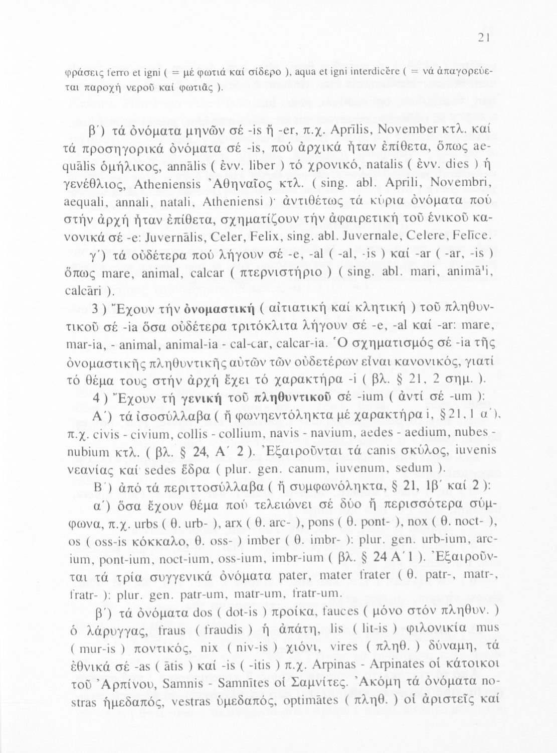 Σχολικό εγχειρίδιο Λατινικών Α΄, Β΄, Γ' Γυμνασίου που περιλαμβάνει γραμματική και συντακτικό και είναι χωρισμένο σε φθογγολογικό, τυπολογικό και ετυμολογικό μέρος.