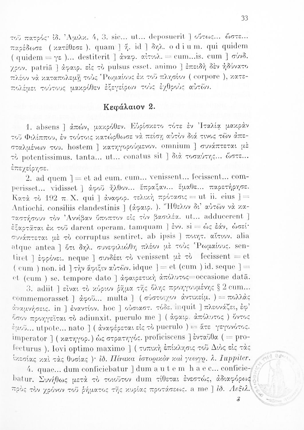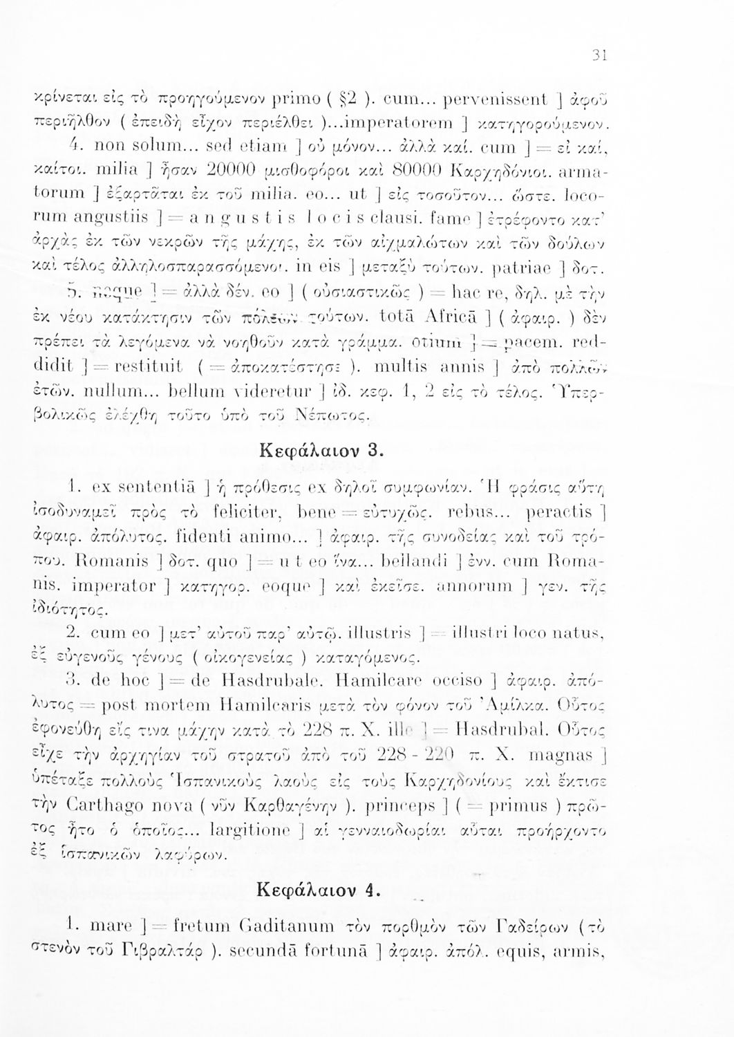 Βαθμίδα εκπαίδευσης: Δευτεροβάθμια Μάθημα: Αρχαία Ελληνικά Γλώσσα: Καθαρεύουσα Παρουσίαση περιεχομένου: Σχολικό εγχειρίδιο Λατινικών που περιέχει σύντομο βιογραφικό σημείωμα του Νέπωτα, αποσπάσματα από τα έργα Αμίλκας, Αννίβας, Κάτων και Αττικός, ιστορικό και γεωγραφικό πίνακα και λεξιλόγιο. Ο συγγραφέας ήταν καθηγητής της Λατινικής Φιλολογίας στο Πανεπιστήμιο Αθηνών. |