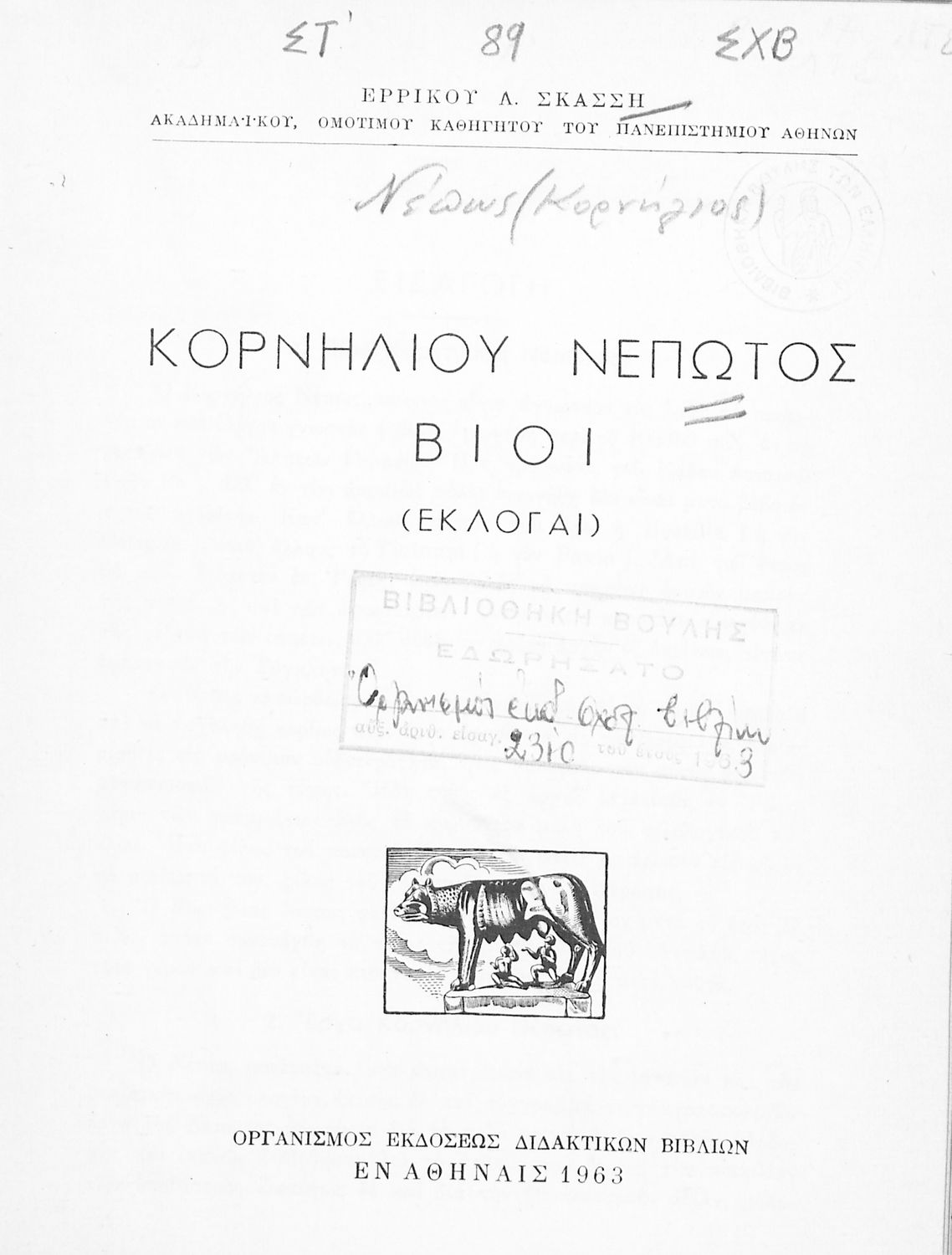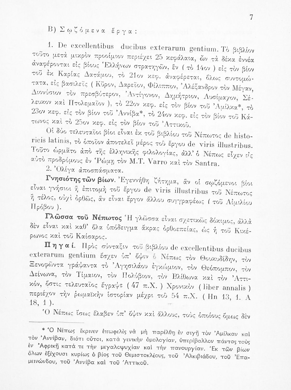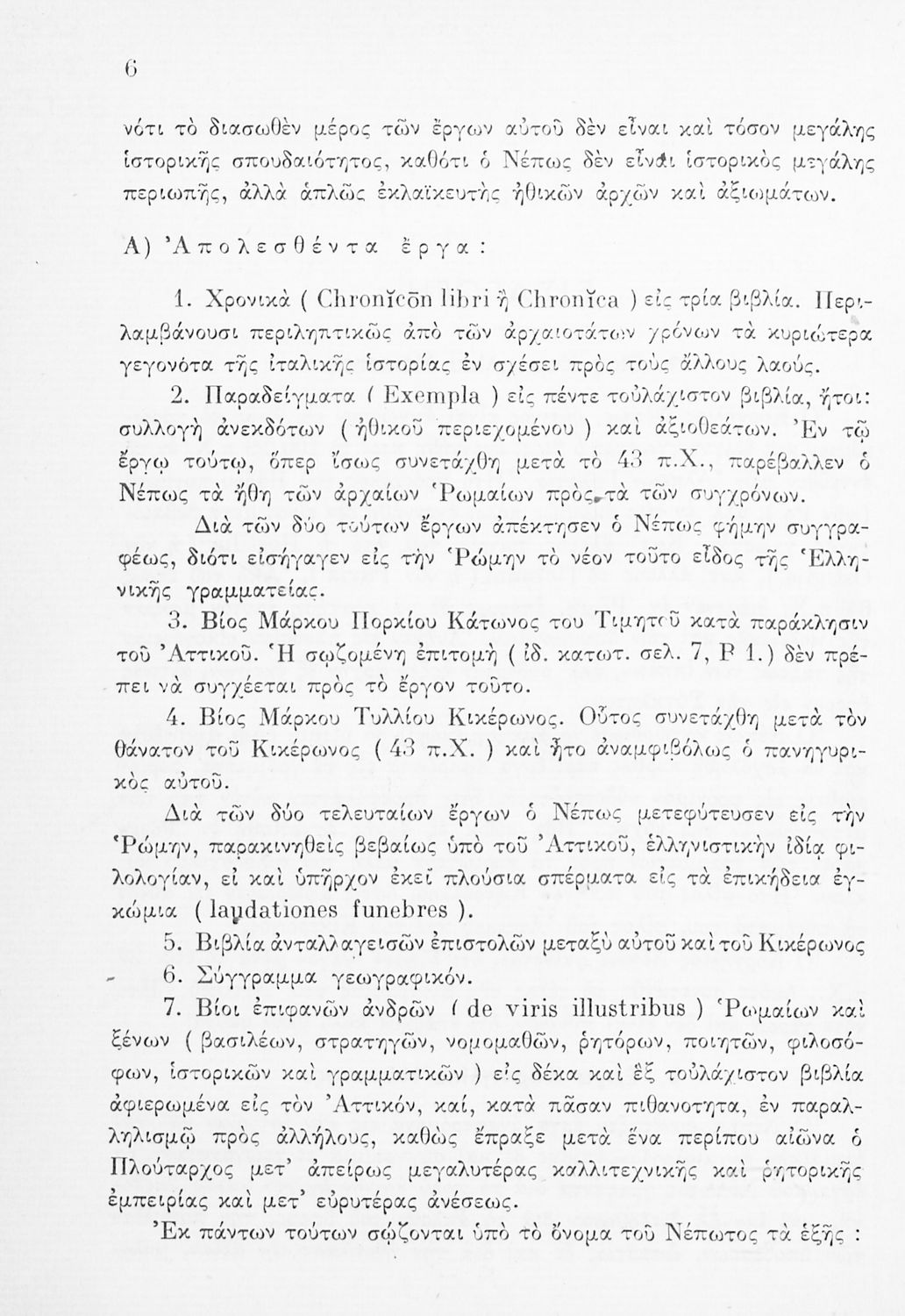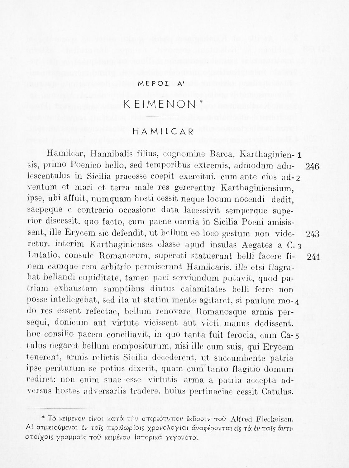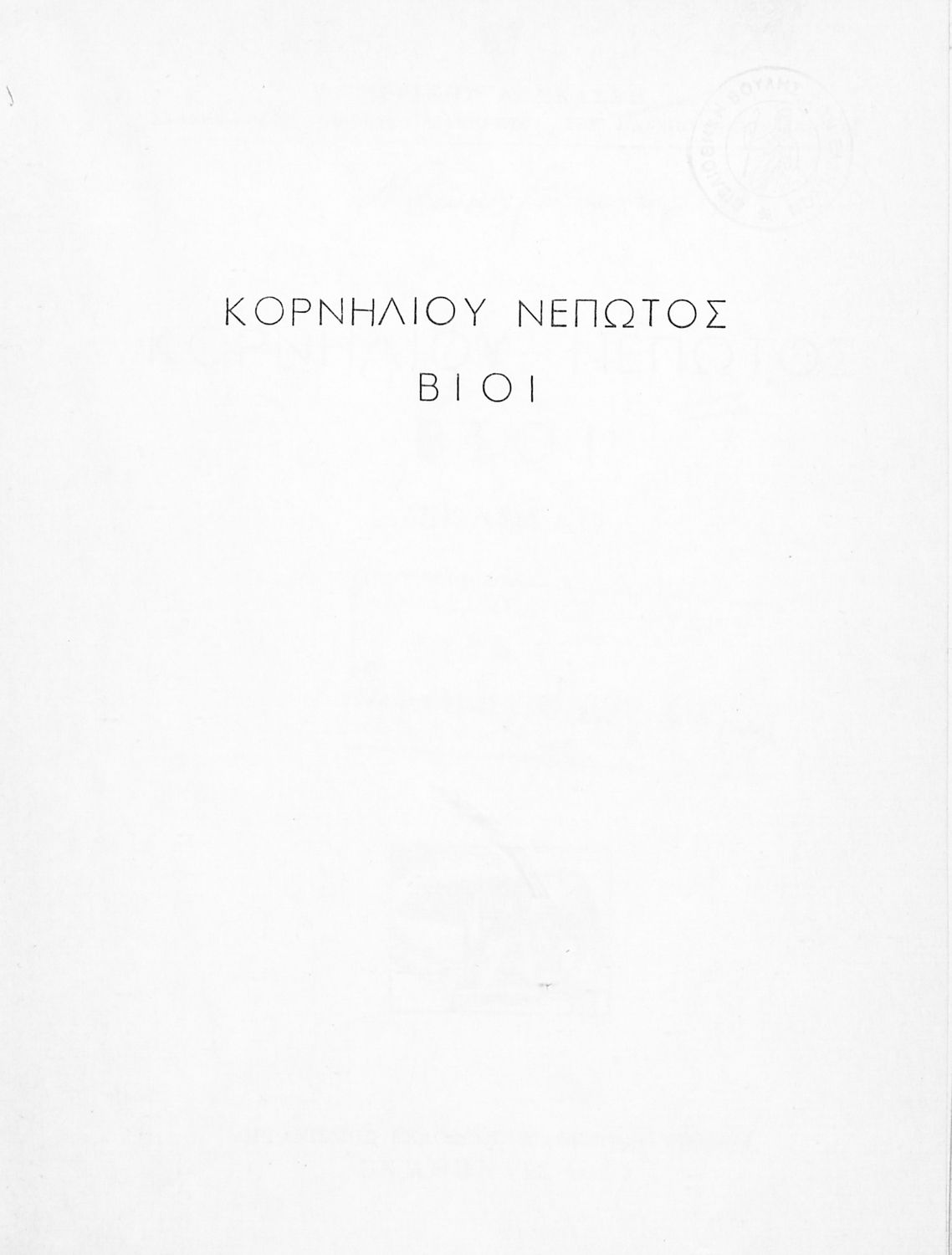 Σχολικό εγχειρίδιο Λατινικών Δ΄ Γυμνασίου που περιέχει σύντομο βιογραφικό σημείωμα του Νέπωτα, αποσπάσματα από τα έργα Αμίλκας, Αννίβας, Κάτων και Αττικός, ιστορικό και γεωγραφικό πίνακα και λεξιλόγιο. Ο συγγραφέας ήταν καθηγητής της Λατινικής Φιλολογίας στο Πανεπιστήμιο Αθηνών.